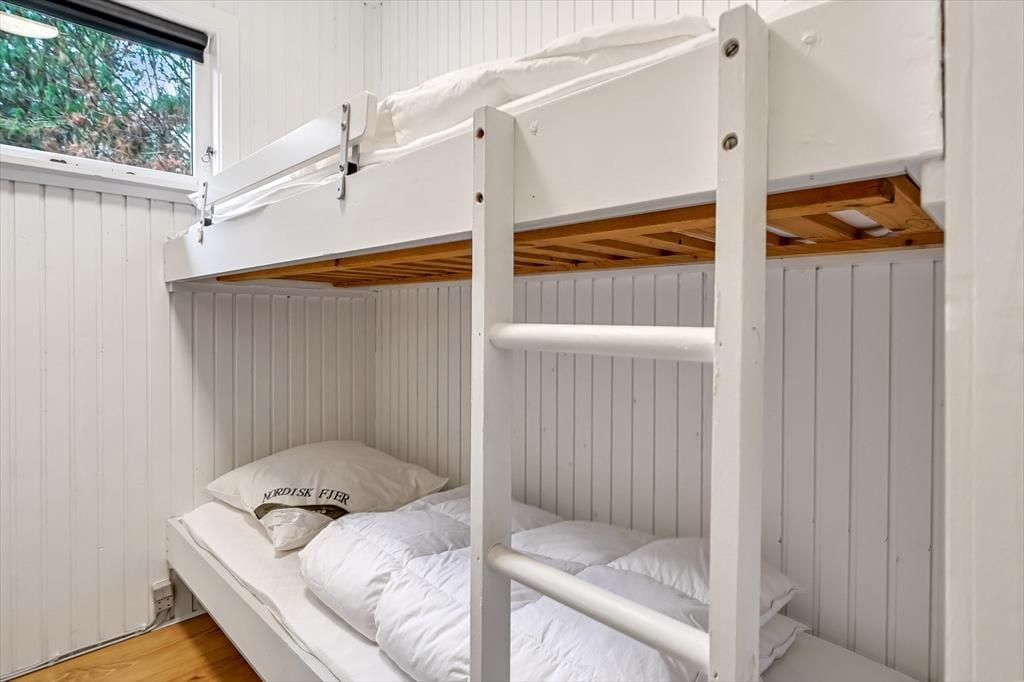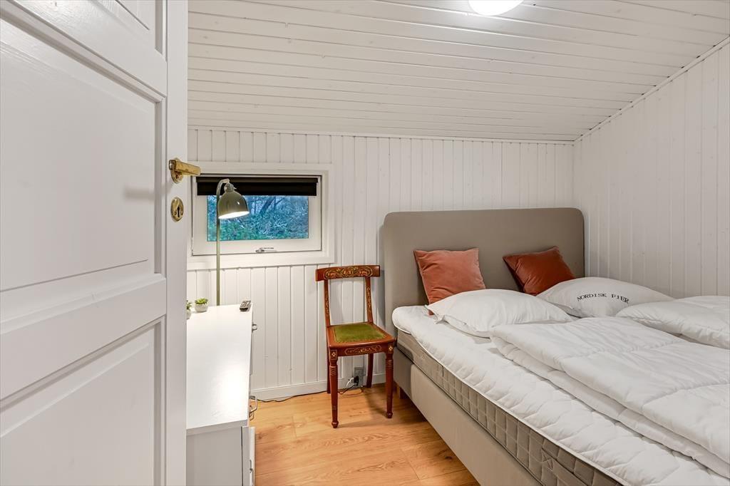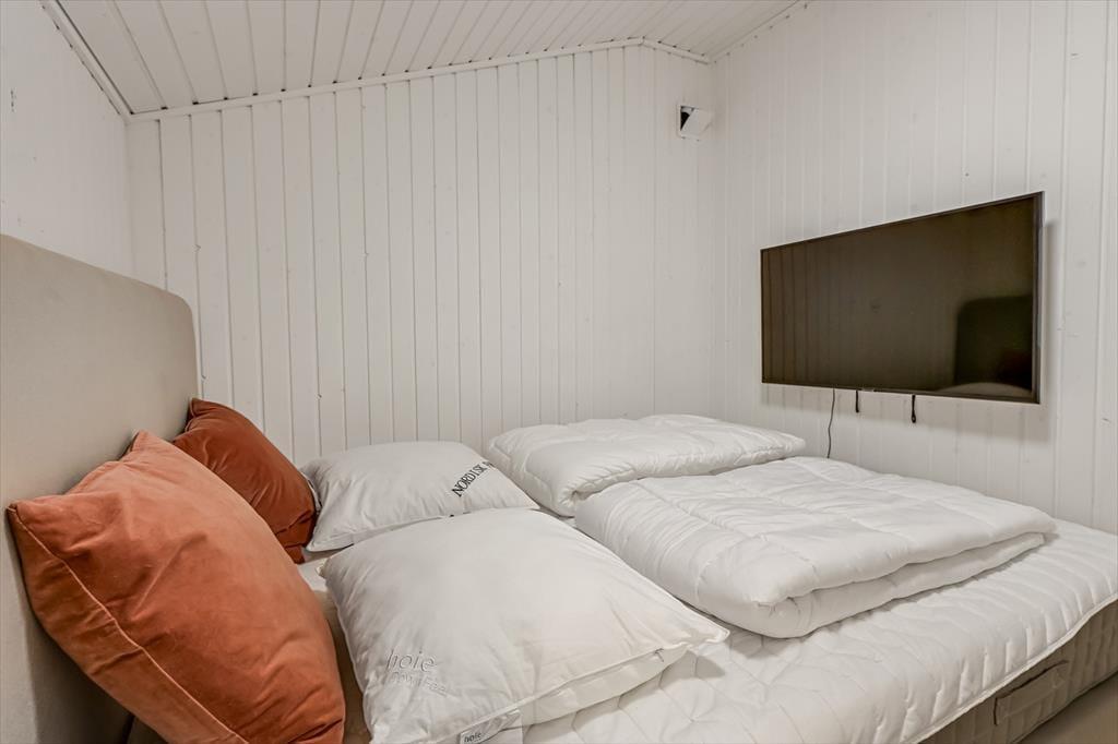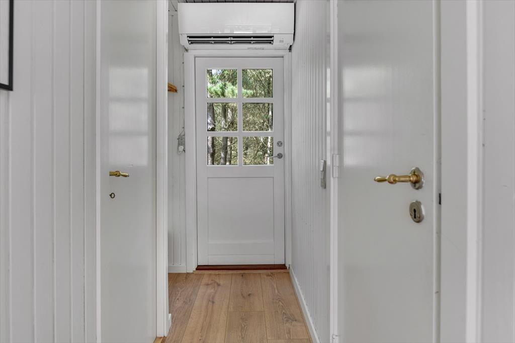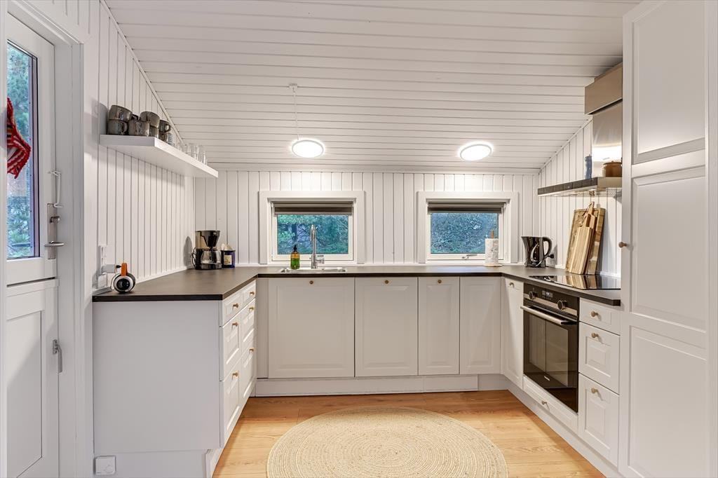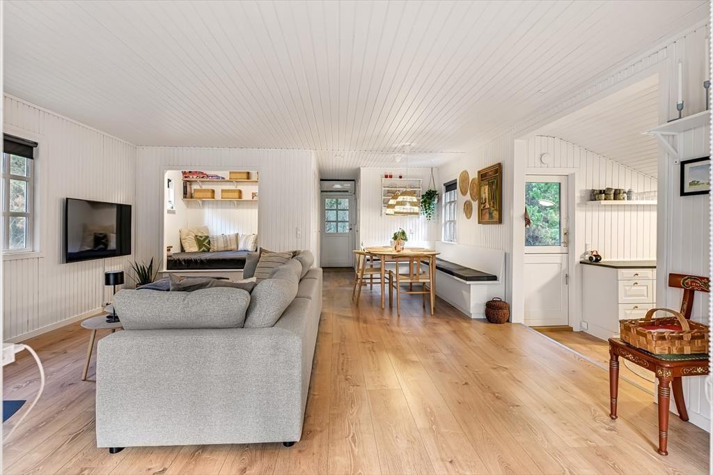 Wenn Sie dieses charmante Ferienhaus betreten, werden Sie sich sofort wie zu Hause fühlen. Der Aufenthaltsraum strahlt mit seinen hellen Holzwänden und dem warmen Glanz des Kamins Gemütlichkeit aus. Hier können Sie abends zusammensitzen, die Flammen Licht und Wärme verbreiten lassen und einen guten Film oder ein spannendes Buch genießen. Die Küche ist schön und gut ausgestattet, sodass es eine Freude ist, köstliche Mahlzeiten zuzubereiten, die Sie am geräumigen Esstisch genießen können. Das Ferienhaus bietet Platz für die kleine Familie mit vier Personen. Es gibt drei Schlafzimmer und ein helles Badezimmer. Auch für den Hund der Familie ist Platz, sodass niemand zu Hause bleiben muss.