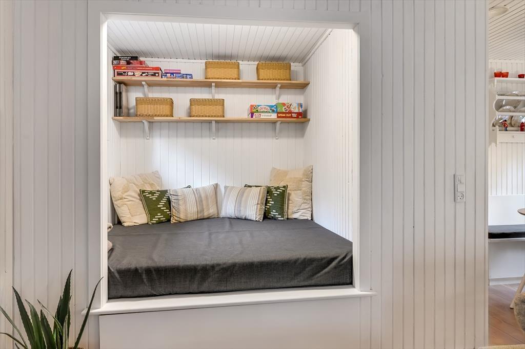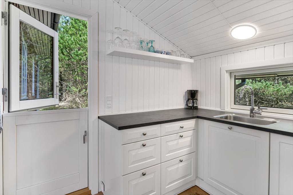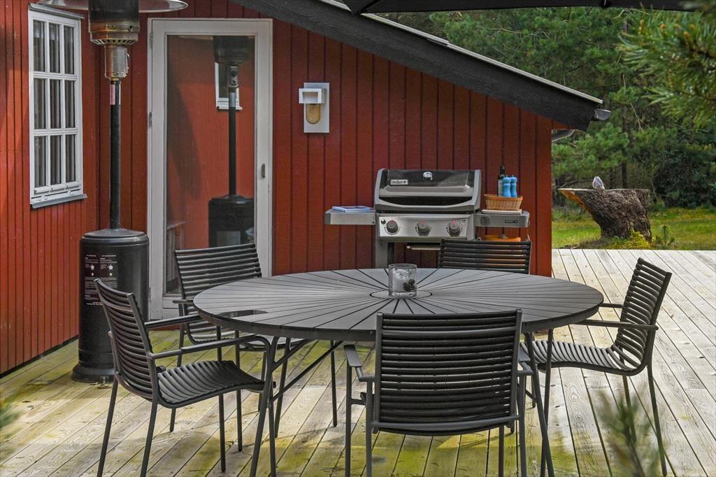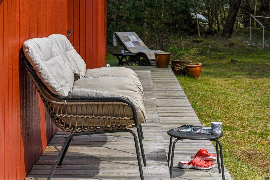 Ein großer Vorteil des Ferienhauses in der Hedevej 8 ist die uneinsehbare Terrasse, auf der Sie in völliger Ruhe entspannen können. Die Terrasse ist von grünen Bäumen und Büschen umgeben, was eine private Oase schafft, in der Sie Ihren Morgenkaffee genießen, das Abendessen grillen oder einfach in einem Liegestuhl entspannen können. Der Garten ist ideal zum Spielen und Herumtollen mit den Kindern, und der Hund wird es lieben, das Gebiet zu erkunden. Es gibt auch einen überdachten Terrassenbereich, wo Sie vor dem Tau geschützt sitzen und die langen, hellen Sommerabende genießen können.