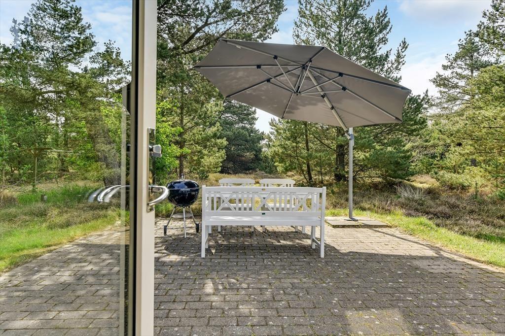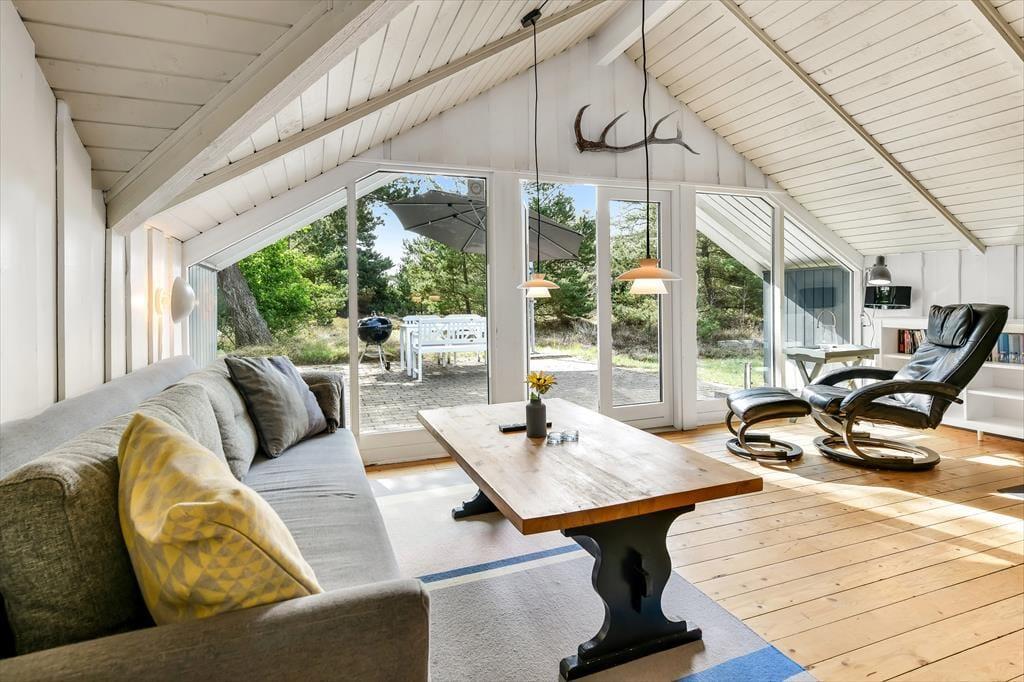 Das Beste an diesem Ferienhaus ist fast all das, was dich draußen erwartet. Die Terrasse führt direkt hinaus auf ein großes, privates Naturgrundstück, wo du den Wind im Haar spürst und dem morgendlichen Vogelgesang ganz ungestört lauschen kannst. Hier findest du leicht zur Ruhe – im Liegestuhl, mit dem Morgenkaffee in der Sonne oder beim gemeinsamen Grillabend in der Dämmerung. Für Kinder gibt es viel Platz zum Spielen, während die Erwachsenen das Geschehen von der sonnigen Terrasse aus entspannt verfolgen können. Das Grundstück ist von hohen Bäumen und wilden Büschen umgeben, die einen natürlichen Sichtschutz bieten und das Gefühl vermitteln, ganz für sich allein in der Natur zu sein – wie eine kleine grüne Oase nur für euch.