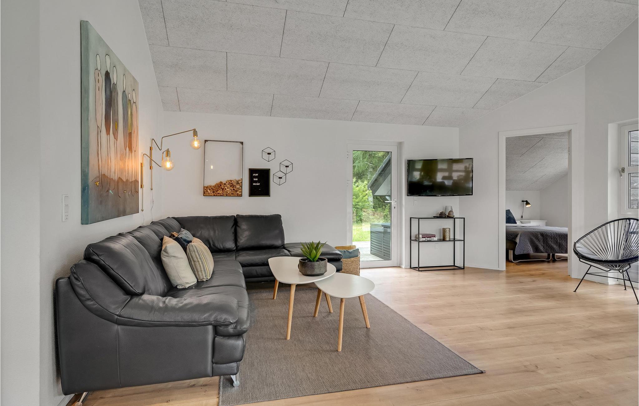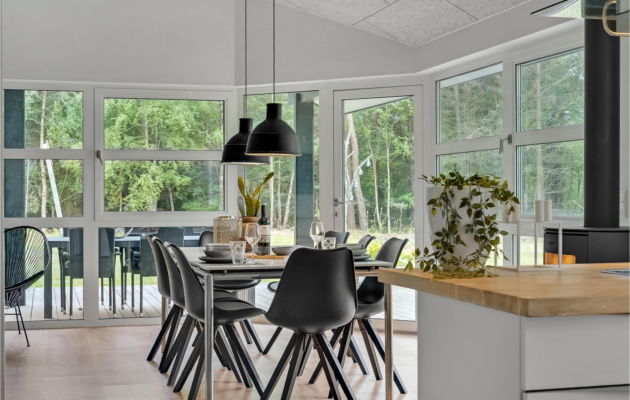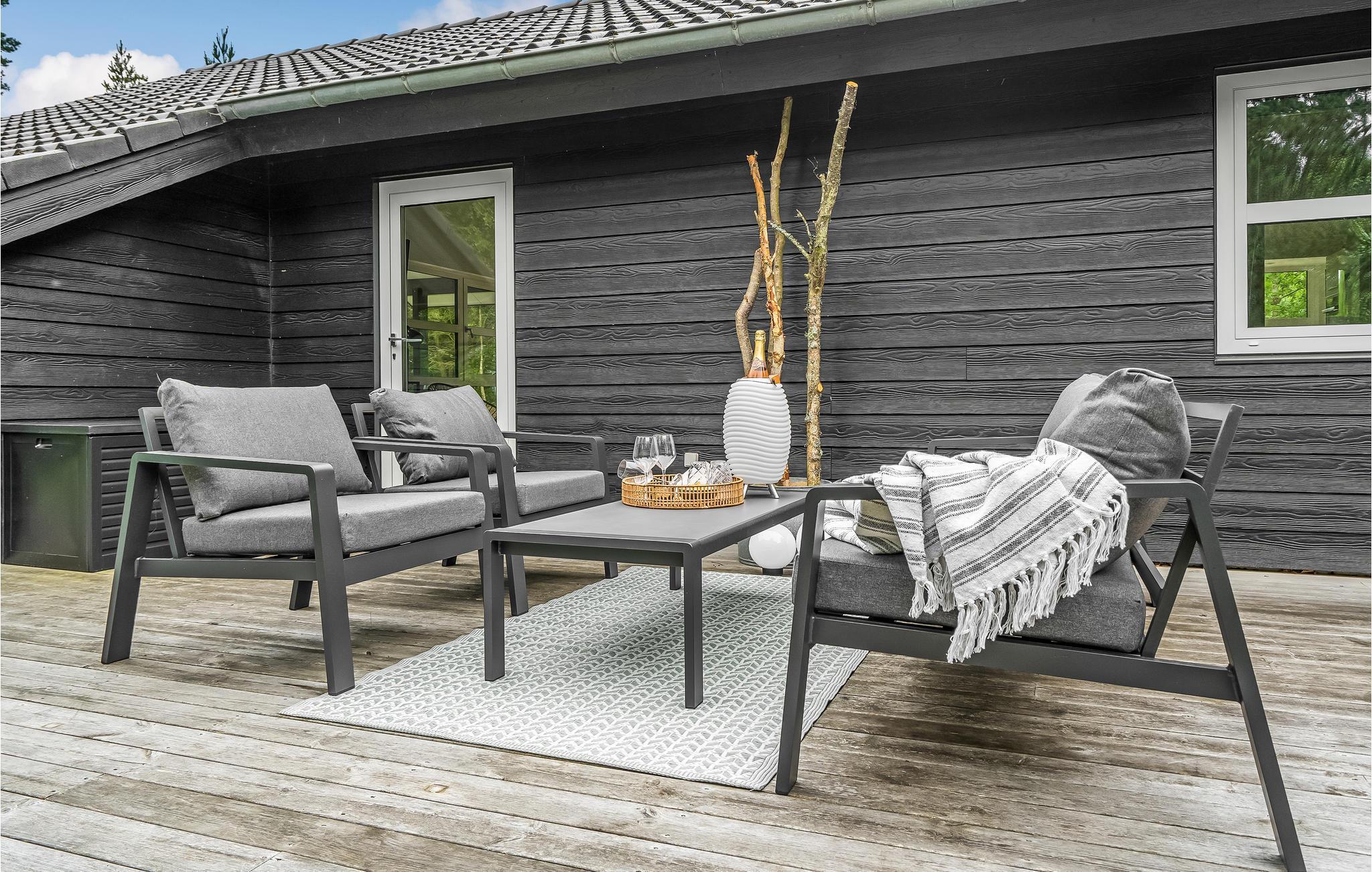 Modernes und interessantes Ferienhaus im gemütlichen Urlaubsgebiet Ho. Das Haus ist praktisch eingerichtet, und es wird durch die großen Fensterpartien von Licht durchströmt, die auch eine schöne Aussicht auf die Natur bieten. Um das Haus liegen herrlich große Terrassen. Hier können Sie sich entspannen und die Mahlzeiten des Tages an der frischen Luft genießen. In Ho gibt es viele abwechslungsreiche Freizeitmöglichkeiten, und zu Fuß erreichen Sie einen Angelsee, es gibt Pferdevermietung, Golfplätze, Bowling und vieles mehr. Die wunderbare Natur lädt zu langen Radtouren an Radwegen ein, die von den befahrenen Straßen abgetrennt liegen, und verbringen Sie ganze Tage in den Hügeln und Tälern oder den Dünenplantagen mit knorrigen Kiefern. Nach einem Sturm können Sie am Strand nach angespülten Schätzen suchen, und vielleicht finden Sie sogar Bernstein.