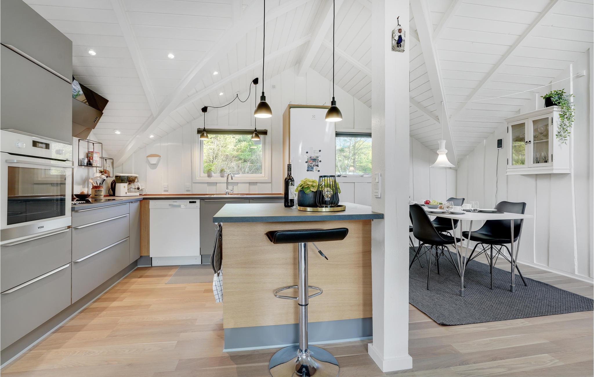 Ein wirklich gemütliches, wunderschön renoviertes Ferienhaus, das hell und modern aussieht. Die offene Küche mit Esszimmer und Holzofen lädt zu vielen angenehmen Momenten ein. Es gibt 3 schöne Schlafzimmer und ein Badezimmer mit Waschmaschine. Wenn Sie es lieben, draußen in der wunderschönen Landschaft zu sein, sind Sie hier genau richtig: Auf den großen Terrassen gibt es bequeme Gartenmöbel und Sonnenliegen für Entspannung und gemütliches Beisammensein. Machen Sie den Grill an und bereiten Sie köstliche Mahlzeiten zum Mittag- und Abendessen an der frischen Luft zu.