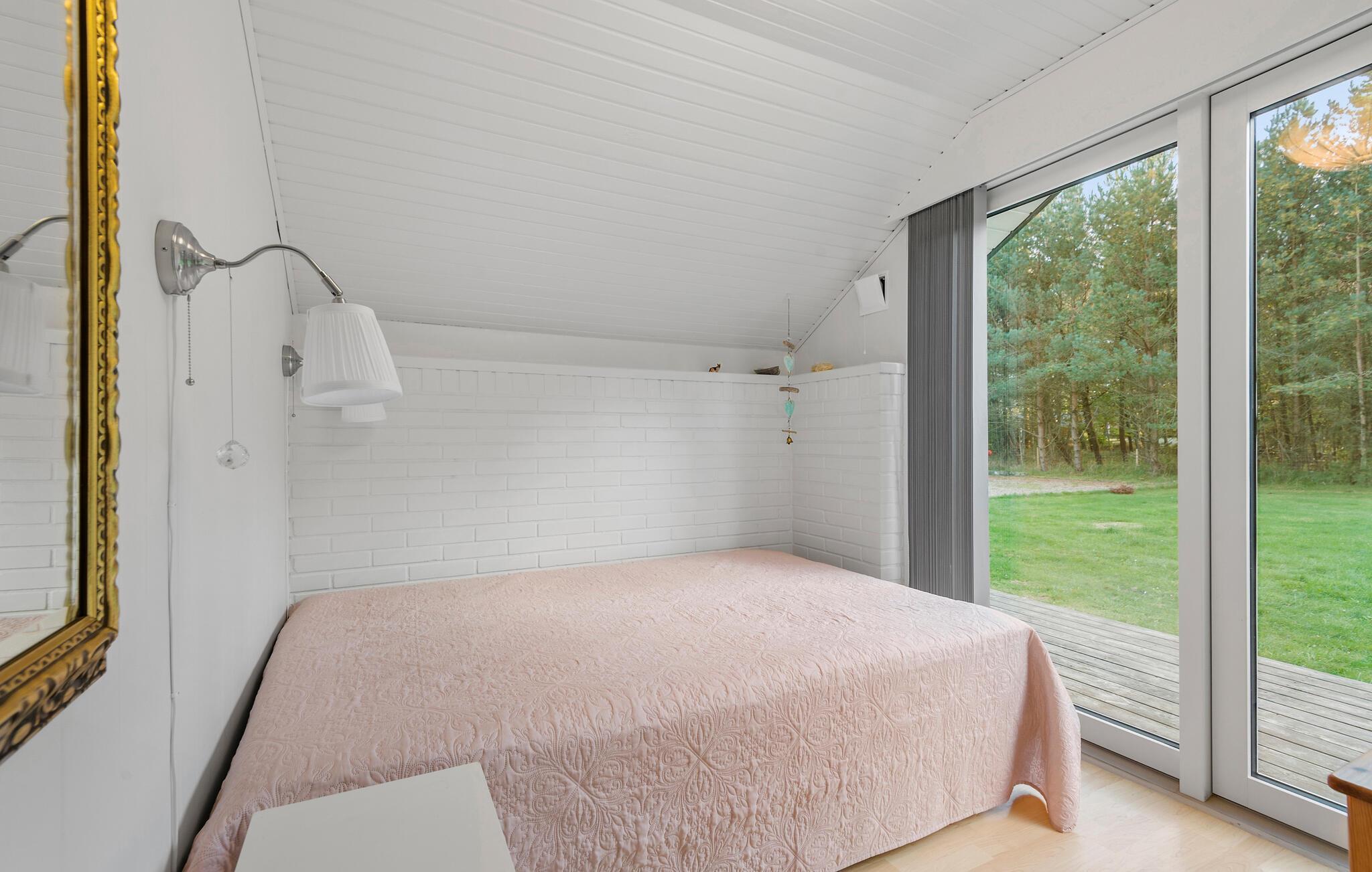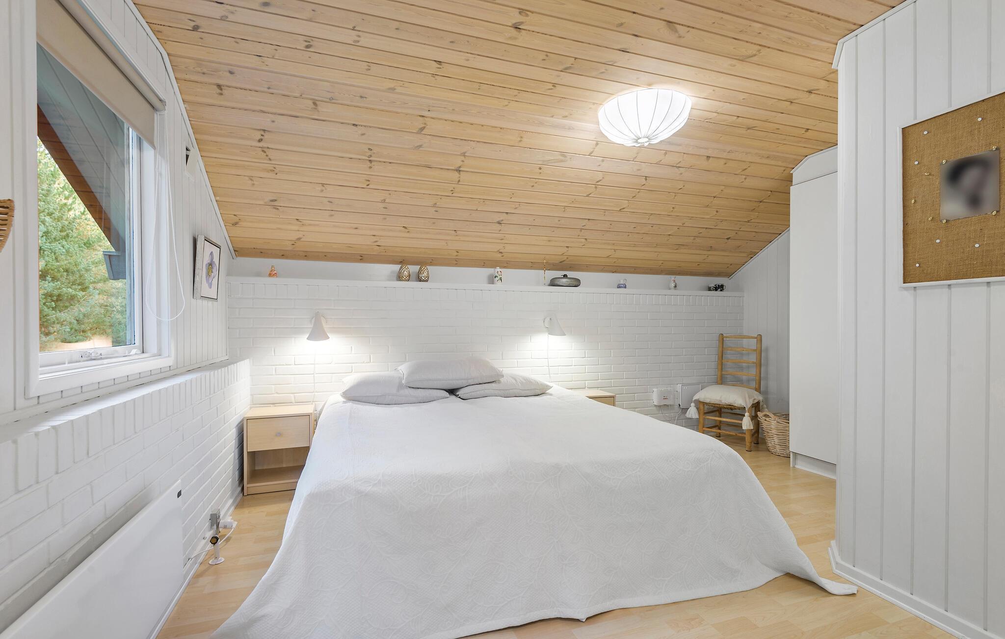Gepflegtes, helles und gemütliches Ferienhaus auf einem großen Grundstück mit schönem Rasen, von Sträuchern und Bäumen umgeben. Besonders hervorzuheben ist das sehr große Schlafzimmer. Es wird durch einen Vorhang zwischen den beiden Doppelbetten unterteilt, von hier haben Sie direkten Zugang auf die Terrasse. Im ganzen Haus gibt es Holz- und Klinkerfußböden.