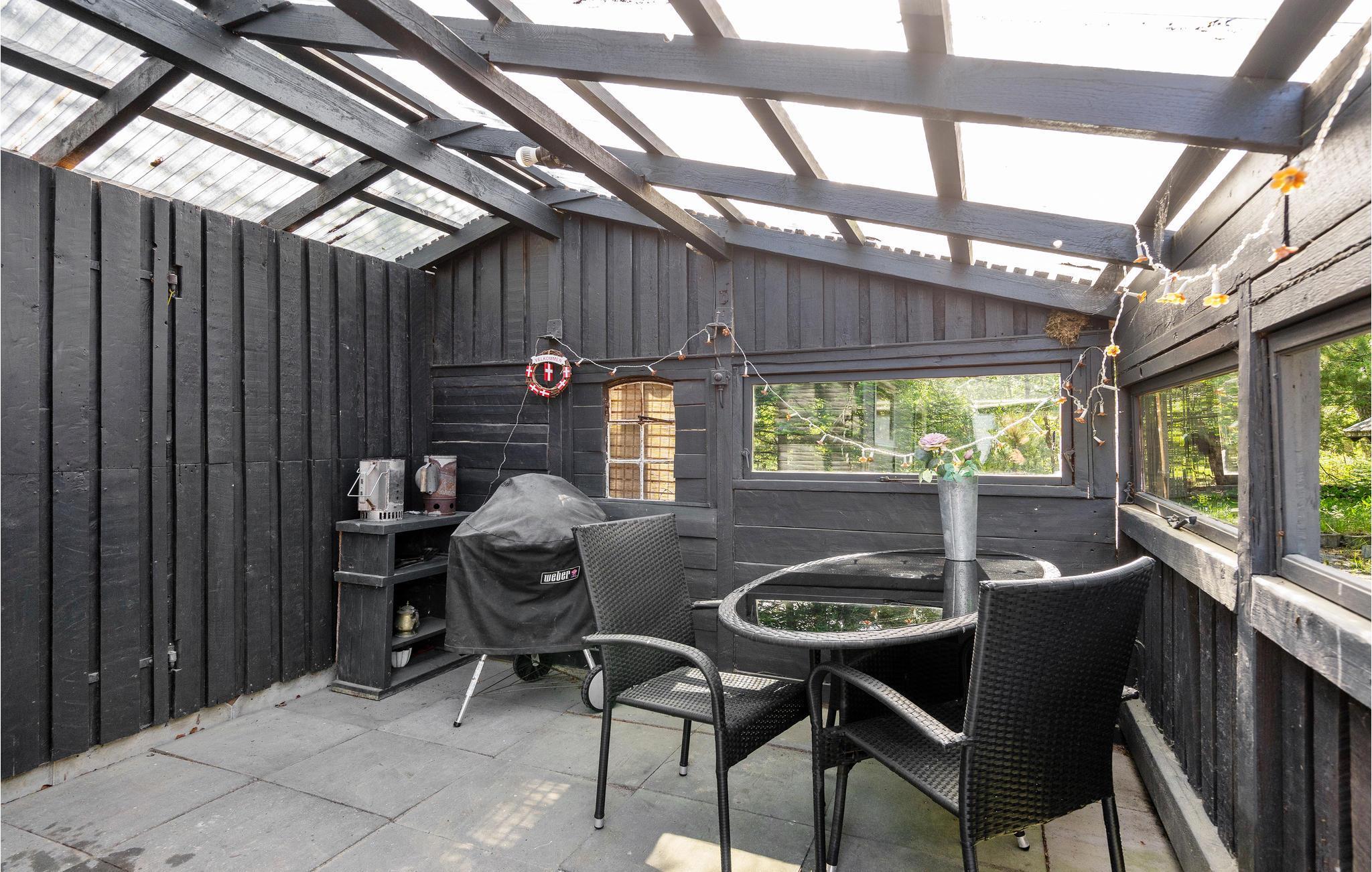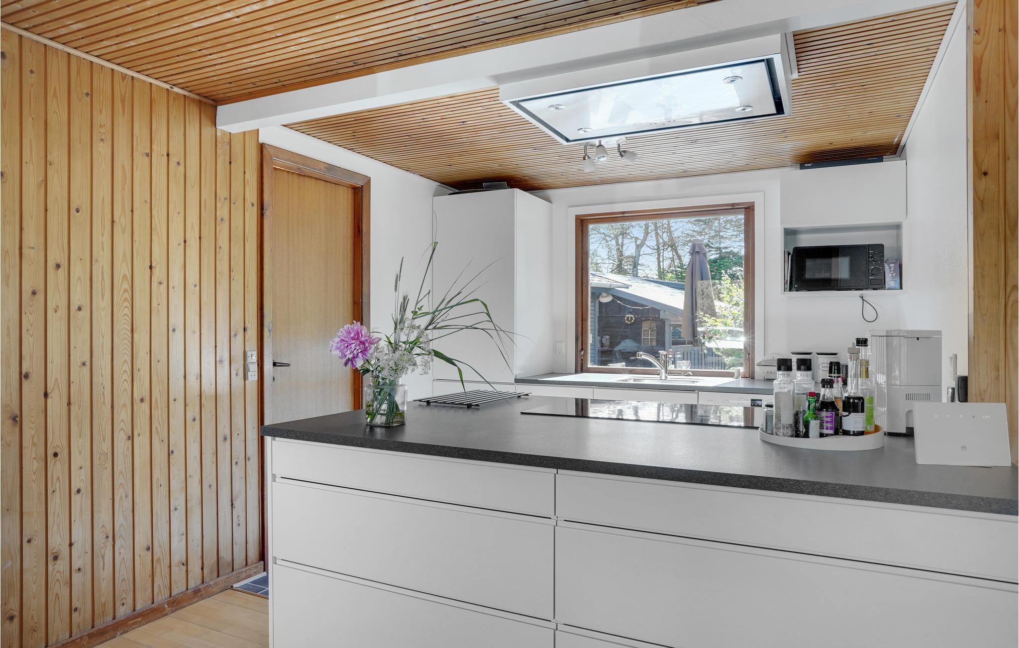 Dieses gemütliche Holzhaus liegt im schönen Ho auf einem idyllischem Naturgrundstück, wo Sie die schöne Umgebung aus nächster Nähe genießen können. Treten Sie in das Haus und entdecken die moderne Küche, die zu Kochabenden einlädt und verbunden ist mit dem Wohnzimmer und der schönen, schönen sonnigen Terrassen vor und hinter dem Haus. Verbringen Sie im Wohnzimmer gesellige Abende, lauschen dem Prasseln im Kaminofen und genießen die Wärme und gemütliche Stimmung. Es gibt auch ein großes Nebengebäude mit guter Ausstattung, dass sich ideal für ältere Kinder eignet. Im Nebengebäude gibt es auch einen Spieltisch mit verschiedenen Spielen, um die Sie sich versammeln und gegenseitig herausfordern können.