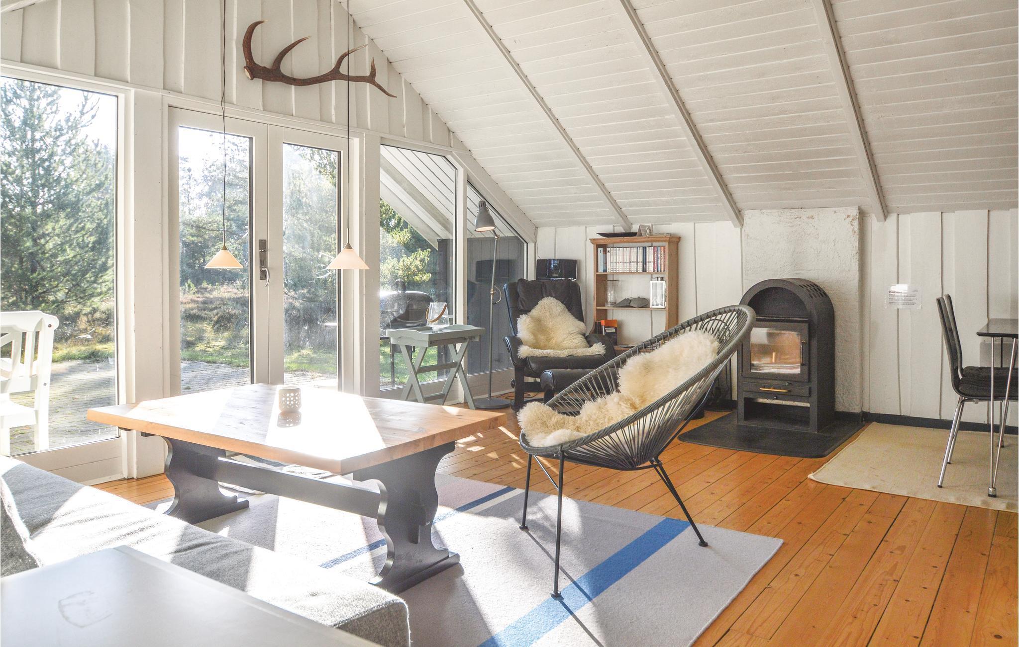 Traditionelles Ferienhaus mit heller Einrichtung und schönem Lichteinfall durch die großen Fenster.