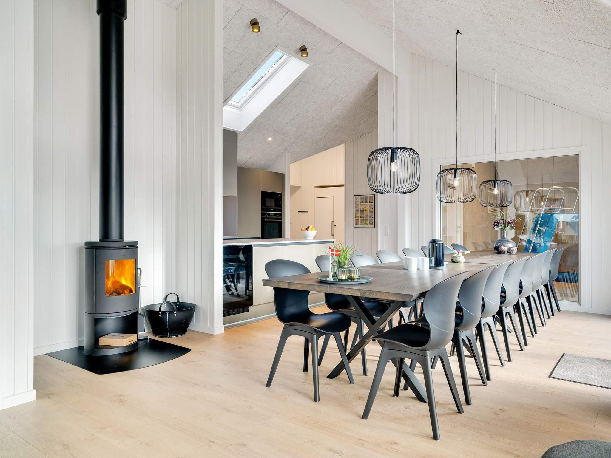 In der Mitte des Hauses finden Sie u.a. die gut ausgestattete Wohnküche mit viel Platz für das gemeinsame Kochen – und auch einen Weinkühlschrank für Ihre mitgebrachten Flaschen und auch einen Weinkühlschrank für Ihre mitgebrachten Flaschen. Zum Abendessen kann die ganze Familie am langen Esstisch vor der Küche Platz nehmen, von dem aus man einen direkten Blick in den Billardraum hat. An kühlen Tagen können Sie den Holzofen im Wohnzimmer anheizen und es sich mit einem Brettspiel oder einem guten Buch in der Sofaecke gemütlich machen.