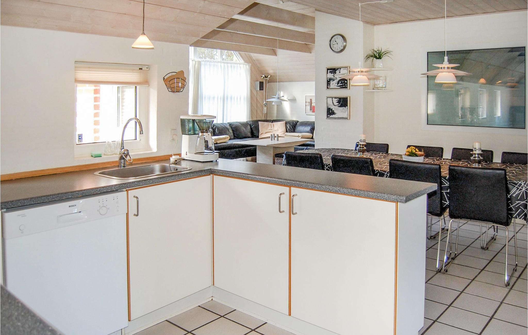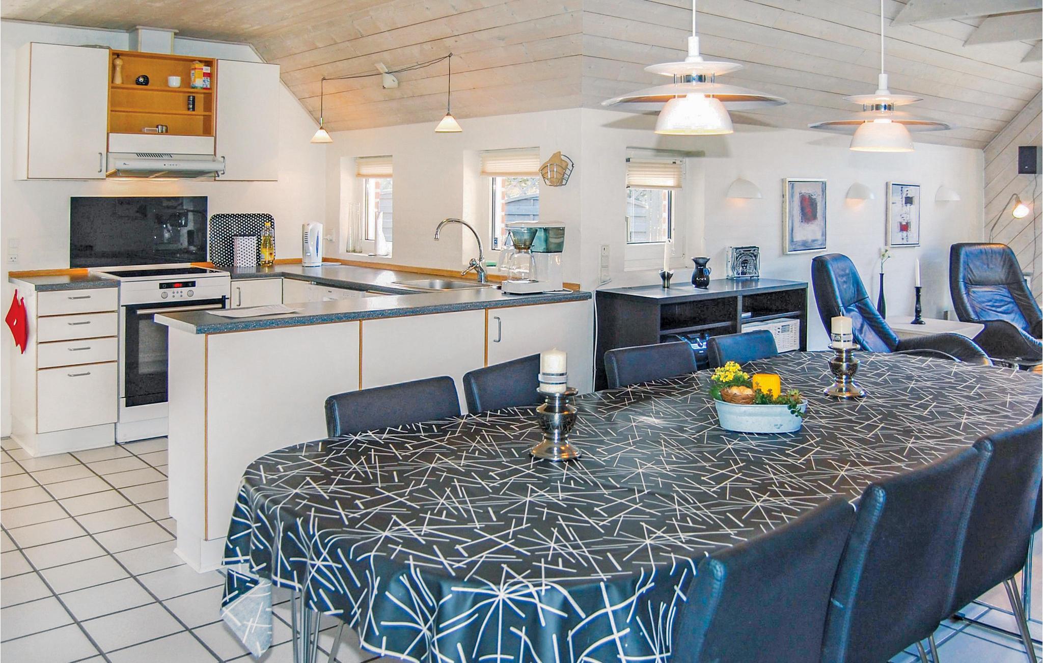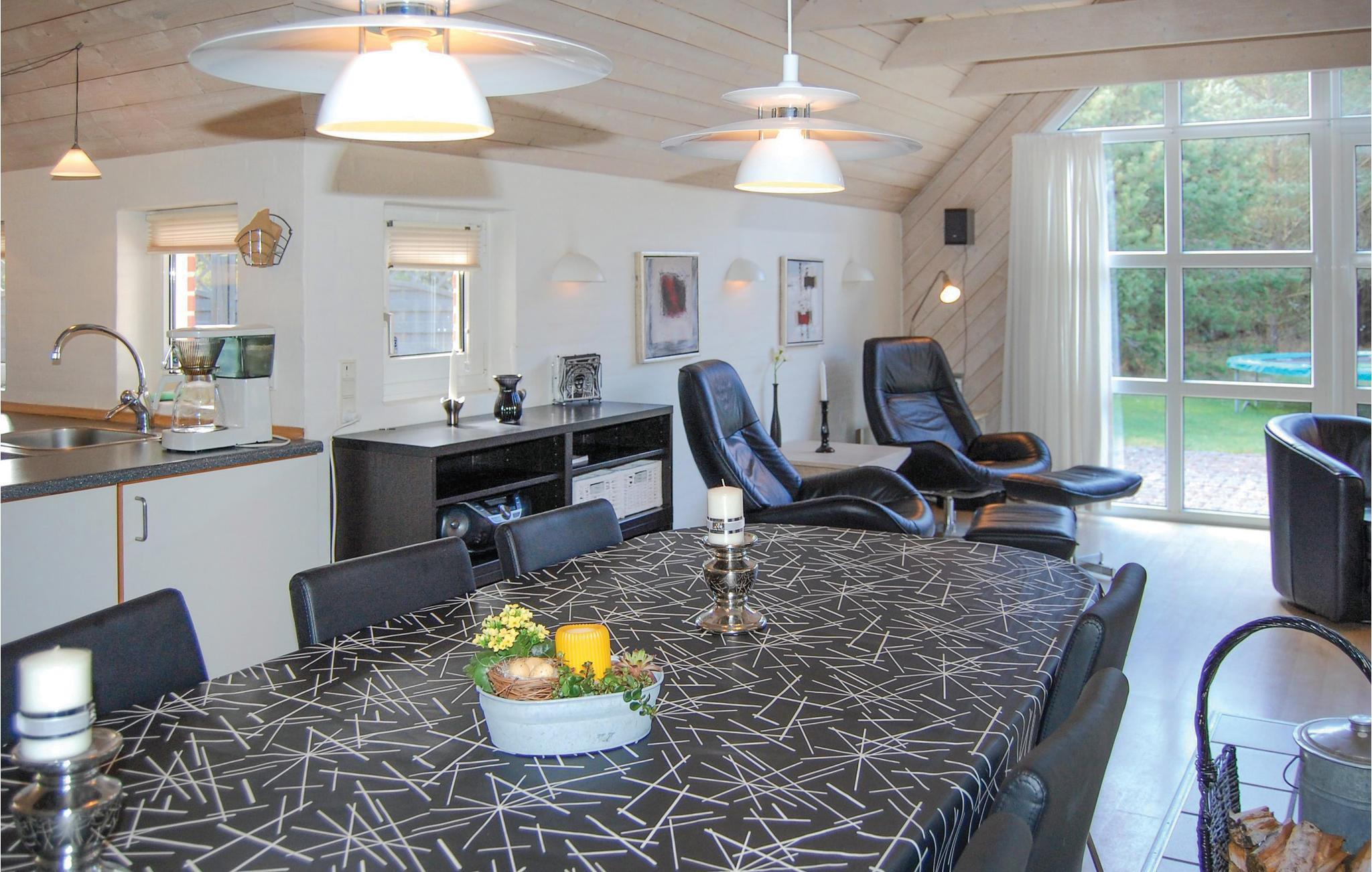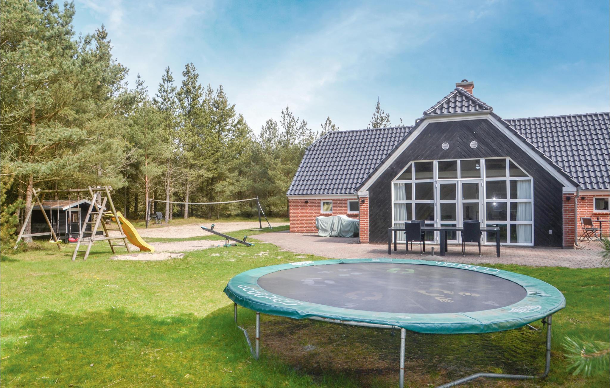 Auf einem der besten Naturgrundstücke in Houstrup liegt dieses wunderschöne Ferienhaus auf zwei Etagen, geräumig und sehr gut eingerichtet. Dieses Haus genießt eine sichtgeschützte Lage und ist etwas für jedes Alter. Wenn Sie Lust auf Schwimmen im Pool oder Entspannung im Whirlpool bekommen, dann steht hier für Sie alles bereit. Mit den vielen Hilfsmitteln im Haus lassen sich die täglichen Aufgaben besonders leicht erledigen, damit Sie auch richtig viel Zeit haben, hinaus in die schöne Natur zu kommen, die ja direkt vor der Haustür liegt. Im 1. Stock gibt es für Kinder einen extra Fernseher und Spiele. In der Küche ist ein kleines Gefrierfach und im Geräteschuppen steht eine größere Gefriertruhe. Auf dem großen Grundstück sind ein Beachvolleyballplatz und ein Trampoling vorhanden. Das Haus grenzt an einen Küstenwald und Sie sind schnell am Strand oder im Wald Blåbjerg Klitplantage. Nicht weit vom Haus können Sie auf Isländern reiten.