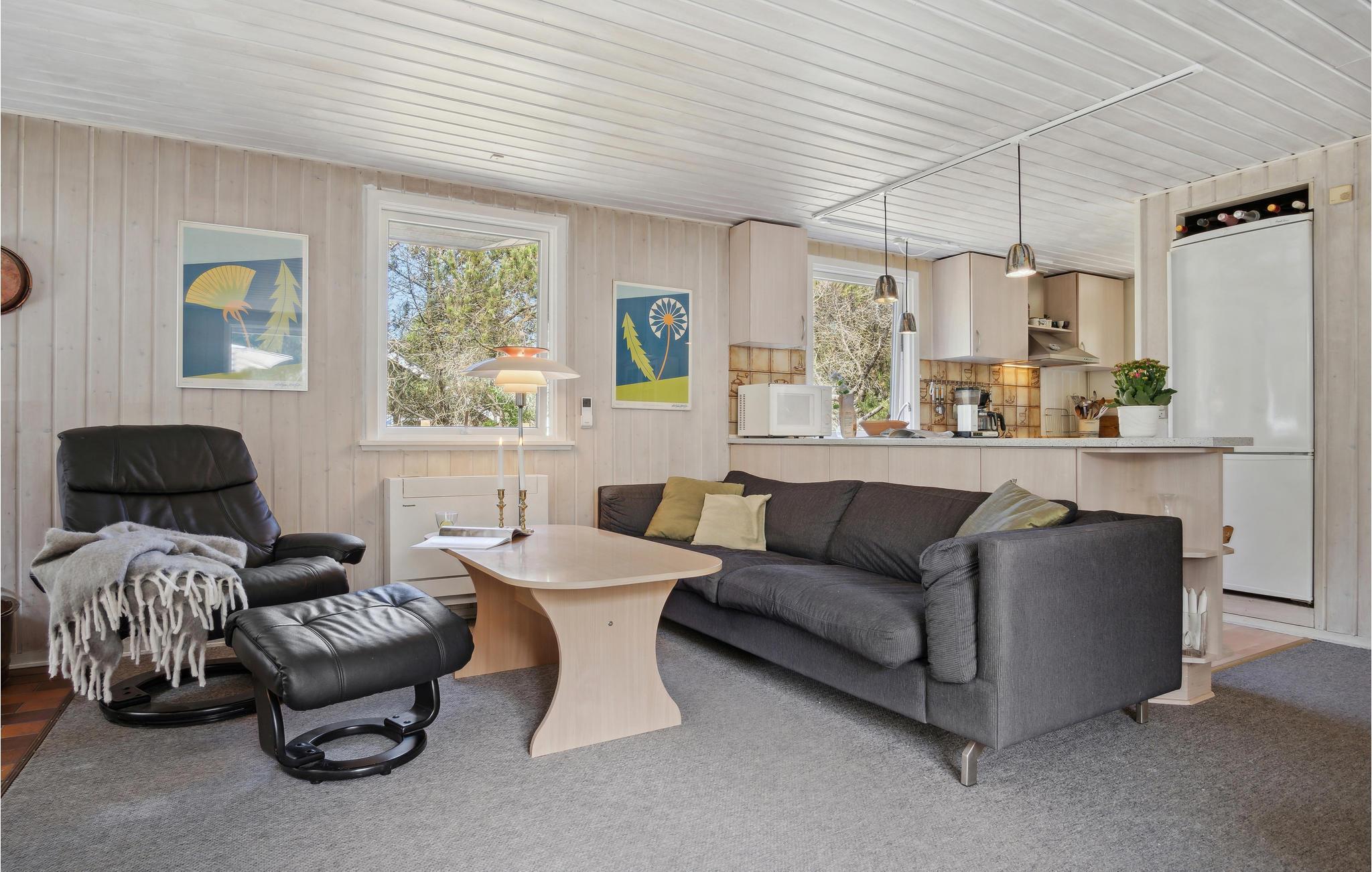 In idyllischer Lage umgeben von Wald empfängt Sie dieses ansprechende Ferienhaus. Wärmen Sie sich nach einem herrlichen Spaziergang am Strand in der Sauna wieder auf und genießen Sie beim gemeinsamen Essen oder beim Entspannen auf dem Sofa gute Gespräche und die gemeinsame Zeit, während im Kaminofen die Flammen leise knistern.