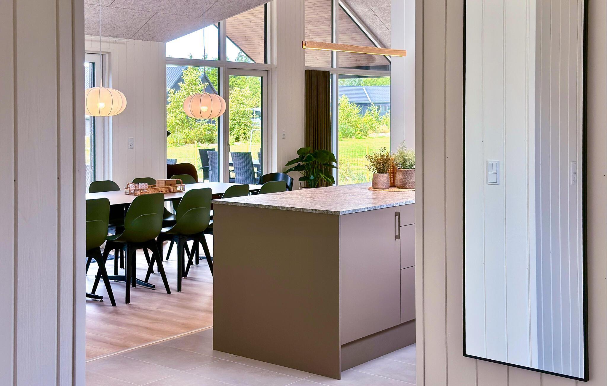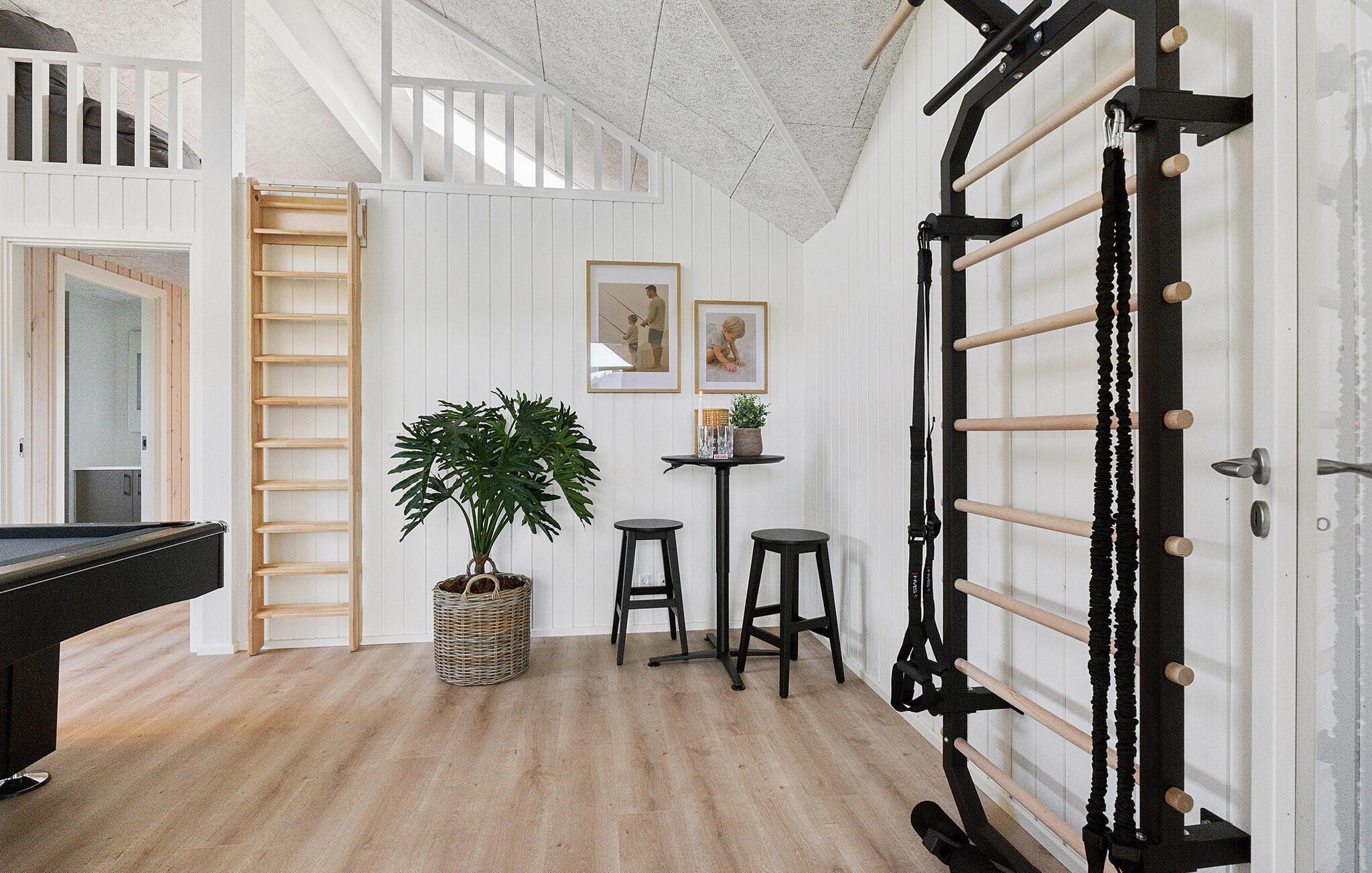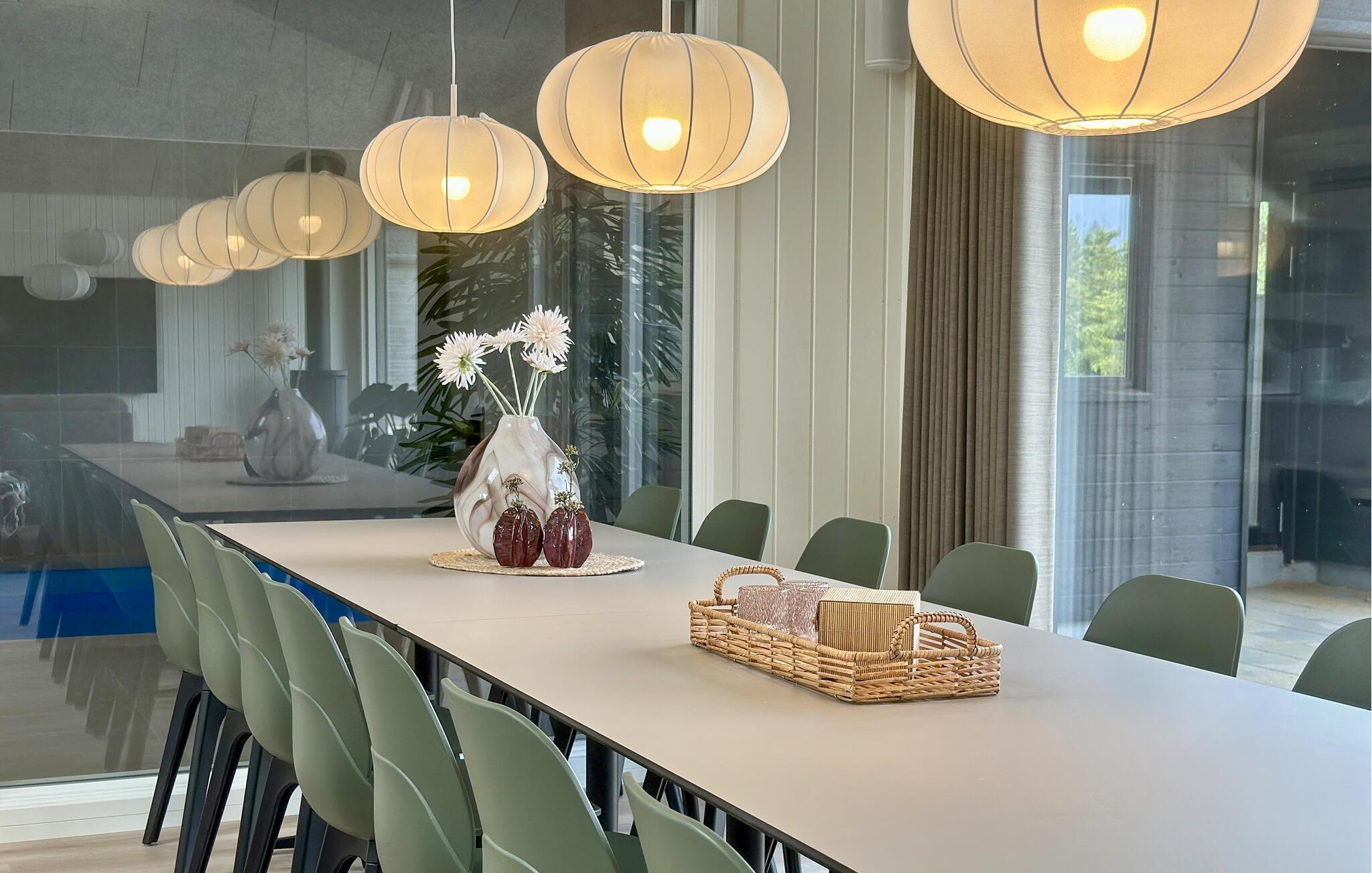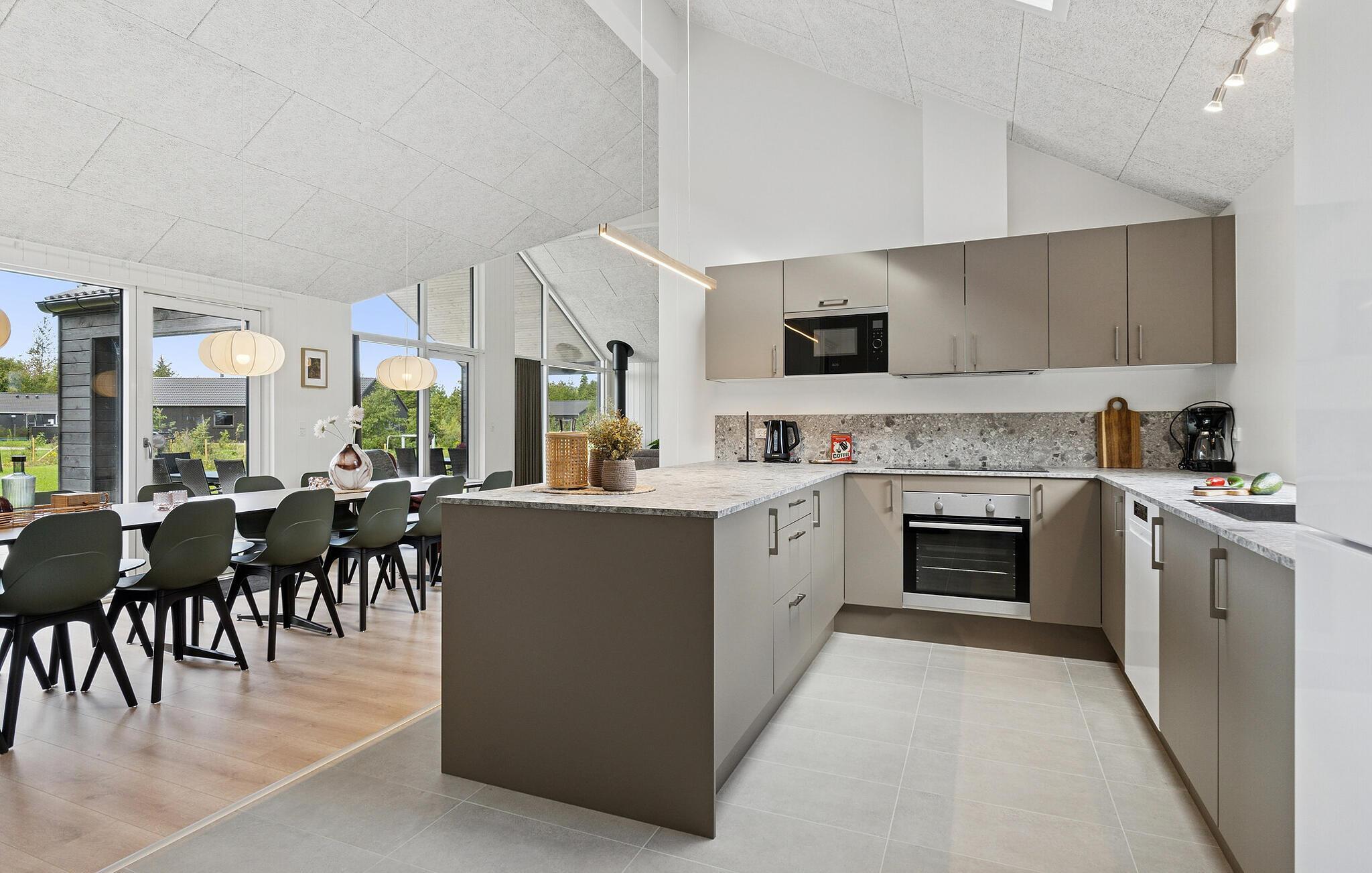 Genießen Sie eine entspannte Auszeit in Ihrem stilvollen, komfortablen Ferienhaus, das viel Raum für gemeinsame Aktivitäten und Erholung bietet. Das Haus liegt nahe der Nordseeküste und am Rande der Blåbjerg Plantage. Lassen Sie sich im hellen Wohnbereich mit großen Fenstern und Kaminofen nieder. Entspannen Sie auf der weichen Sofalandschaft, schauen Sie einen Film oder genießen Sie gemütliche Abende am Esstisch mit Blick auf die Terrasse. Die offene Küche ist modern ausgestattet. Kochen Sie gemeinsam, während andere bereits den Tisch decken, oder genießen Sie beim Frühstück die Morgensonne. Im Aktivitätsraum mit Billardtisch, TV und Schlafboden kommt keine Langeweile auf. Ein weiteres Highlight ist der private Poolbereich mit kleinem Indoor-Pool für die ganze Familie.