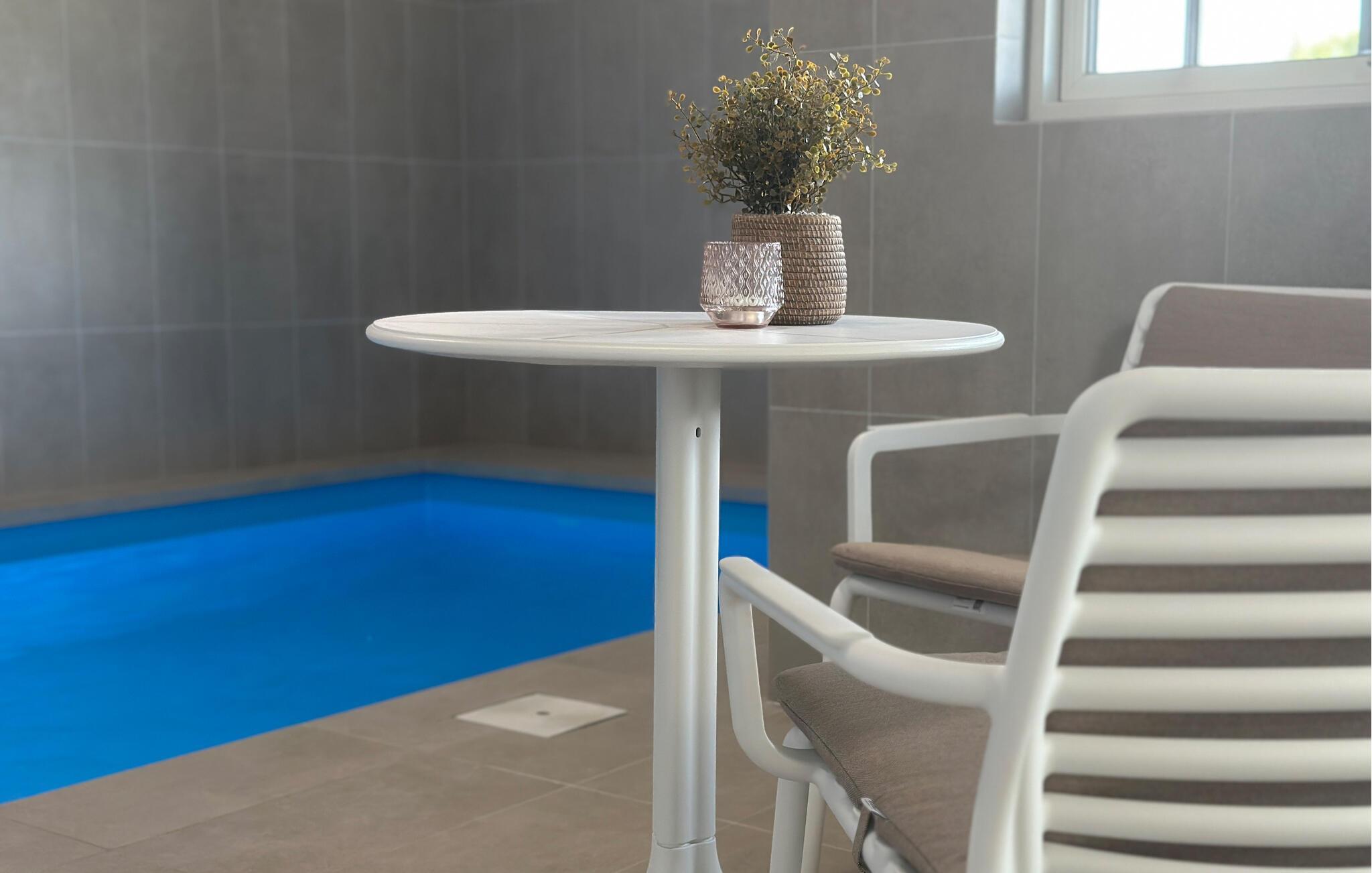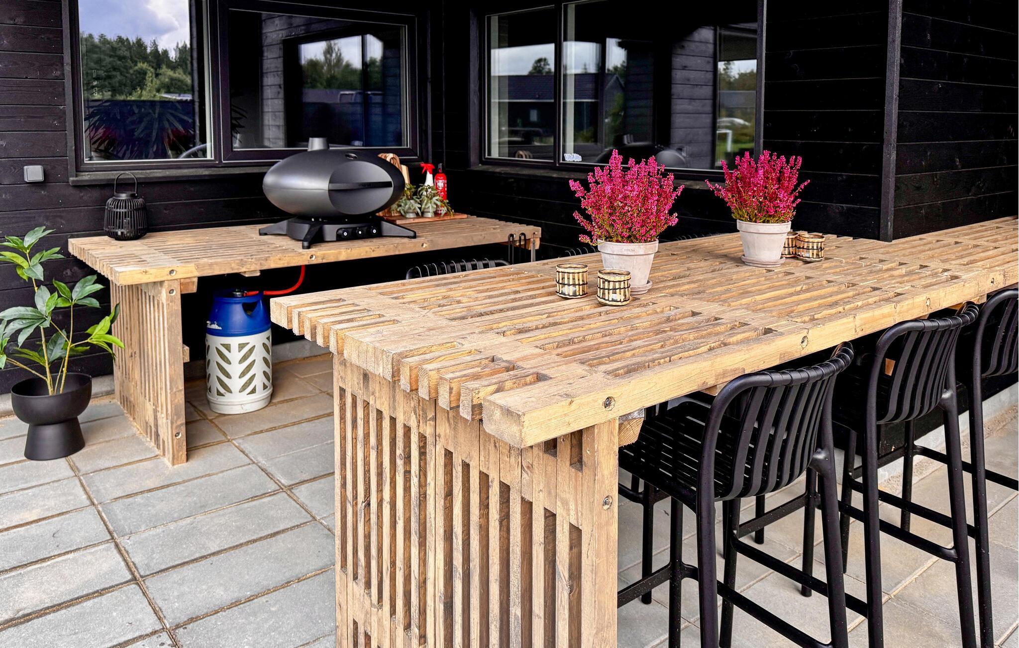 Treten Sie hinaus auf die großzügige, geschützte Terrasse. Speisen Sie unter freiem Himmel, spielen Sie Gesellschaftsspiele oder entspannen Sie im beheizten Außen-Whirlpool. Der Innenhof ist windgeschützt und durchdacht gestaltet, ideal für lange Sommertage und -abende.