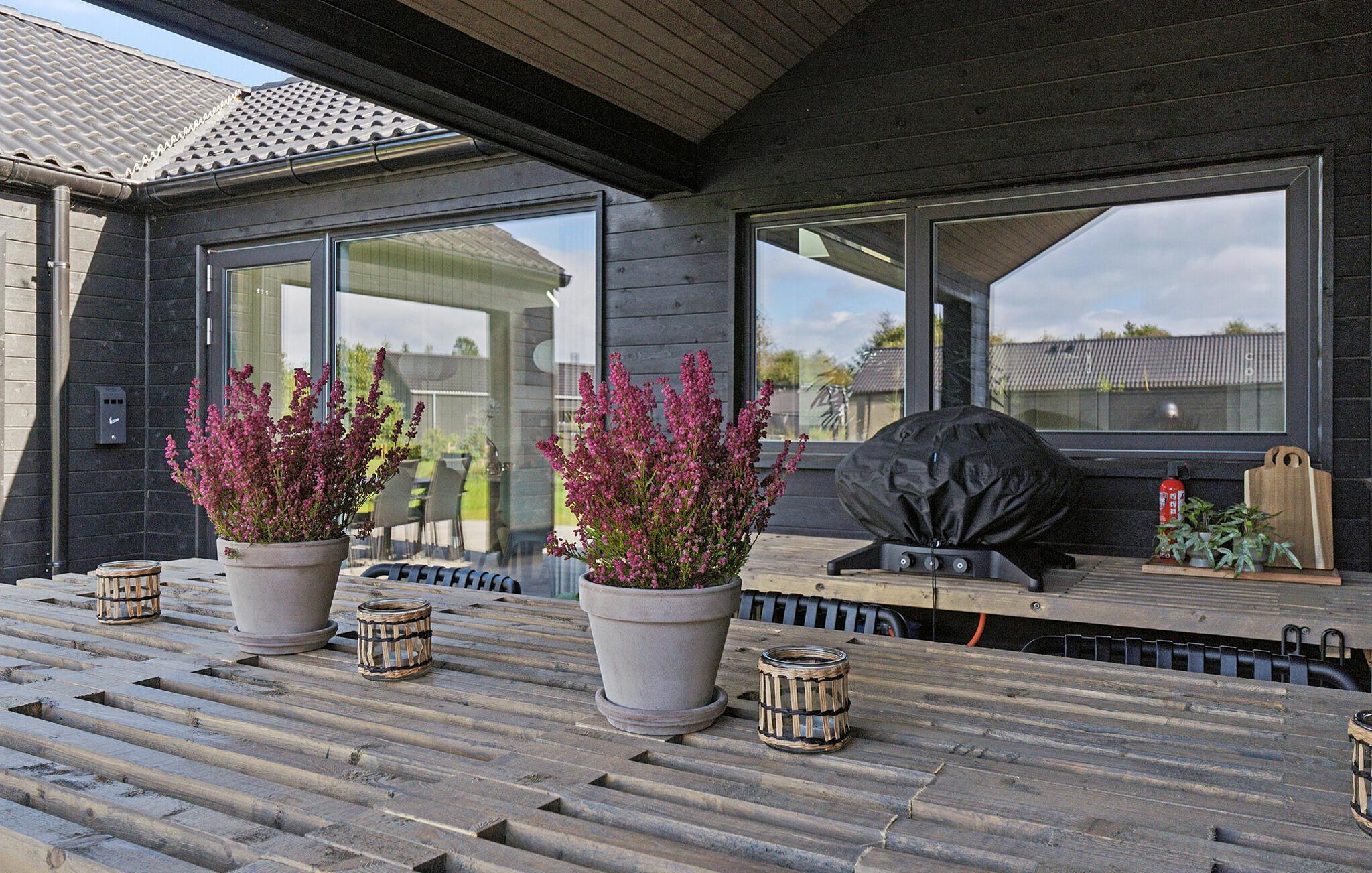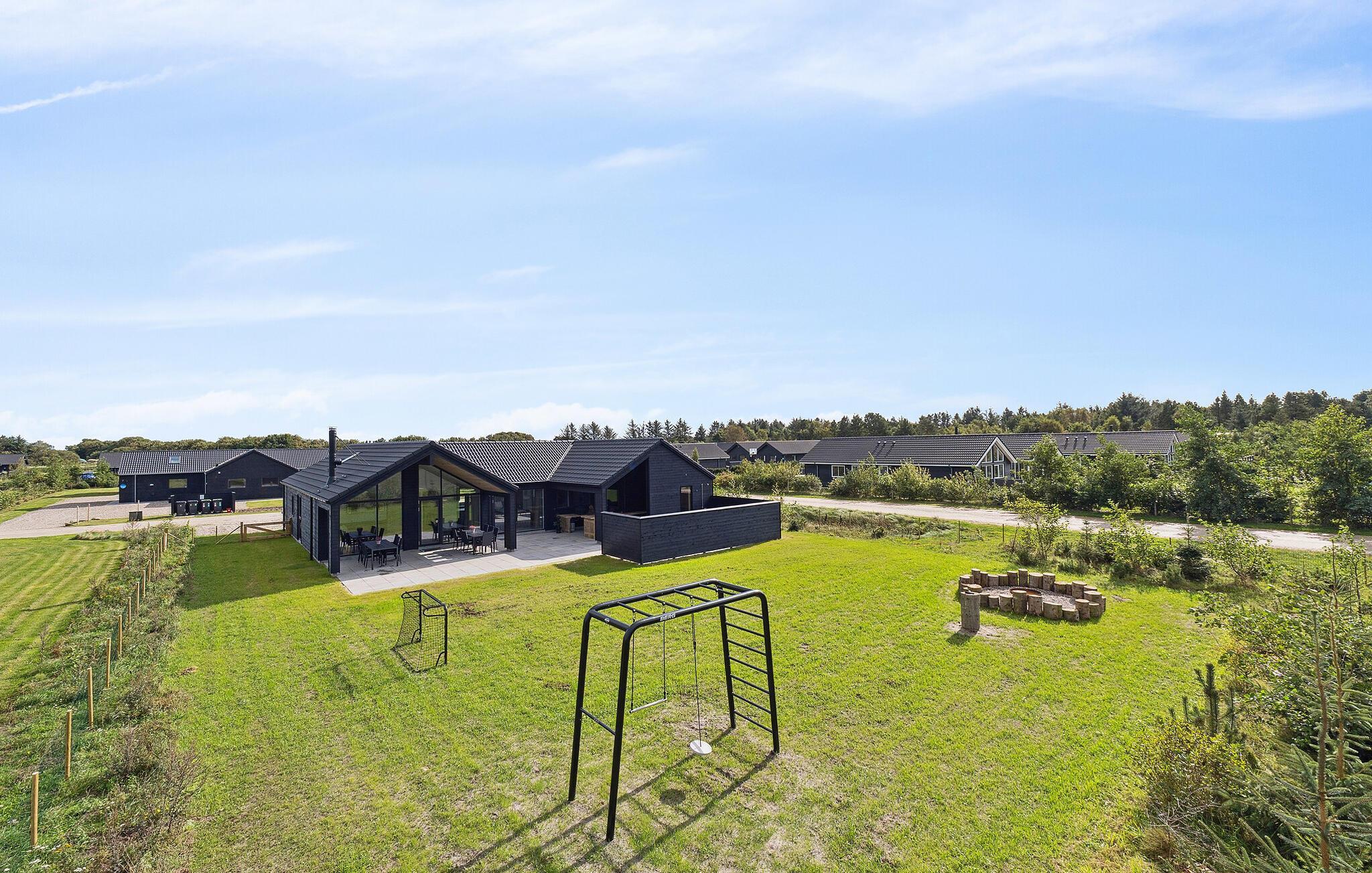 Modernes Wellness-Ferienhaus in Dänemark mit privatem Pool und großem Garten für entspannte Gruppenurlaube nahe der Nordsee.