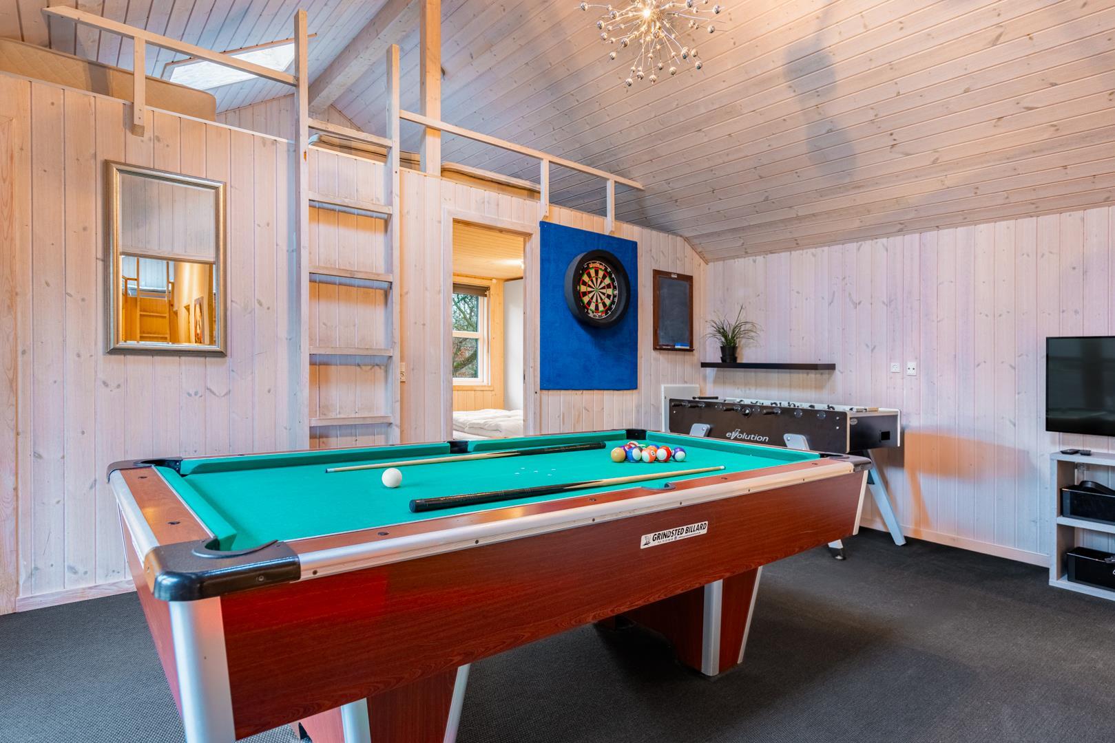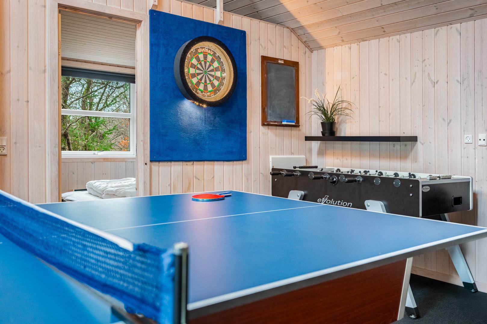 AKTIVITÄTSHAUS mit Tischfußball, Billard, Tischtennis, Dart - elektrisch sowie reguläres Dartspiel - und TV mit Playstation 3 in einem extra Raum. In Verbindung mit dieser Abteilung gibt es 2 Zimmer mit Doppelbett und darüber liegt ein Zwischenboden mit Platz für 3 Personen auf Matratzen. Darüber hinaus gibt es 2 Zimmer - eines mit Doppelstockbett und eines mit Doppelbett.
