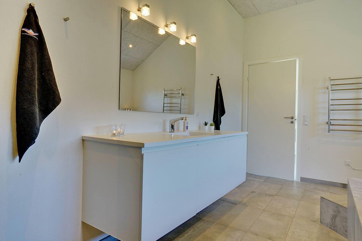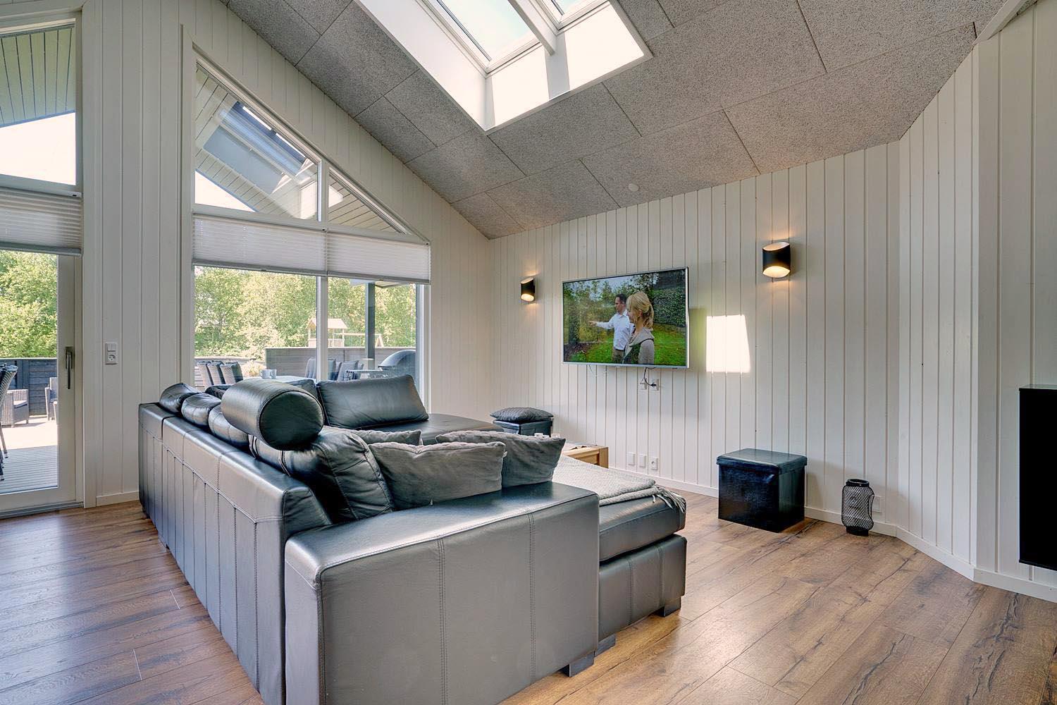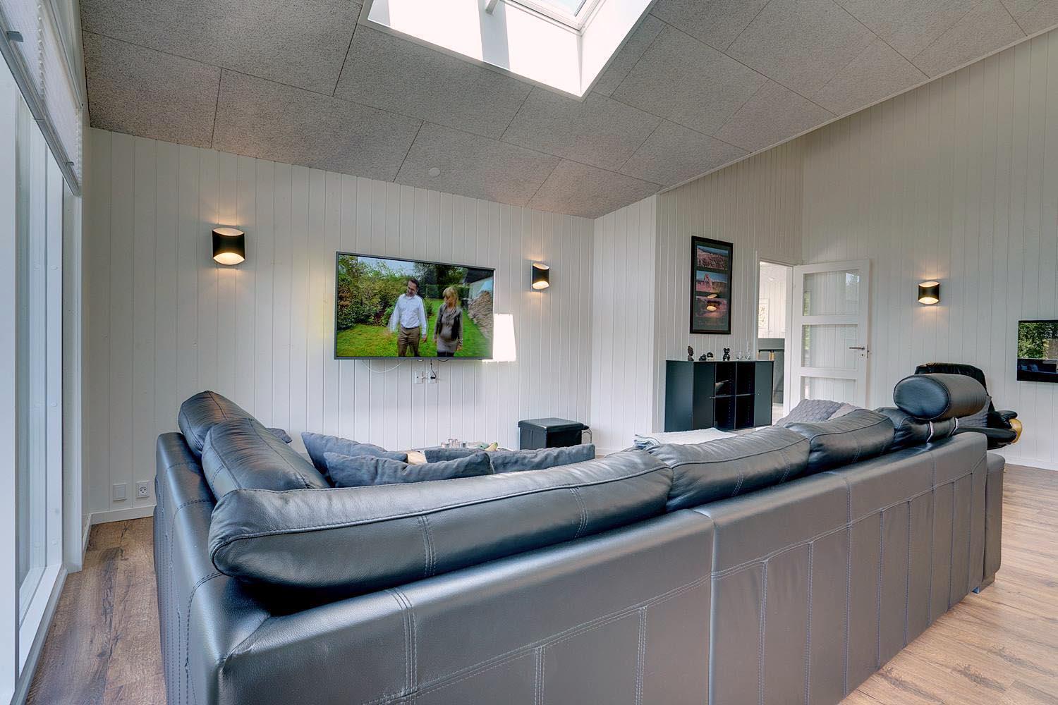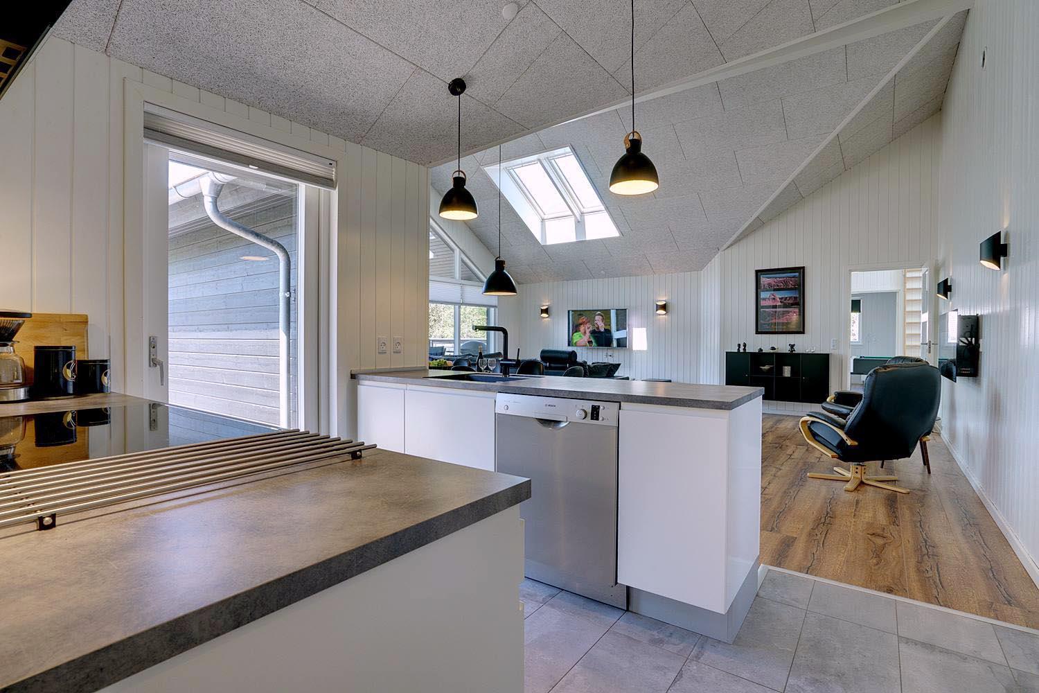 Die komfortable Küche mit 60 l Gefrierfach, Mikrowelle und Geschirrspüler erleichtert die tägliche Arbeit. Viel Licht im Wohnraum, hohe Decken, aber gute Akustik mit Troldtekt-Decken. Ein El-kamin macht die Abende noch gemütlicher. Eine sehr große und sogar geschlossene Terrasse, sodass Sie nicht an einen Hund oder Kinder denken müssen, die ohne Ihr Wissen nach draussen gehen. Darüber hinaus gibt es in diesem Zusammenhang eine versenkte Terrasse, so dass Sie ein schönes Leben im Freien genießen können. Wenn die Sonne zu heiß oder der Abend zu kalt wird, können Sie durch die Terrassenheizung unter die überdachte Terrasse ziehen.