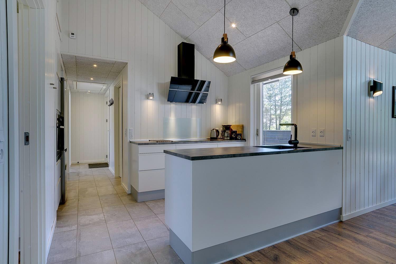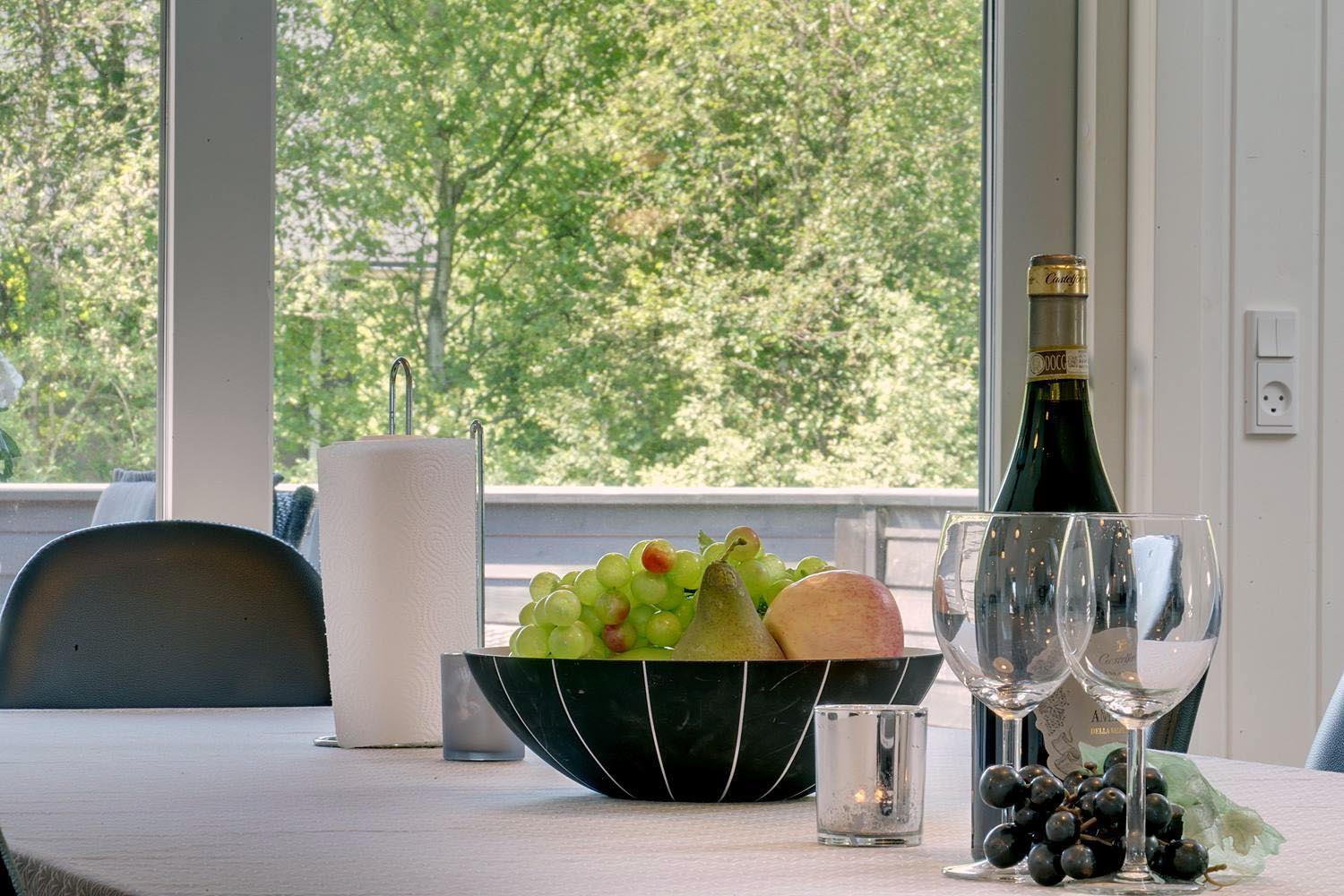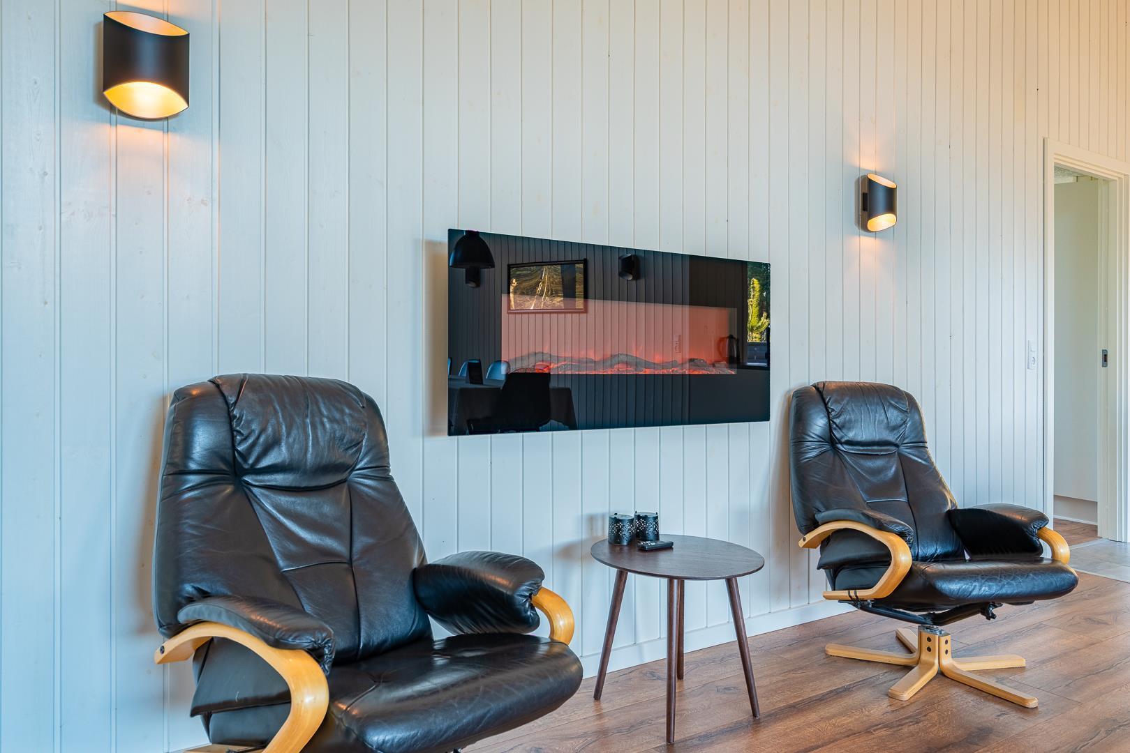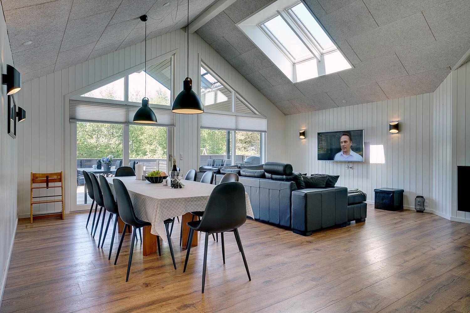 Die komfortable Küche mit 60 l Gefrierfach, Mikrowelle und Geschirrspüler erleichtert die tägliche Arbeit. Viel Licht im Wohnraum, hohe Decken, aber gute Akustik mit Troldtekt-Decken. Ein El-kamin macht die Abende noch gemütlicher. Eine sehr große und sogar geschlossene Terrasse, sodass Sie nicht an einen Hund oder Kinder denken müssen, die ohne Ihr Wissen nach draussen gehen. Darüber hinaus gibt es in diesem Zusammenhang eine versenkte Terrasse, so dass Sie ein schönes Leben im Freien genießen können. Wenn die Sonne zu heiß oder der Abend zu kalt wird, können Sie durch die Terrassenheizung unter die überdachte Terrasse ziehen.