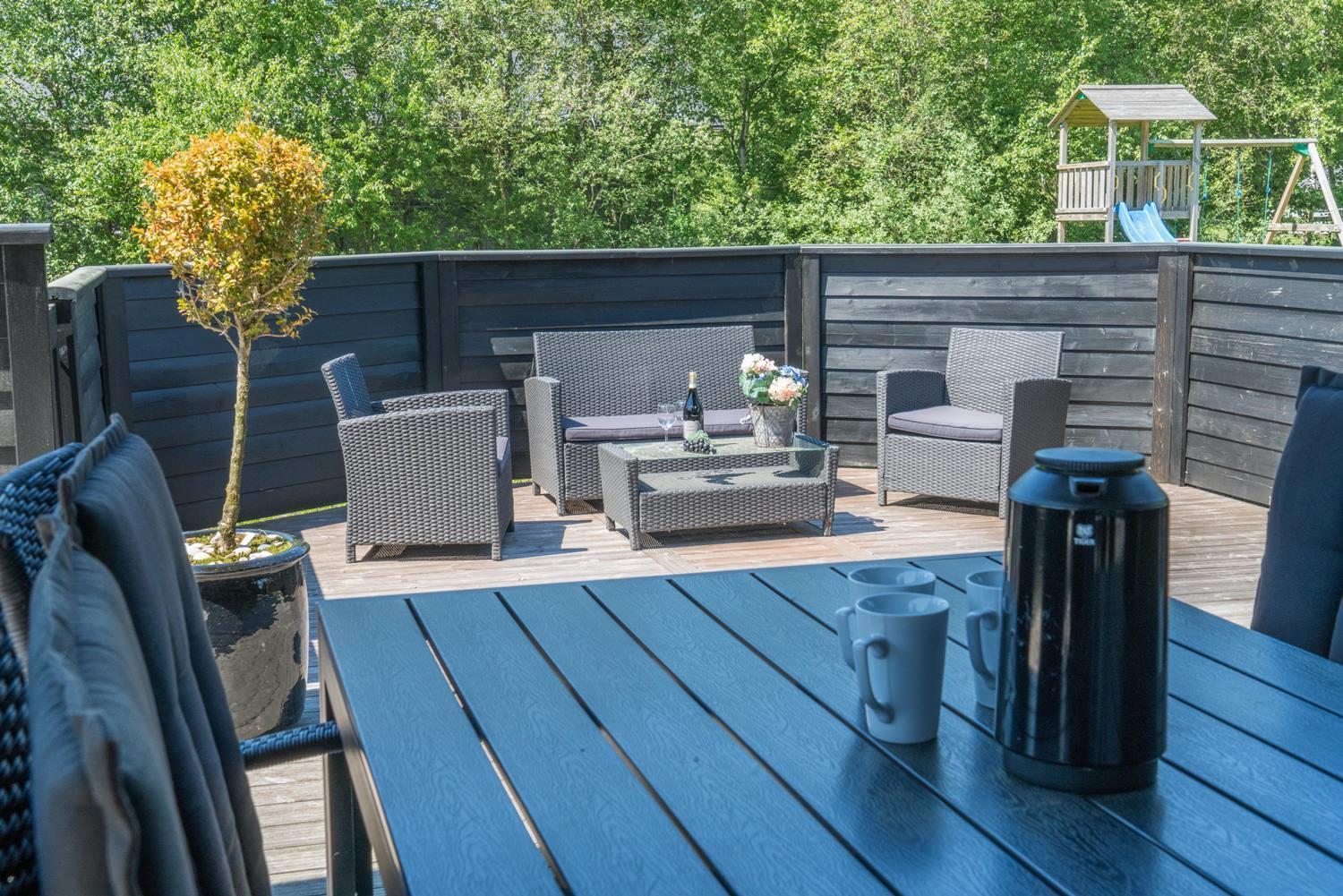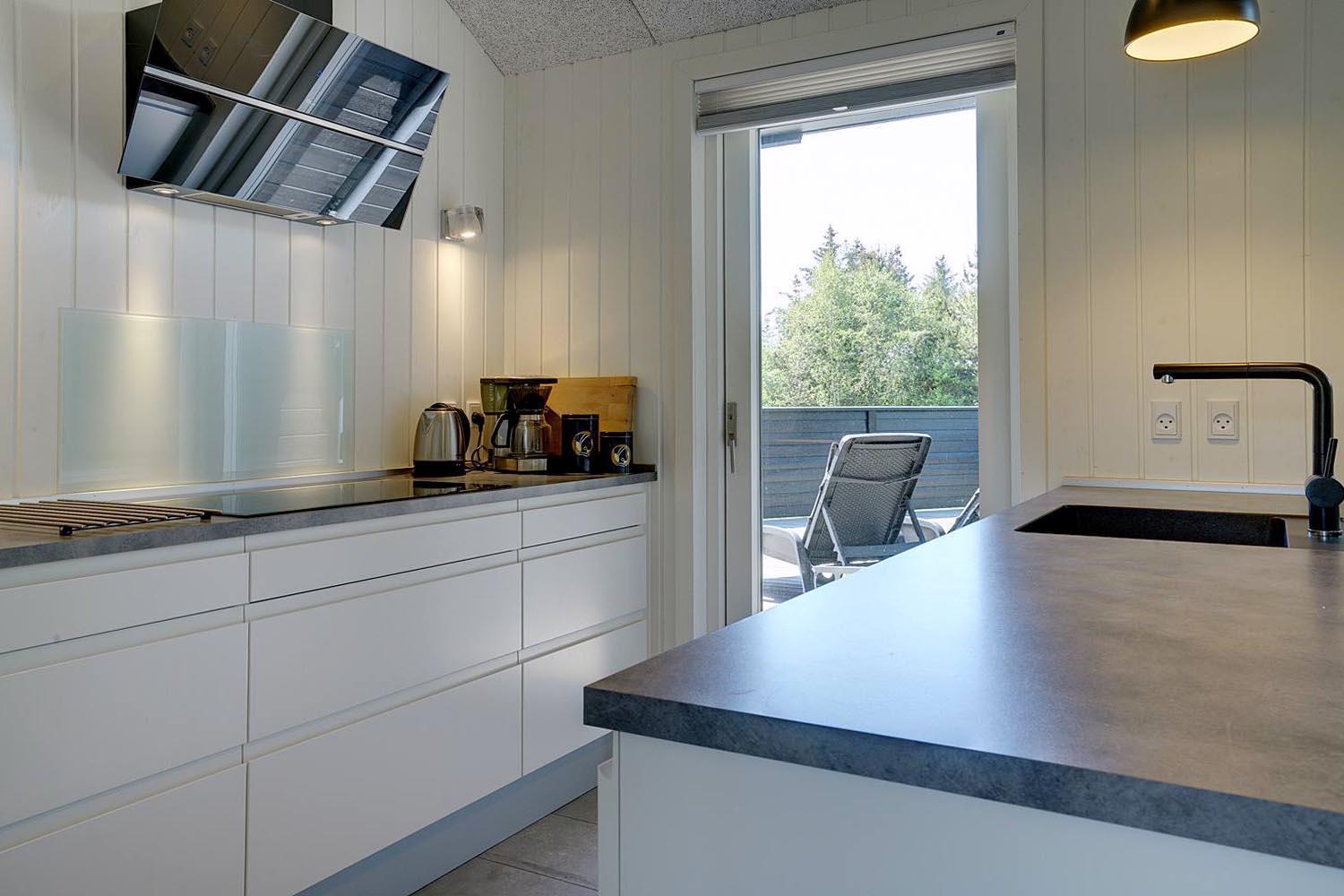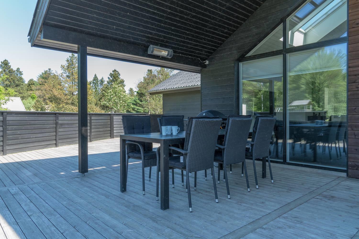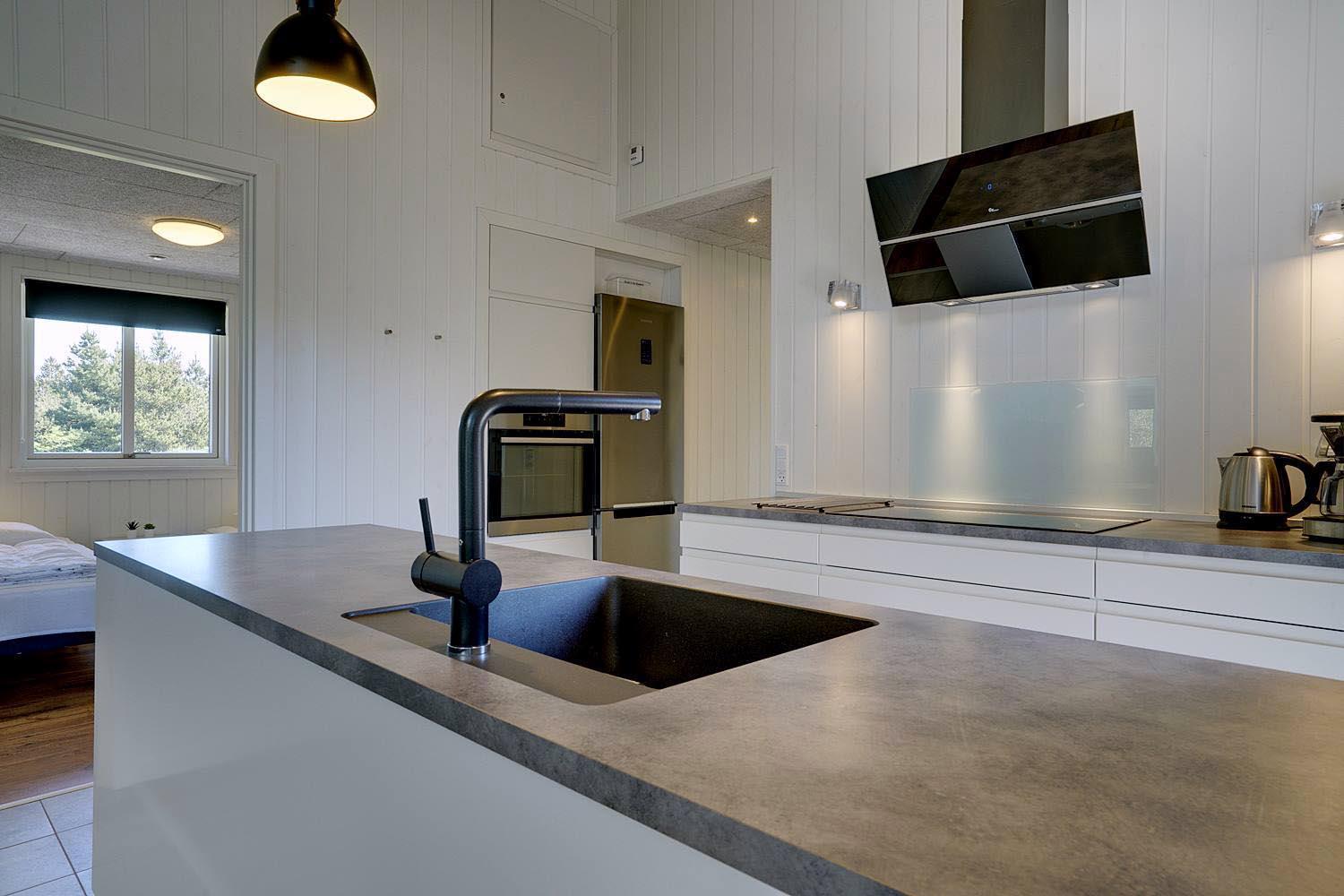 Die komfortable Küche mit 60 l Gefrierfach, Mikrowelle und Geschirrspüler erleichtert die tägliche Arbeit. Viel Licht im Wohnraum, hohe Decken, aber gute Akustik mit Troldtekt-Decken. Ein El-kamin macht die Abende noch gemütlicher. Eine sehr große und sogar geschlossene Terrasse, sodass Sie nicht an einen Hund oder Kinder denken müssen, die ohne Ihr Wissen nach draussen gehen. Darüber hinaus gibt es in diesem Zusammenhang eine versenkte Terrasse, so dass Sie ein schönes Leben im Freien genießen können. Wenn die Sonne zu heiß oder der Abend zu kalt wird, können Sie durch die Terrassenheizung unter die überdachte Terrasse ziehen.