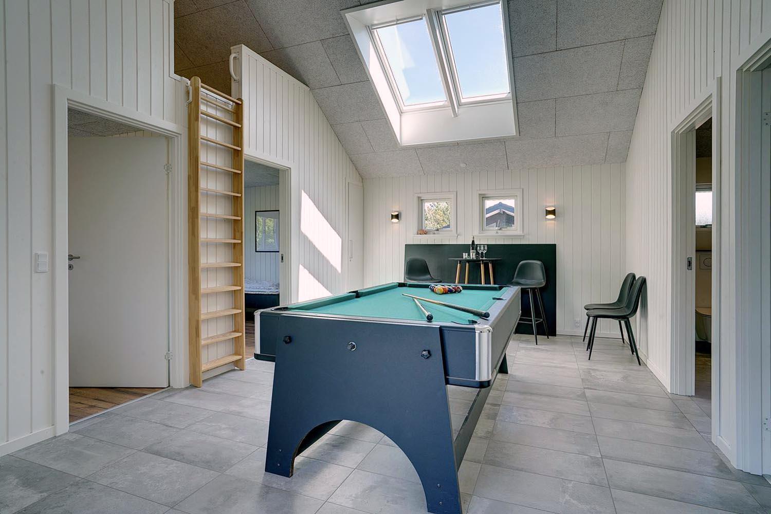 Ein Aktivitätsraum für die ganze Familie bildet den Rahmen für viele gute Stunden zusammen. Billard und Tischtennis - für Jung und Alt. 2 Badezimmer, von denen eines Platz für Wellness und Entspannung bietet - die Infrarotsauna und das Standwasser-Whirlpool sorgen für zusätzlichen Luxus.
