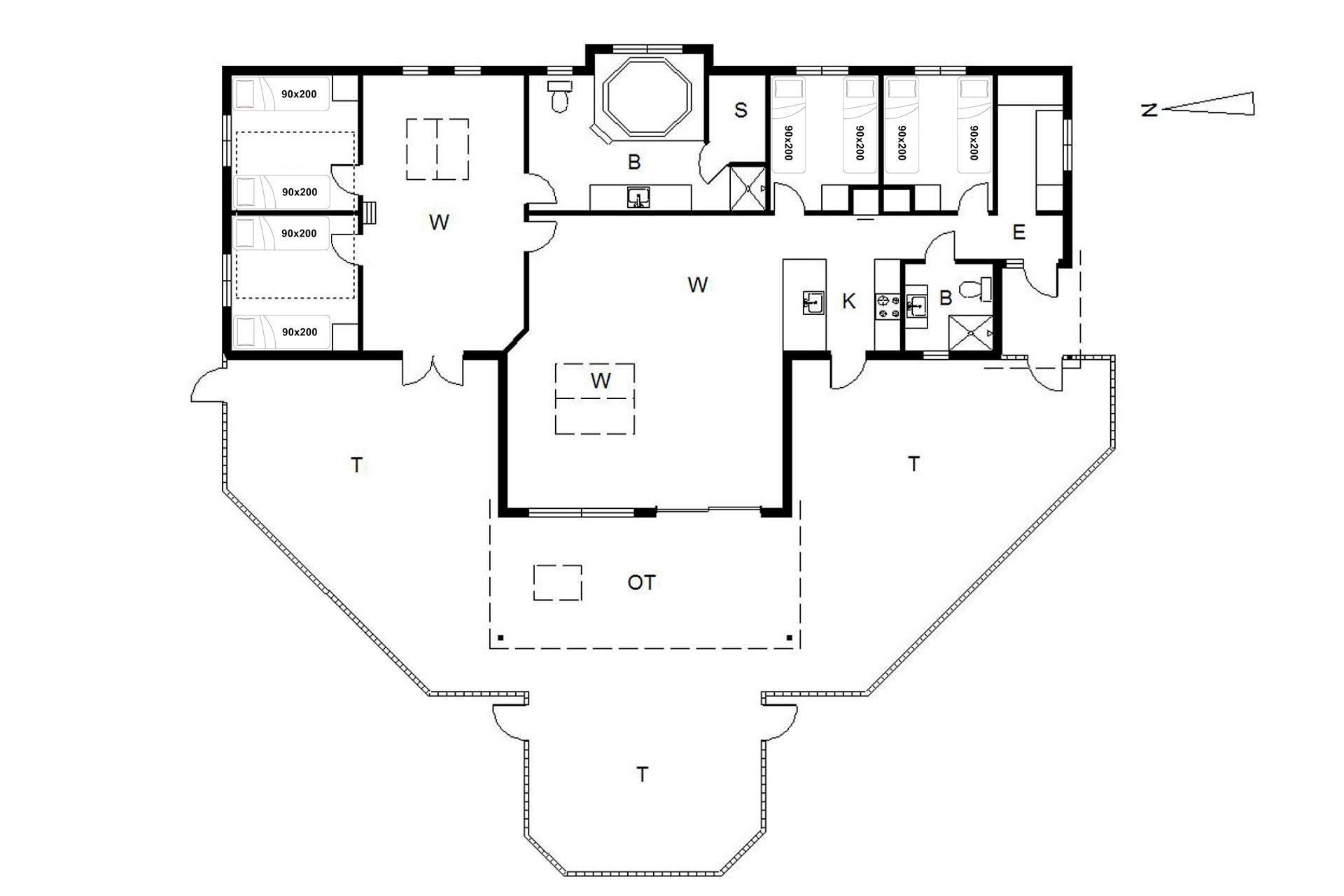 Bettengrösse: 8 Einzelbetten 90 x 200 cm.