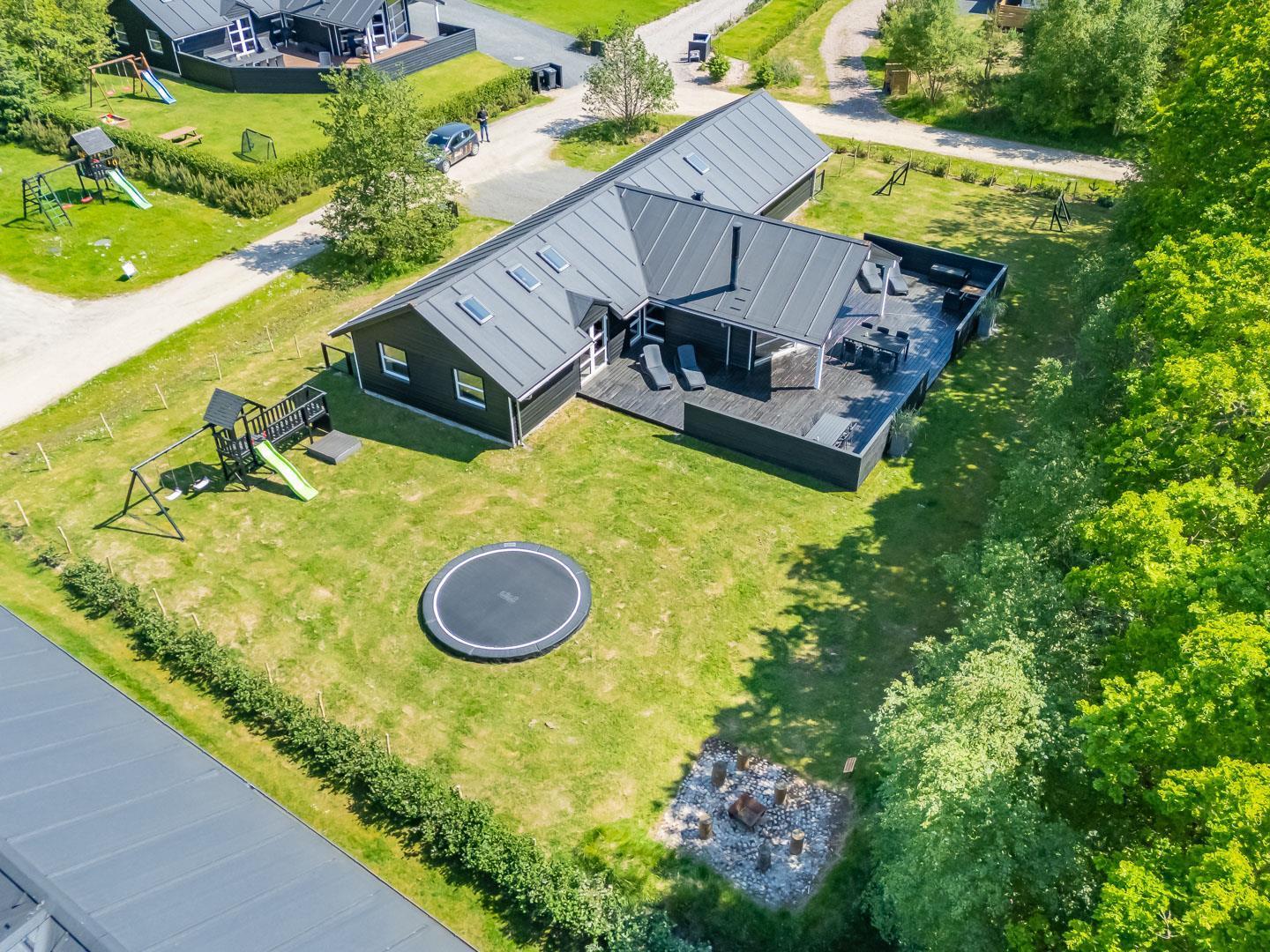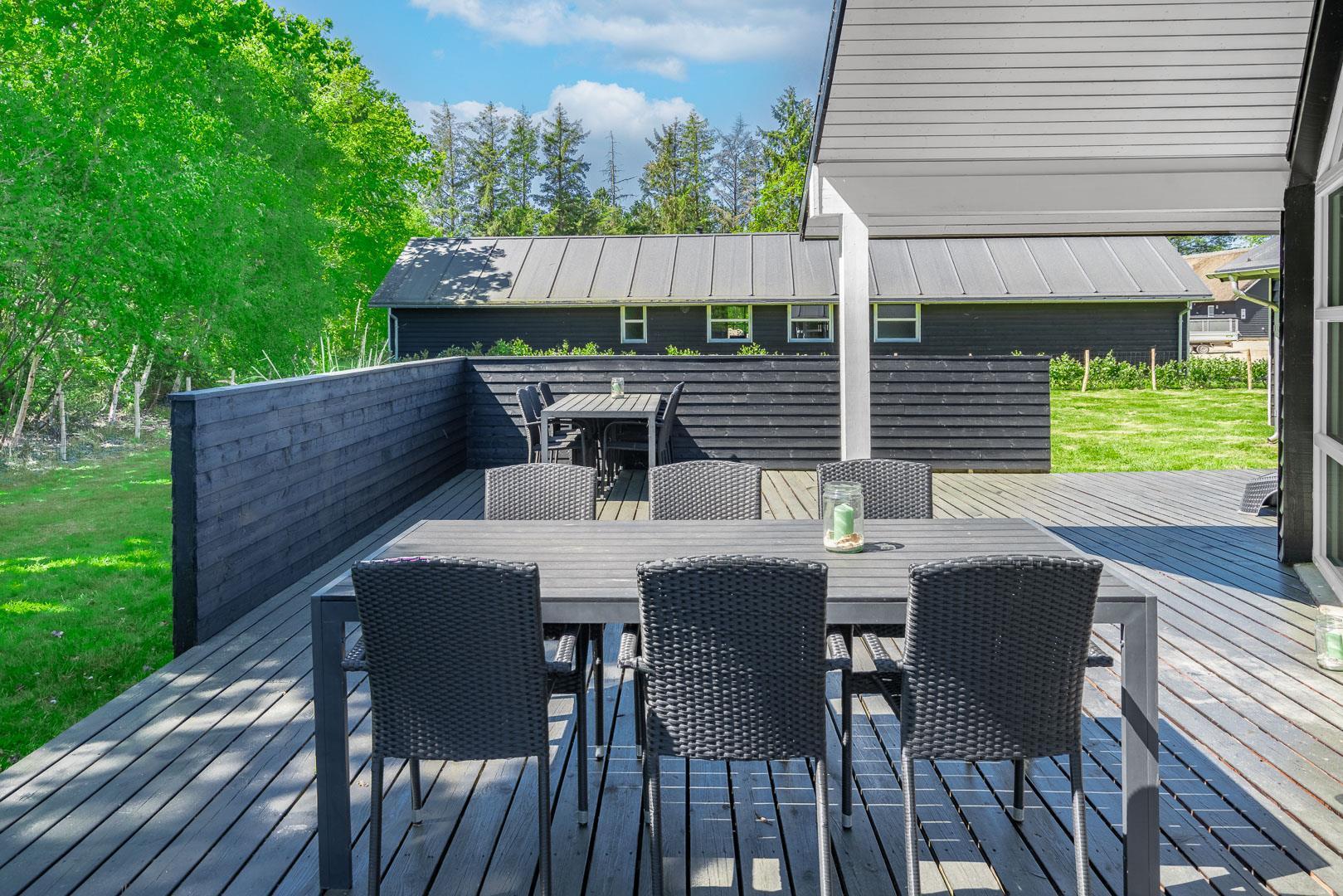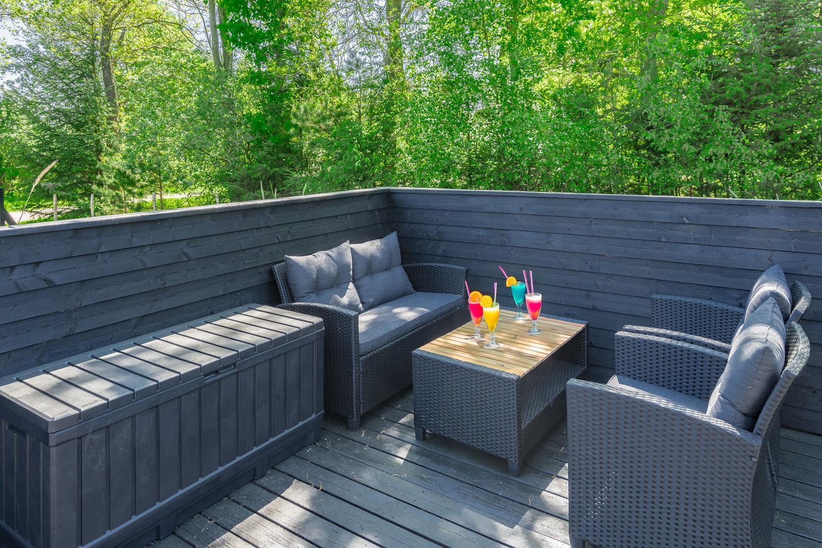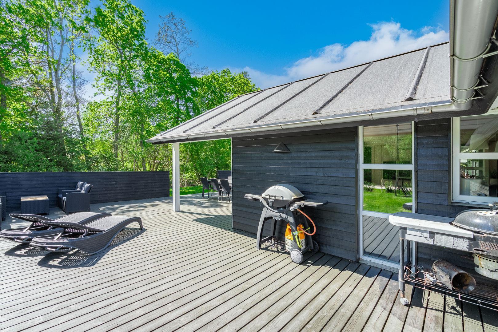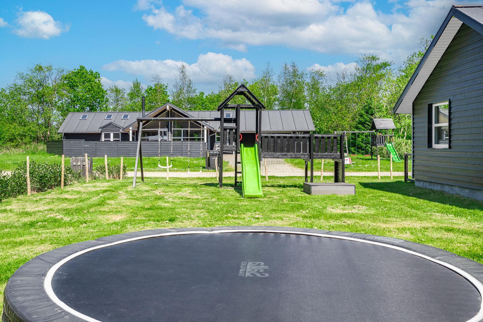 In einem geschlossenen Schotterweg liegt dieses schöne Aktivitätshaus mit Aktivitäten und Herausforderungen für die ganze Familie, draußen und drinnen. Das Ferienhaus macht einen äußerst gepflegten Eindruck und ist sehr praktisch eingerichtet. Große offene, hell eingerichtete Wohnküche mit Dachschrägen und großen Panoramafenstern, Holzofen und Wärmepumpe. Von hier aus gibt es einen direkten Zugang zu mehreren Holzterrassen, die den größten Teil des Hauses umgeben. Hier findet man immer Gemütlichkeit am Grill, es wurde extra ein Gasgrill aufgestellt. Auf dem komplett eingezäunten Grundstück wurde eine gemütliche Lagerfeuerstelle eingerichtet.