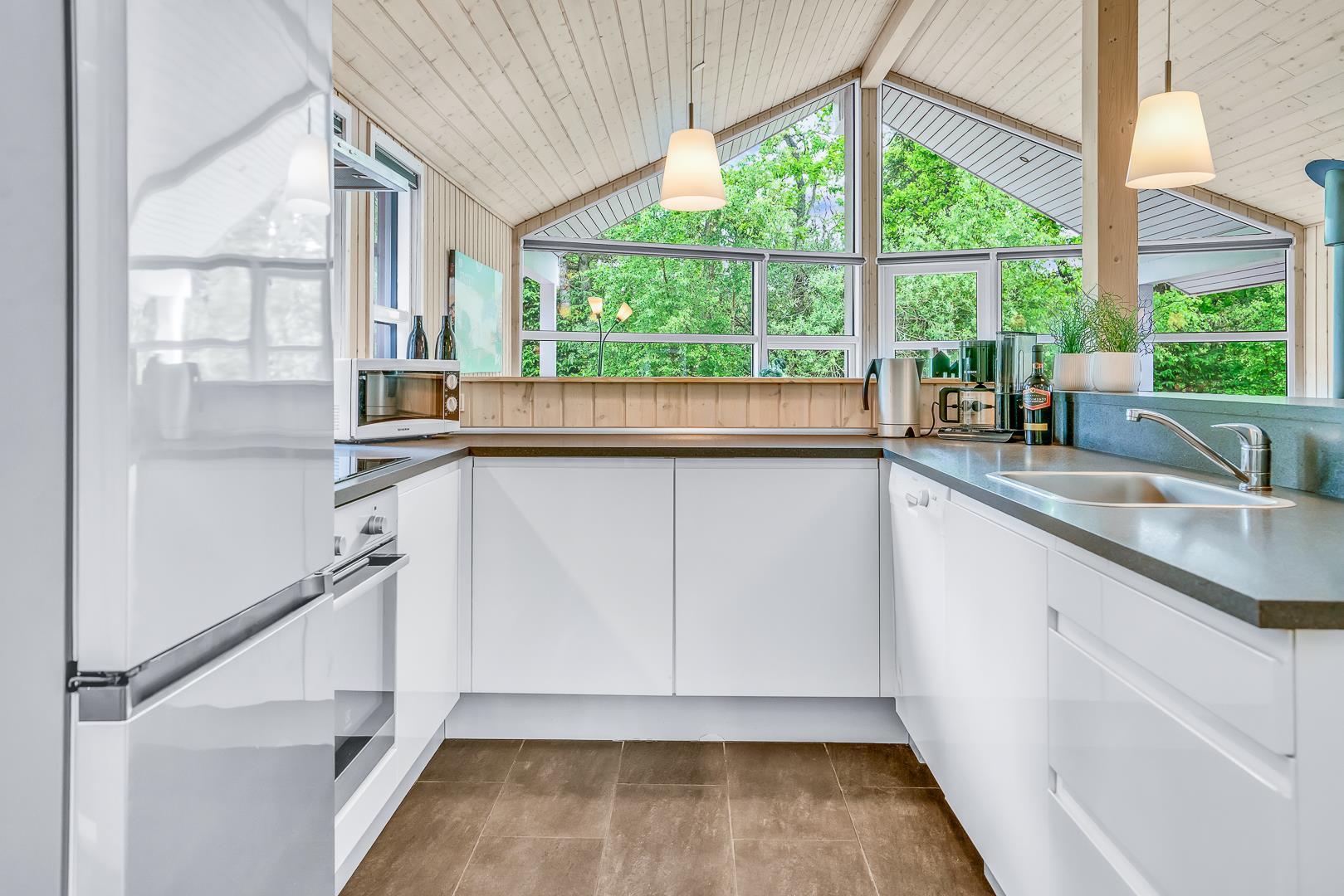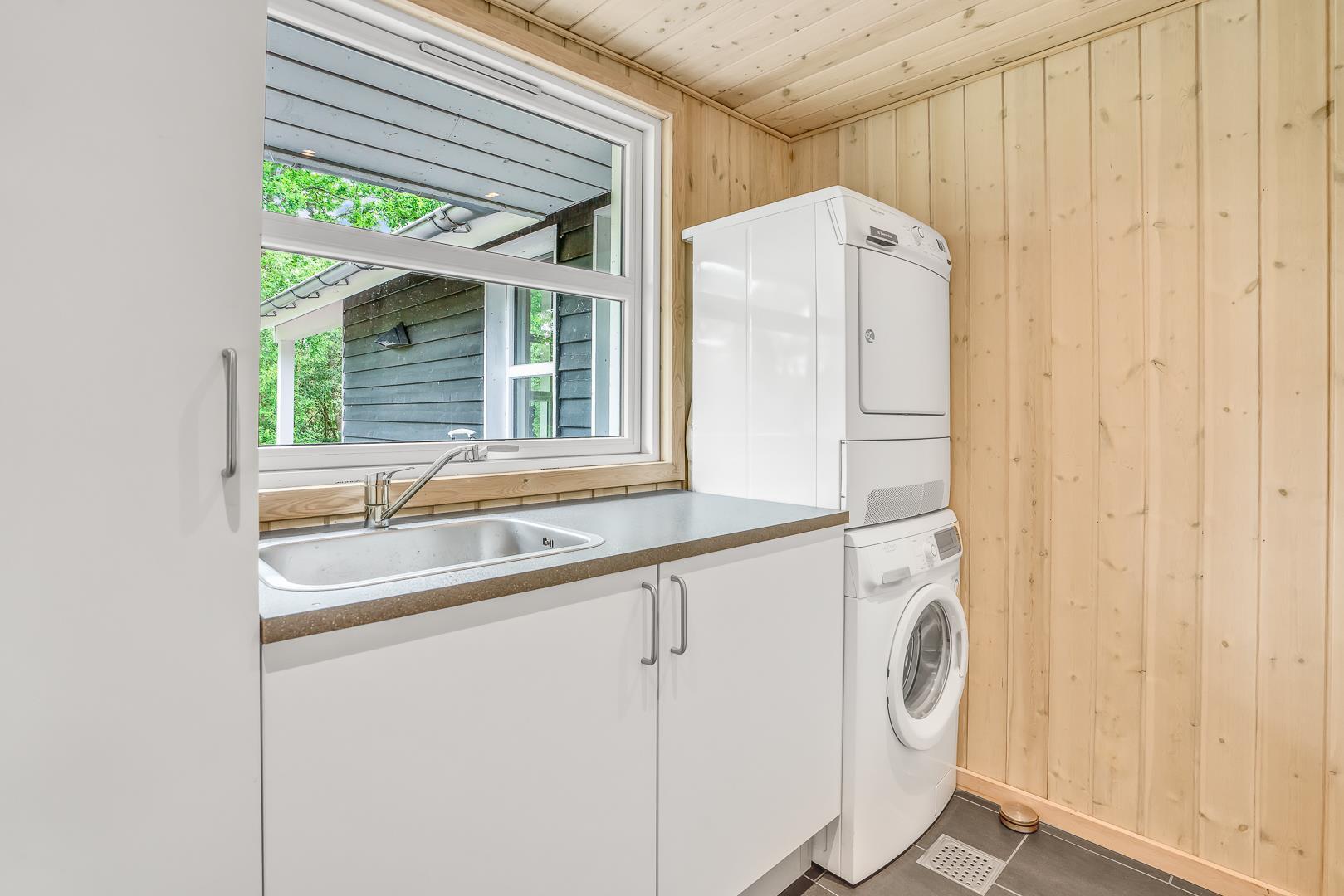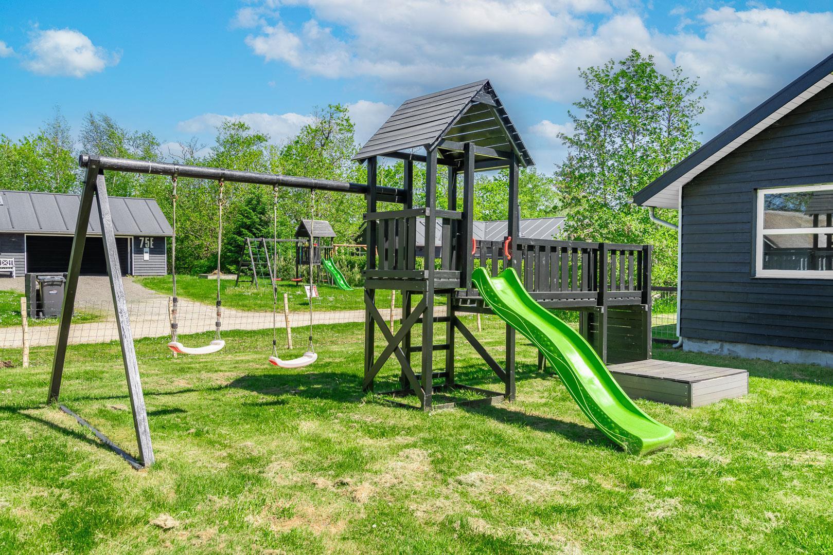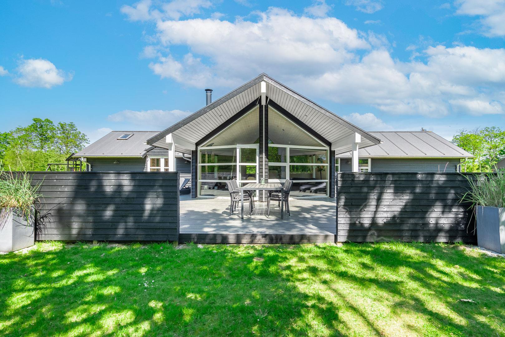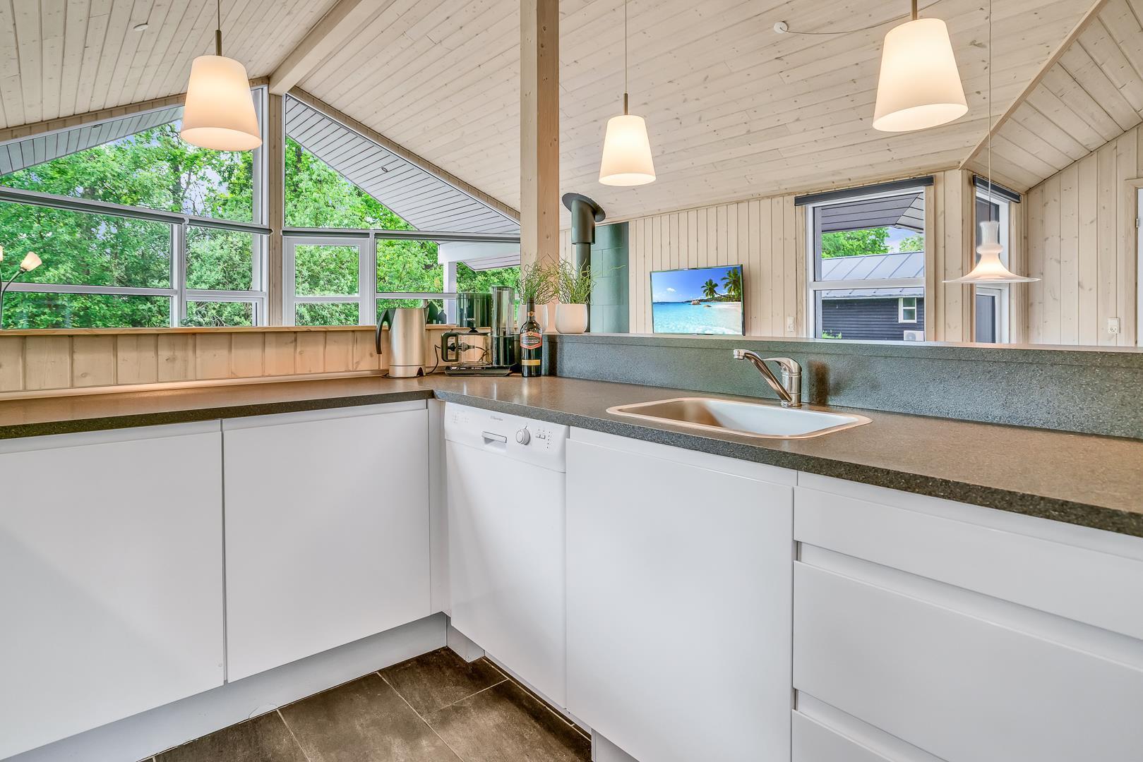 In einem geschlossenen Schotterweg liegt dieses schöne Aktivitätshaus mit Aktivitäten und Herausforderungen für die ganze Familie, draußen und drinnen. Das Ferienhaus macht einen äußerst gepflegten Eindruck und ist sehr praktisch eingerichtet. Große offene, hell eingerichtete Wohnküche mit Dachschrägen und großen Panoramafenstern, Holzofen und Wärmepumpe. Von hier aus gibt es einen direkten Zugang zu mehreren Holzterrassen, die den größten Teil des Hauses umgeben. Hier findet man immer Gemütlichkeit am Grill, es wurde extra ein Gasgrill aufgestellt. Auf dem komplett eingezäunten Grundstück wurde eine gemütliche Lagerfeuerstelle eingerichtet.