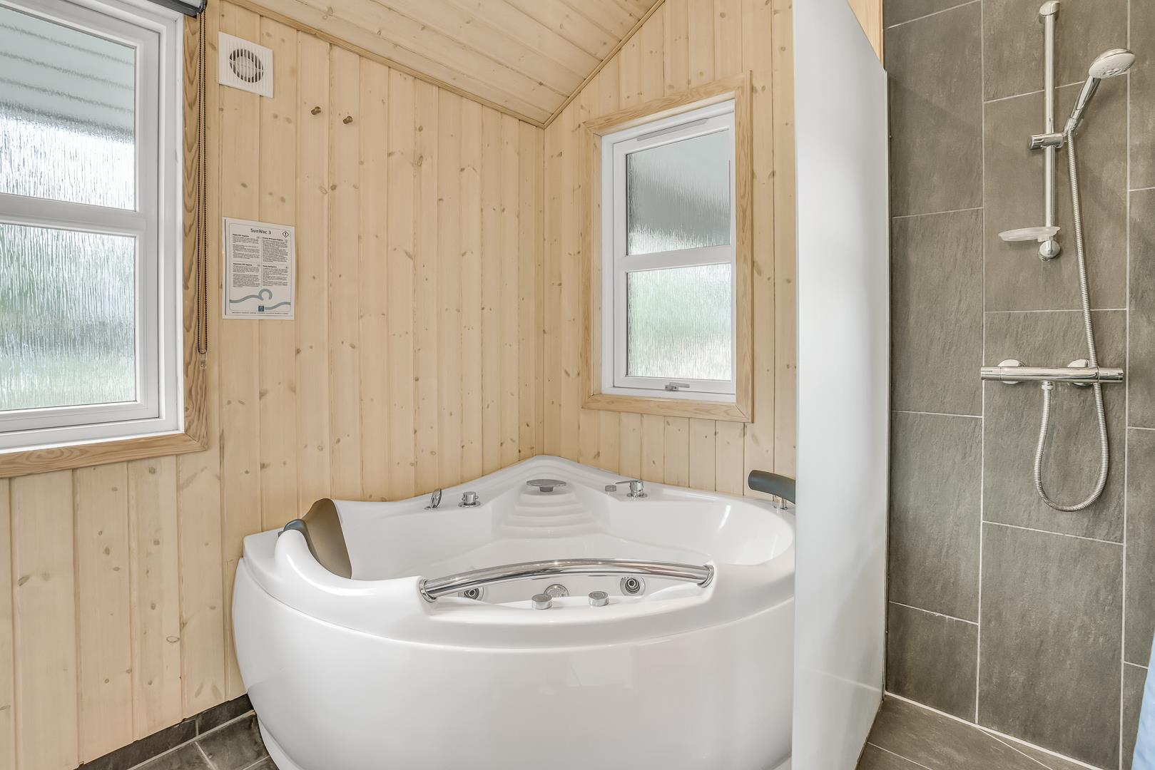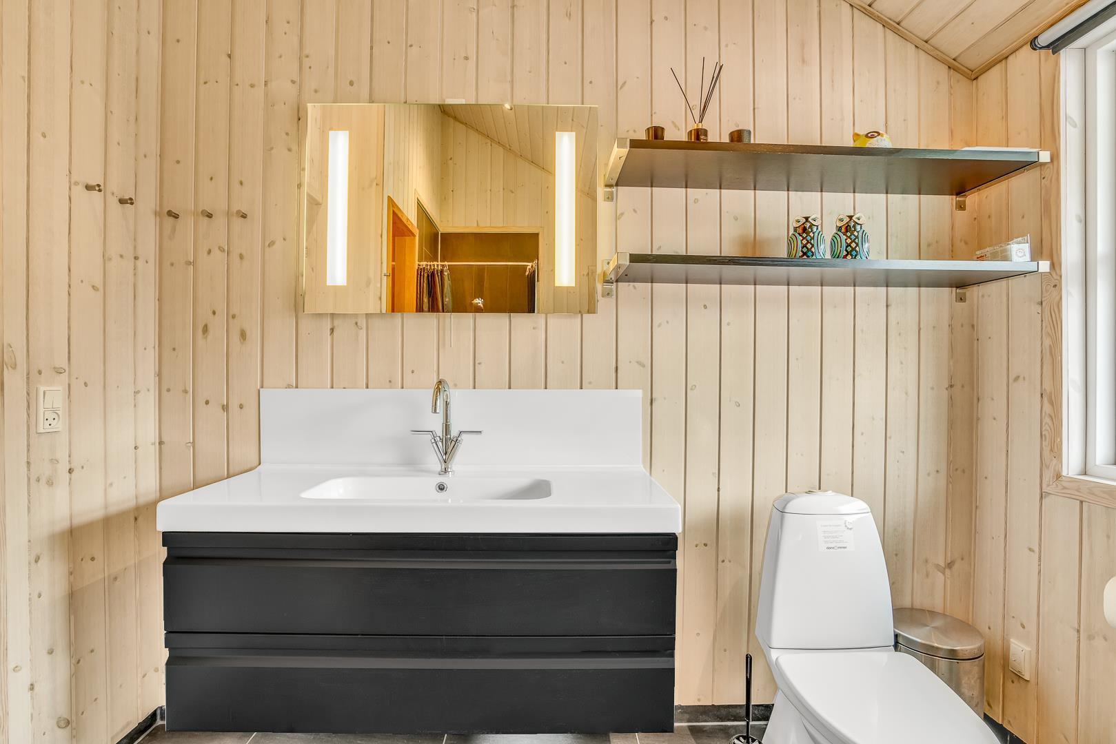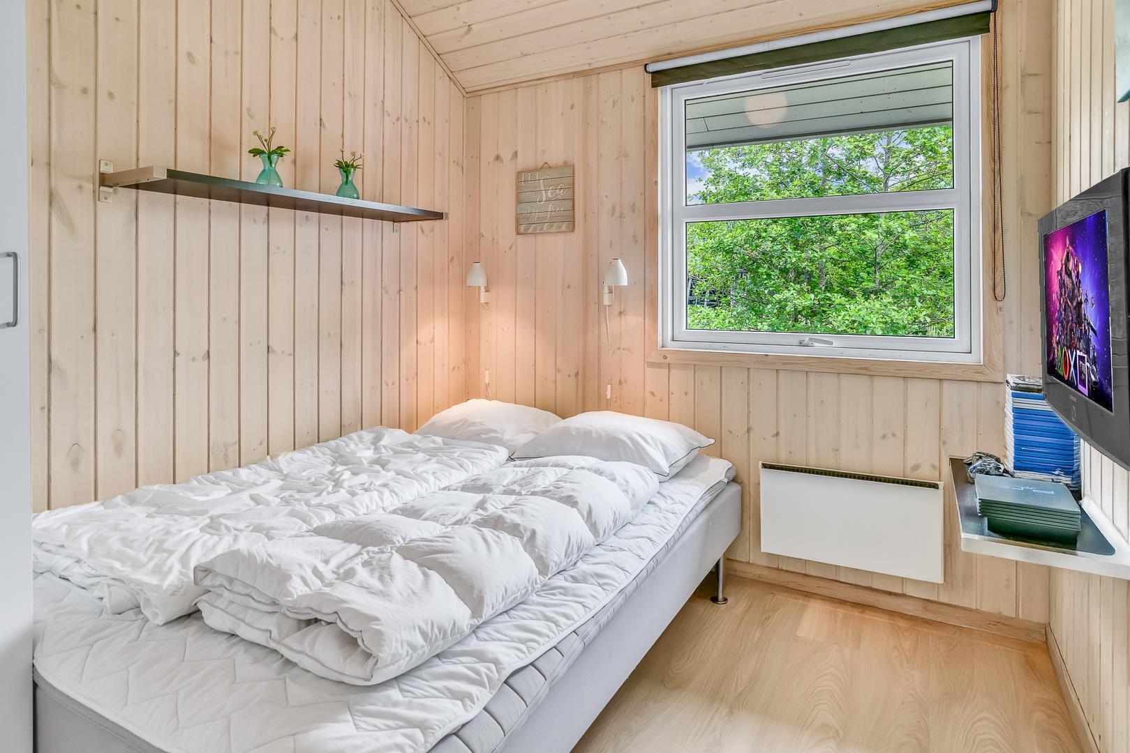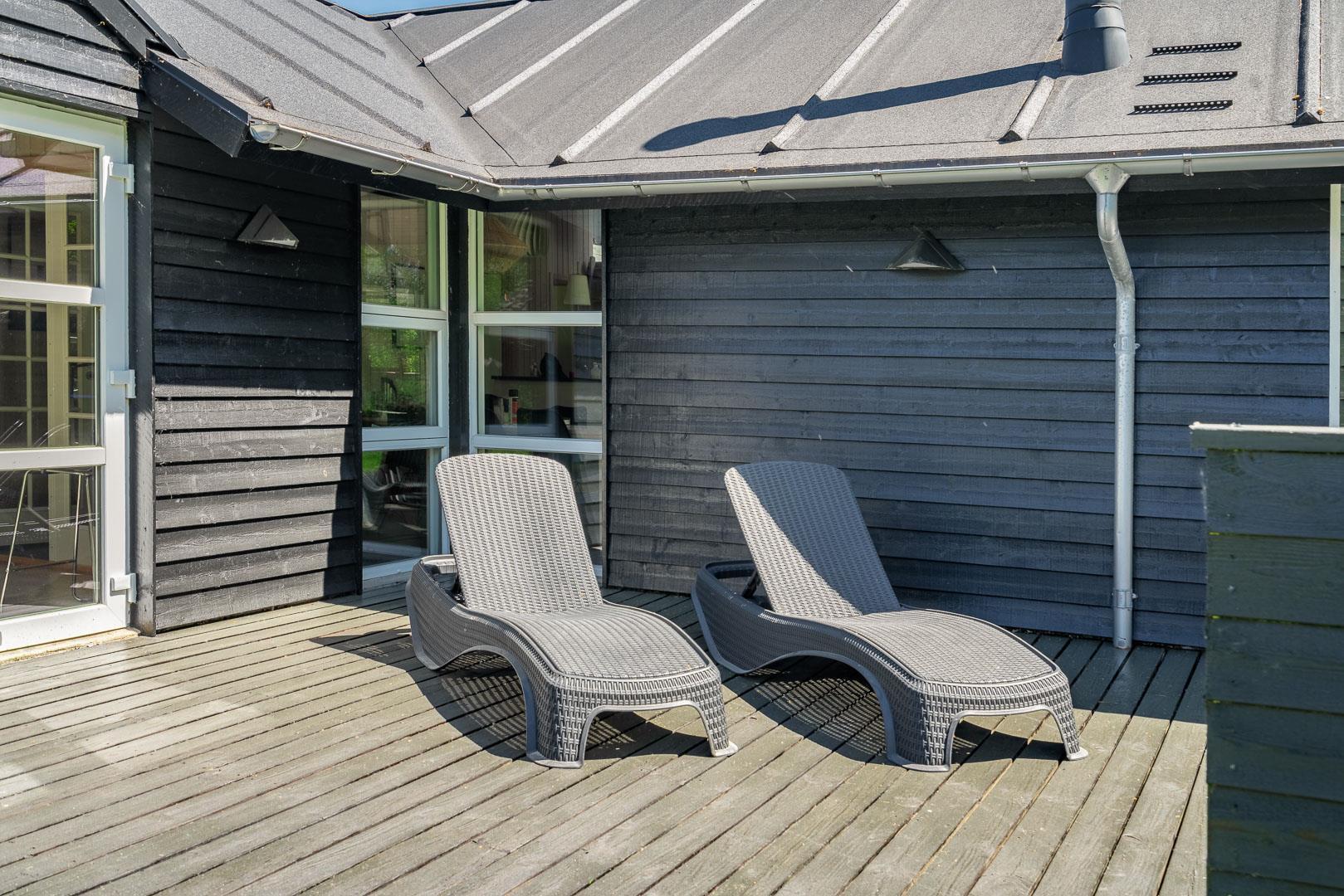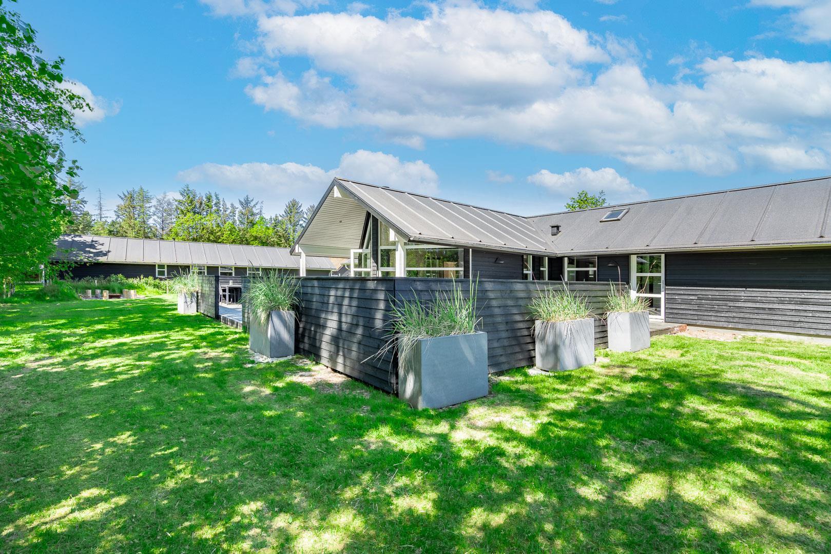 In einem geschlossenen Schotterweg liegt dieses schöne Aktivitätshaus mit Aktivitäten und Herausforderungen für die ganze Familie, draußen und drinnen. Das Ferienhaus macht einen äußerst gepflegten Eindruck und ist sehr praktisch eingerichtet. Große offene, hell eingerichtete Wohnküche mit Dachschrägen und großen Panoramafenstern, Holzofen und Wärmepumpe. Von hier aus gibt es einen direkten Zugang zu mehreren Holzterrassen, die den größten Teil des Hauses umgeben. Hier findet man immer Gemütlichkeit am Grill, es wurde extra ein Gasgrill aufgestellt. Auf dem komplett eingezäunten Grundstück wurde eine gemütliche Lagerfeuerstelle eingerichtet.
