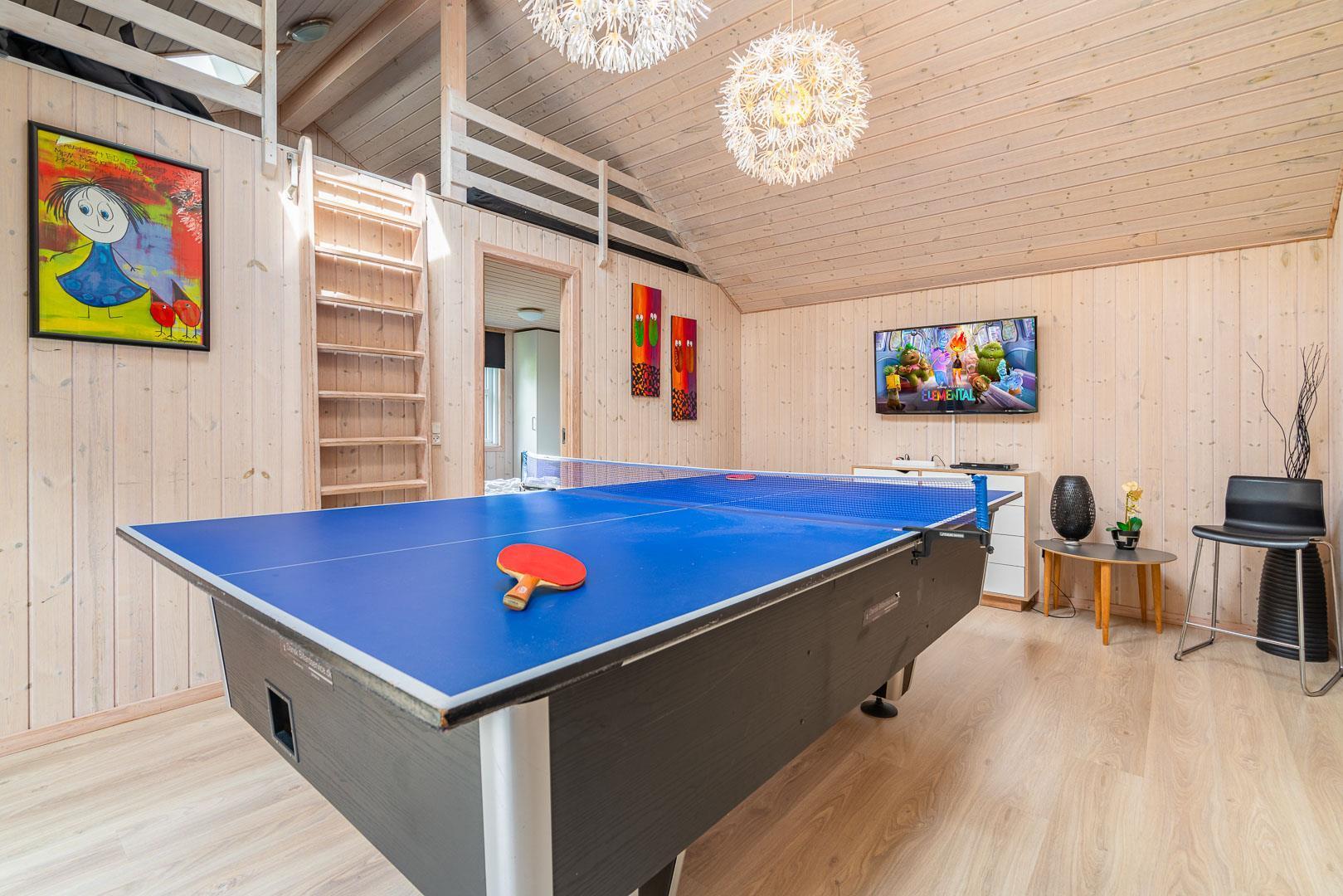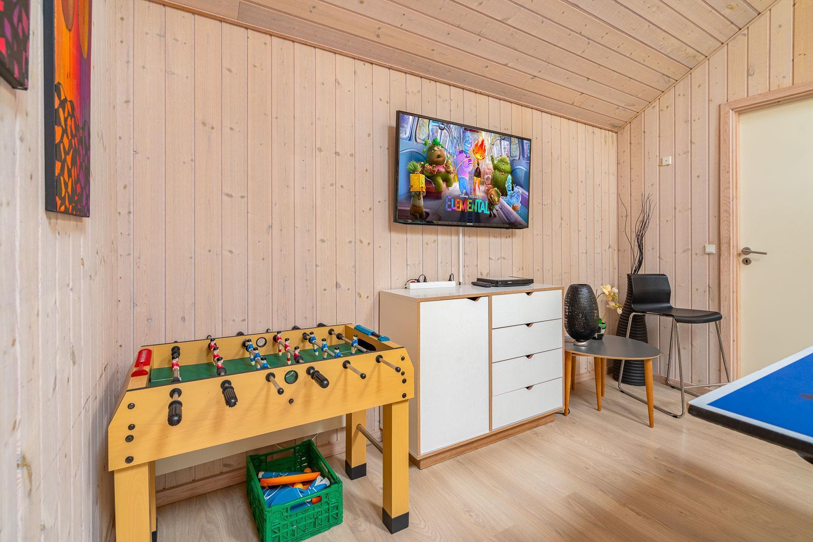 Von der Küche/Wohnzimmer gibt es einen Zugang zum Aktivitätsraum des Hauses mit Pool-Billard, Dart und Tischtennis.