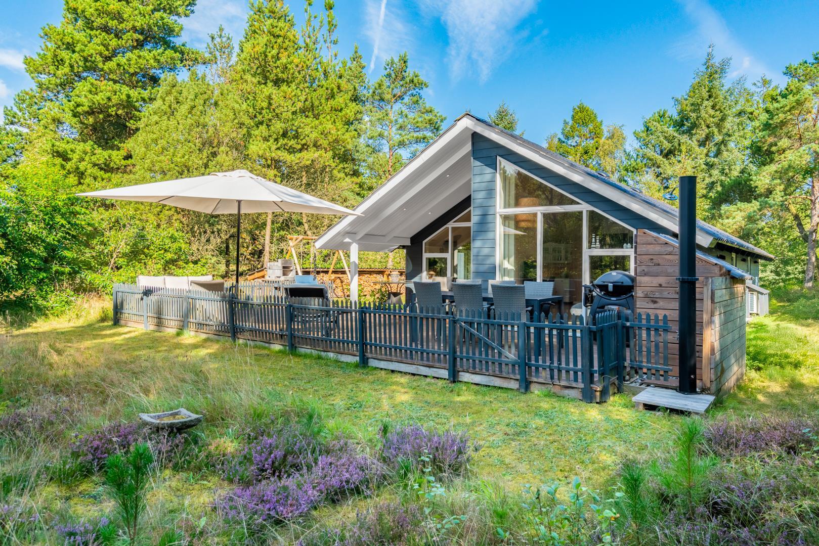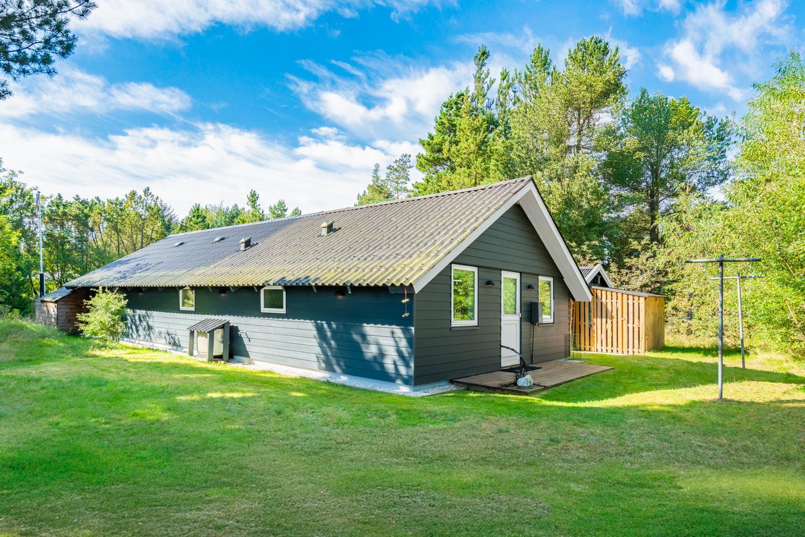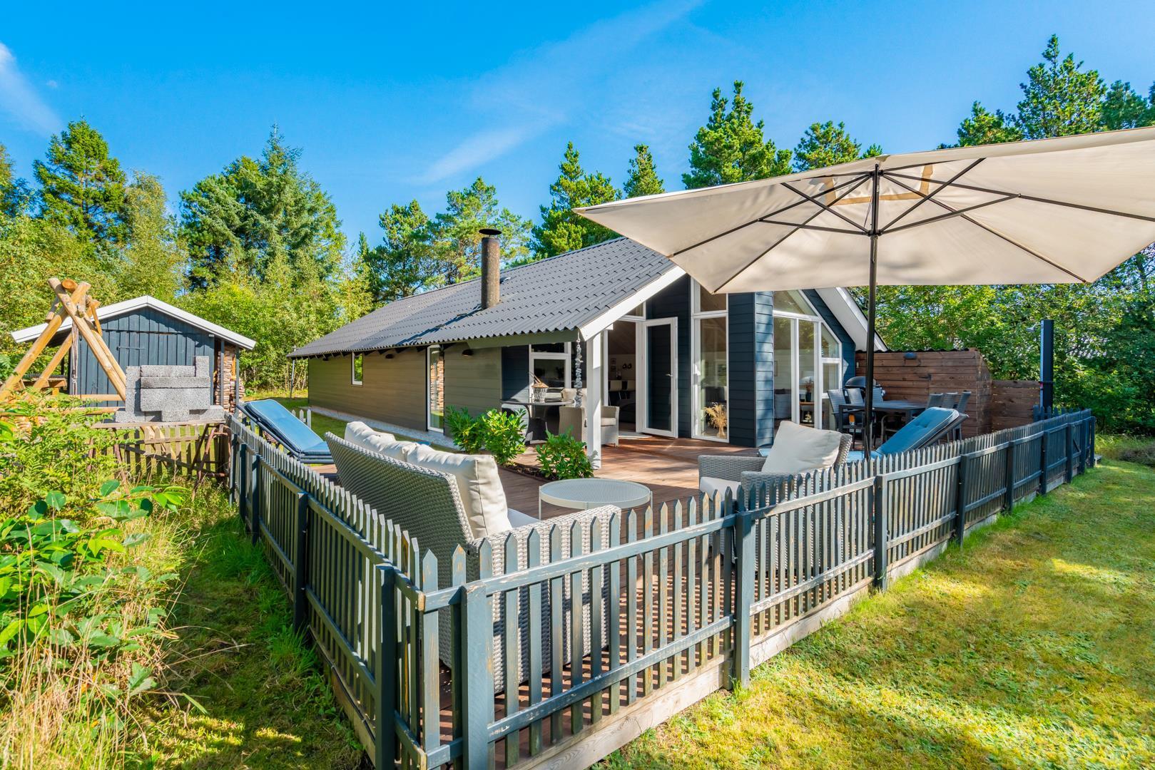 Das Ferienhaus liegt auf einem großzügigen, grünen Grundstück, das vollständig eingezäunt ist und damit Sicherheit und Ruhe zugleich bietet. Auf der überdachten Terrasse könnt ihr den Tag entspannt beginnen oder am Abend bei einem Glas Wein ausklingen lassen. Kinder haben im Garten viel Platz zum Spielen und freuen sich über die Schaukel, während sich euer Hund frei bewegen kann. Ein besonderes Extra ist die Außendusche, die nach einem Bad in der Nordsee oder einem langen Strandtag für Erfrischung sorgt.