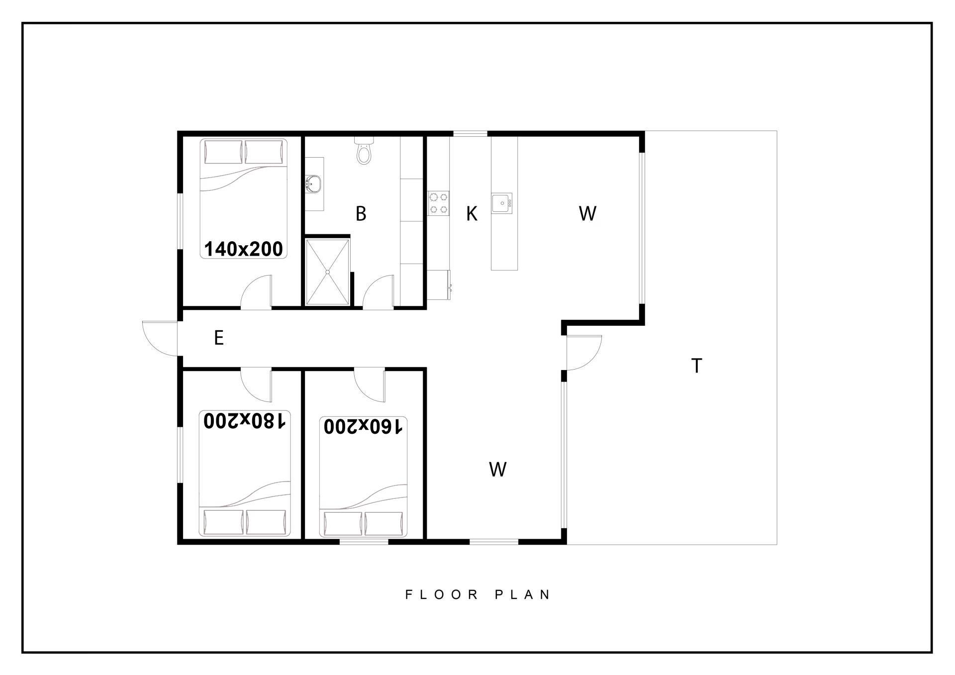 Bettengrösse: 1 Doppelbett 180 x 200 cm + 1 Doppelbett 160 x 200 cm + 1 Doppelbett 140 x 200 cm.