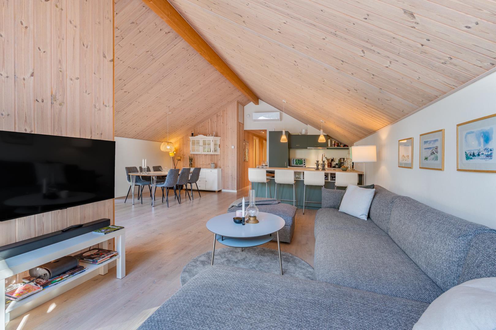 Die Küche ist modern ausgestattet und direkt in den Wohnraum integriert, sodass gemeinsames Kochen und gesellige Abende nahtlos ineinander übergehen. Spülmaschine, Waschmaschine und Trockner erleichtern den Alltag und geben euch mehr Zeit für die schönen Seiten des Urlaubs. Insgesamt 3 Schlafzimmer bieten Raum für erholsame Nächte, während das Badezimmer mit Fußbodenheizung zusätzlichen Komfort verspricht.
