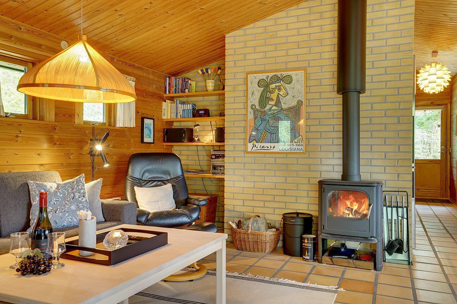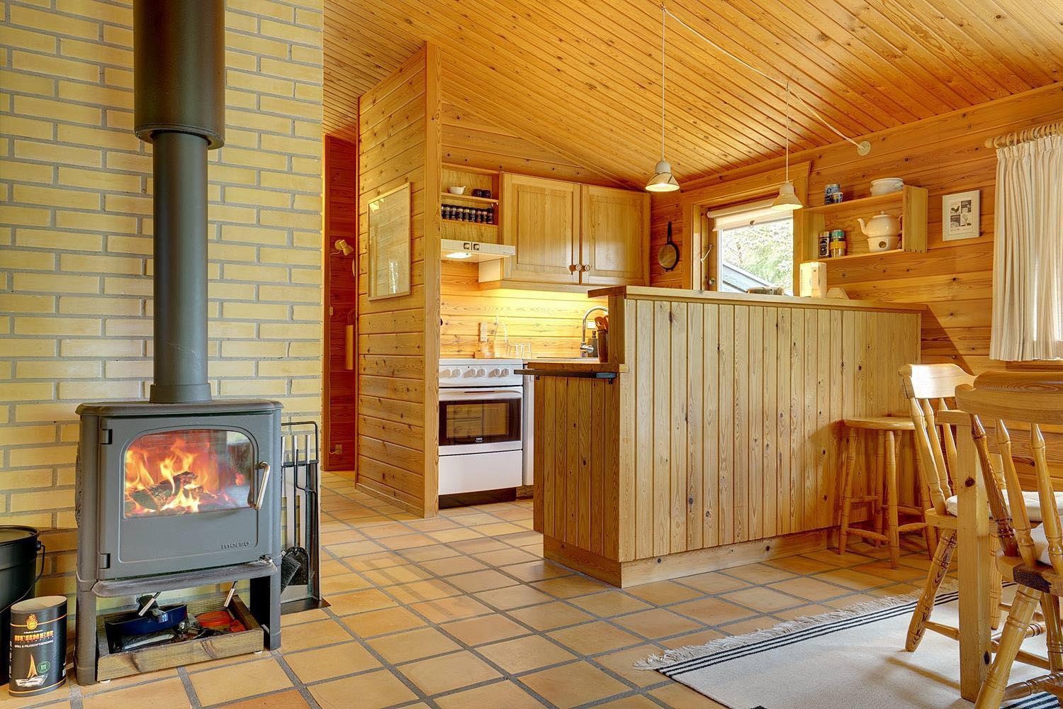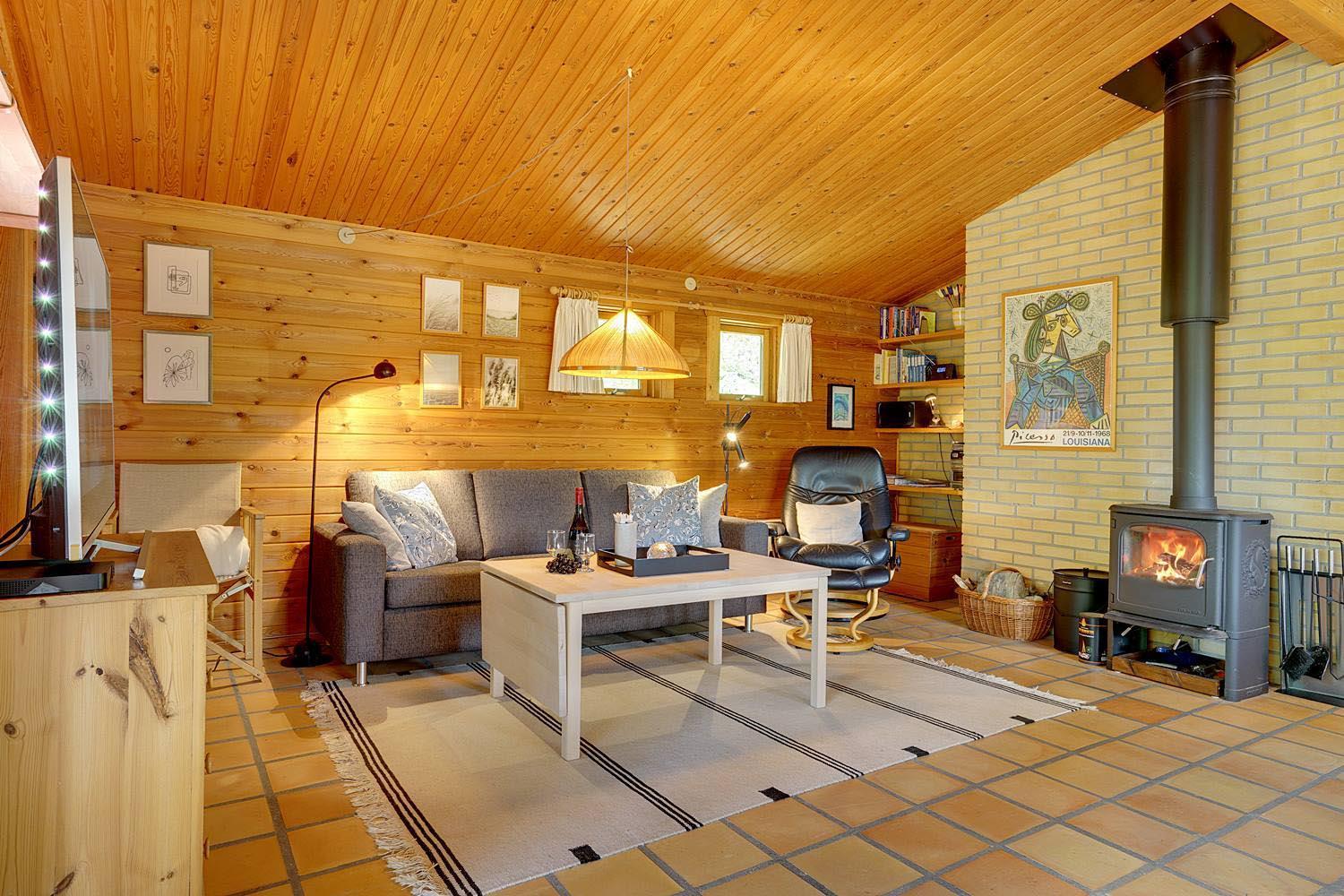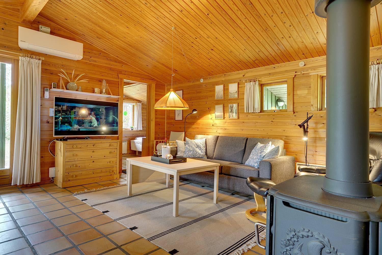 Mit dem charmanten Stil und den sichtbaren Balken, kombiniert mit bequemen Möbeln und Holzofen, finden Sie hier genau die richtige Ferienhausatmosphäre. Außerdem ist ein Fernseher mit Chromecast vorhanden.