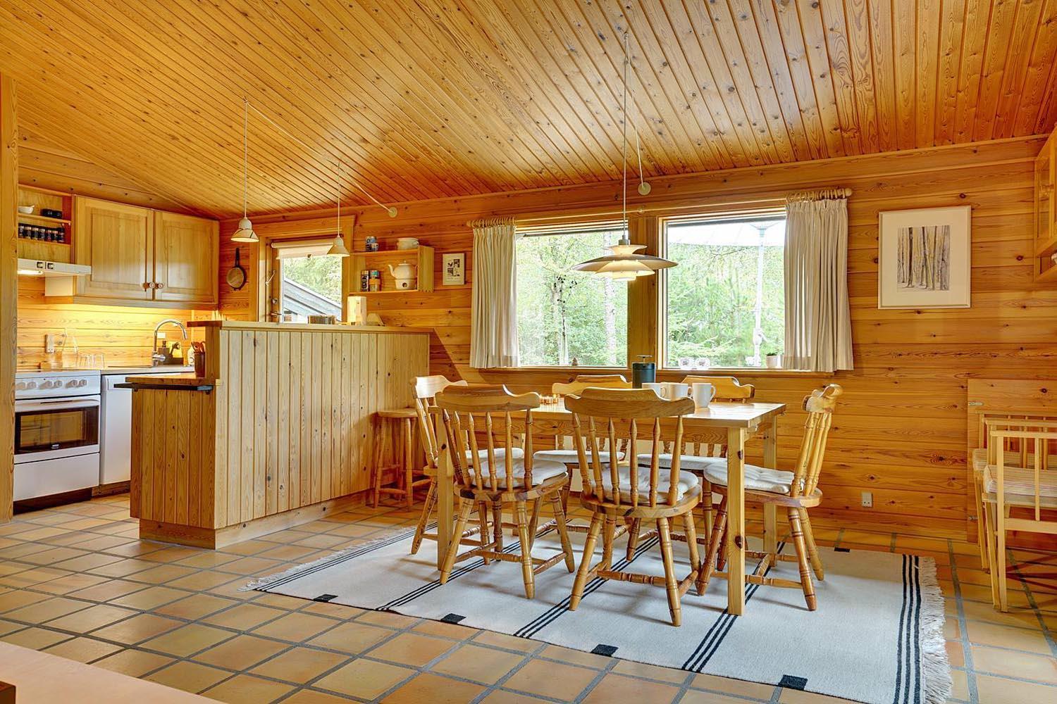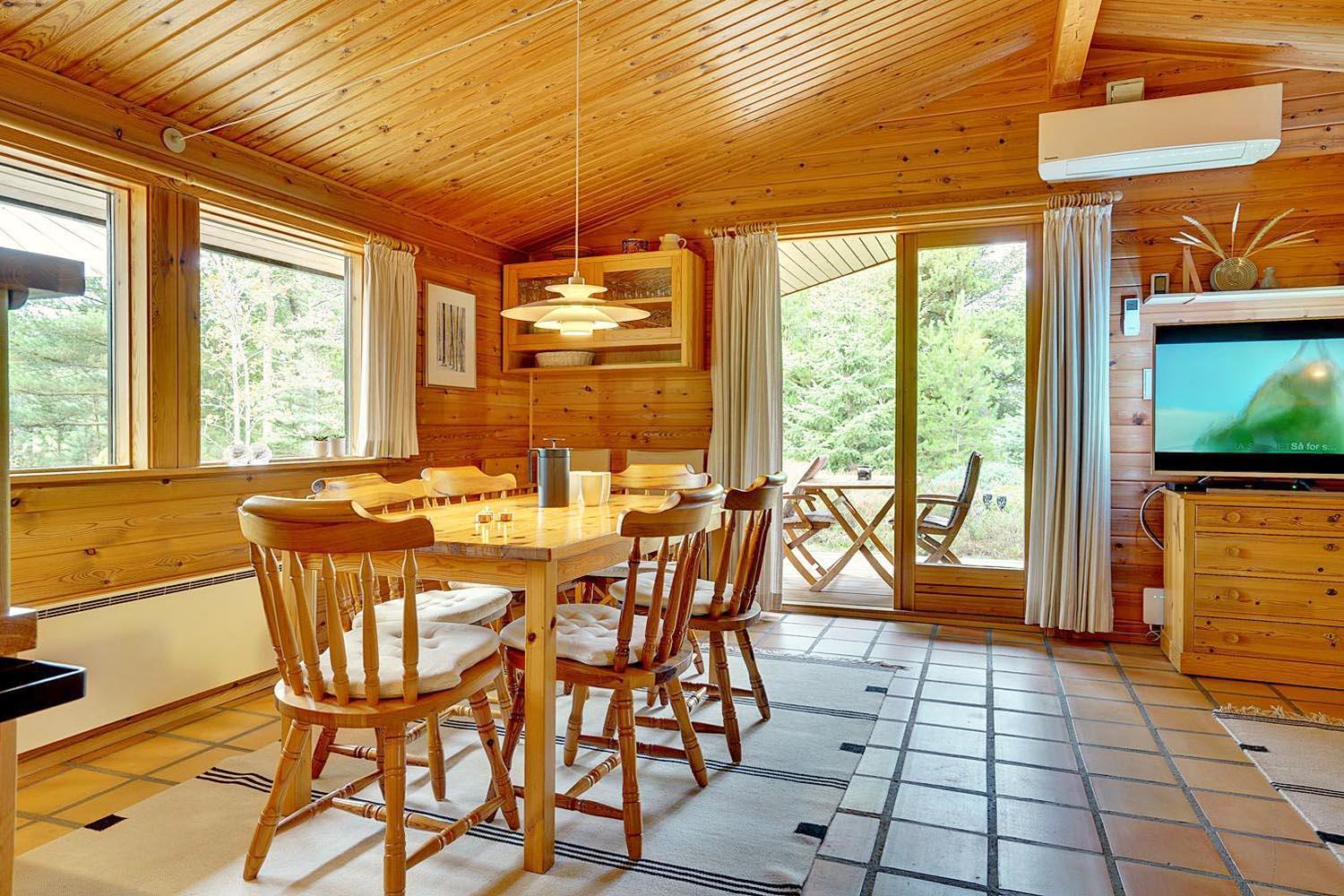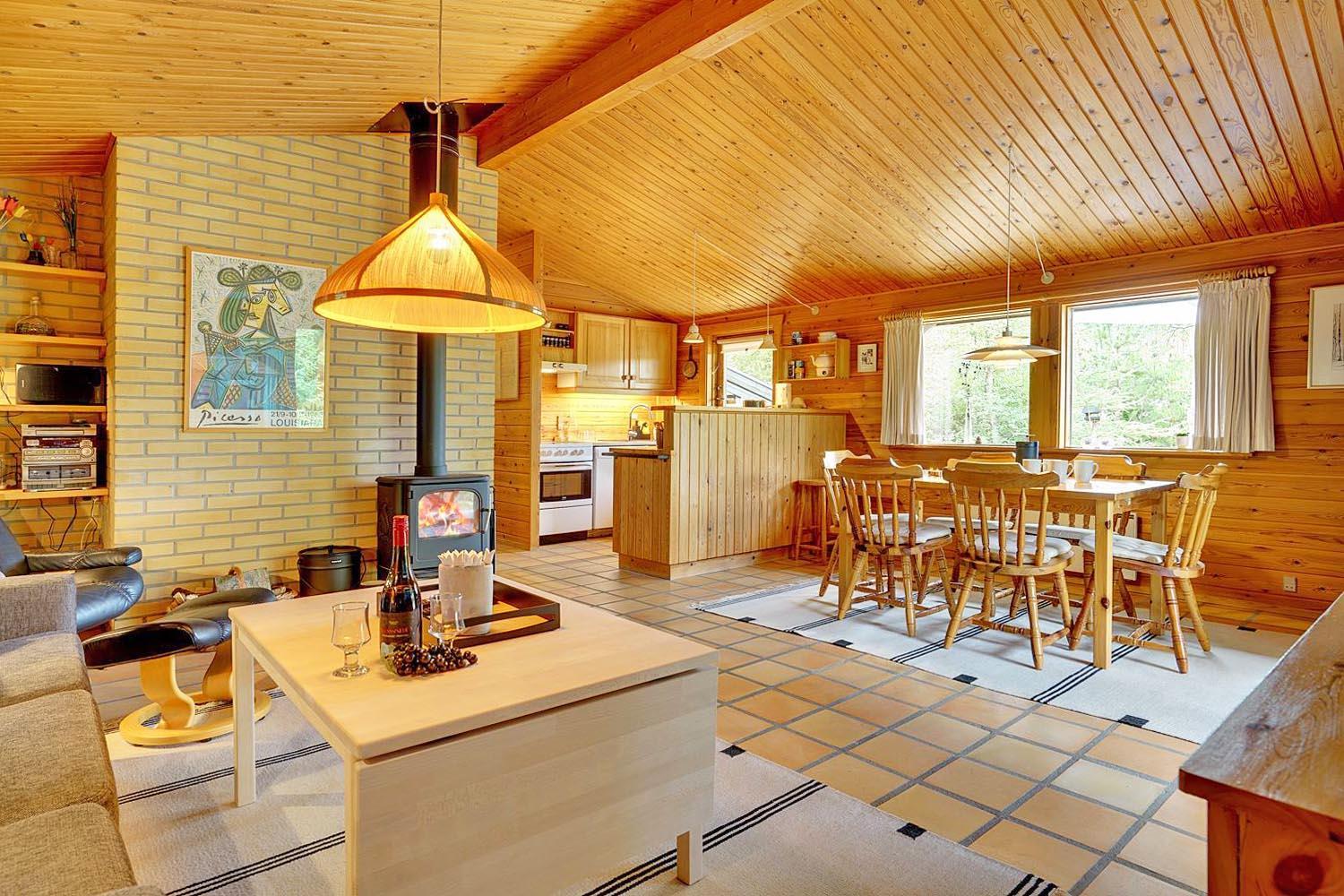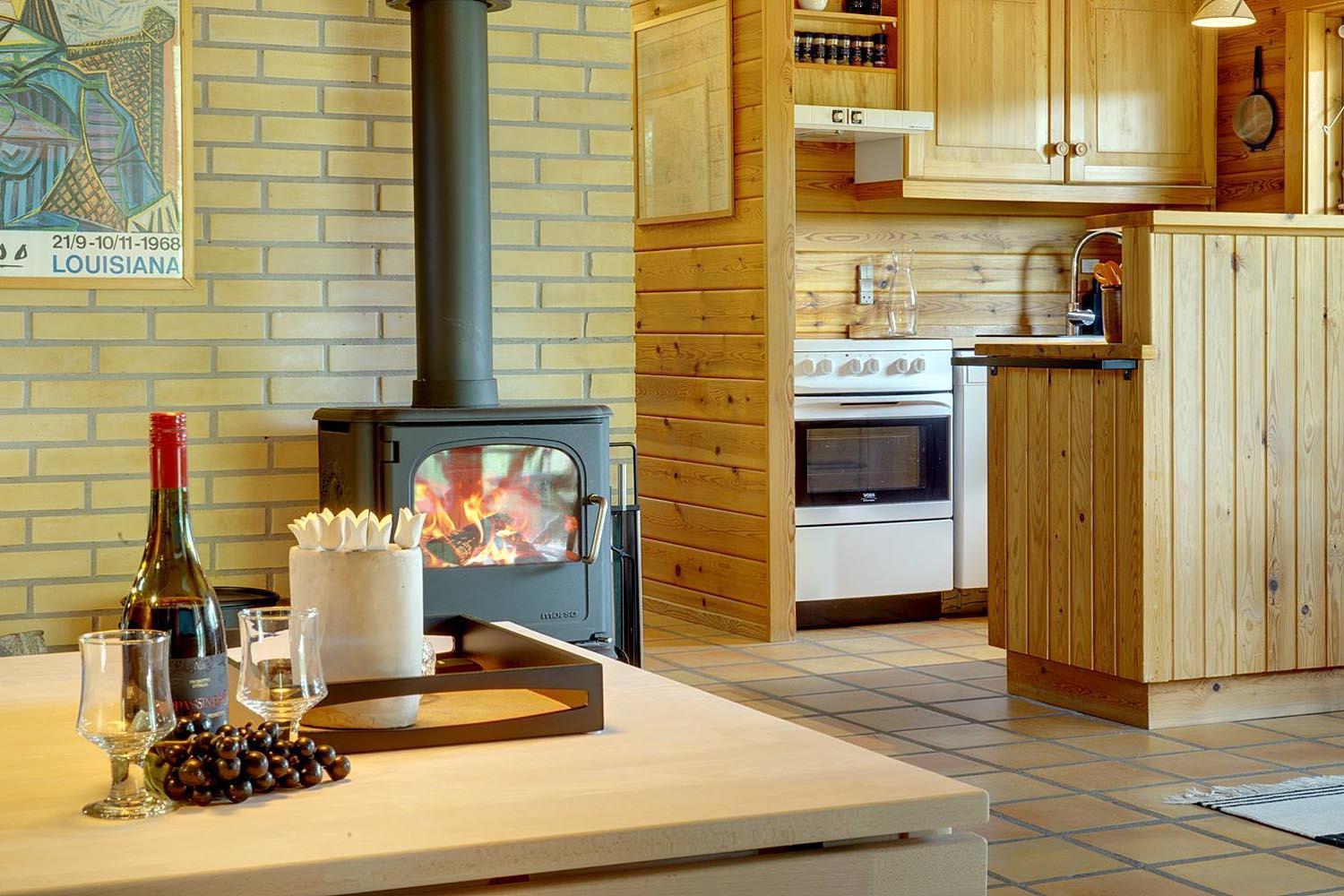Mit dem charmanten Stil und den sichtbaren Balken, kombiniert mit bequemen Möbeln und Holzofen, finden Sie hier genau die richtige Ferienhausatmosphäre. Außerdem ist ein Fernseher mit Chromecast vorhanden.