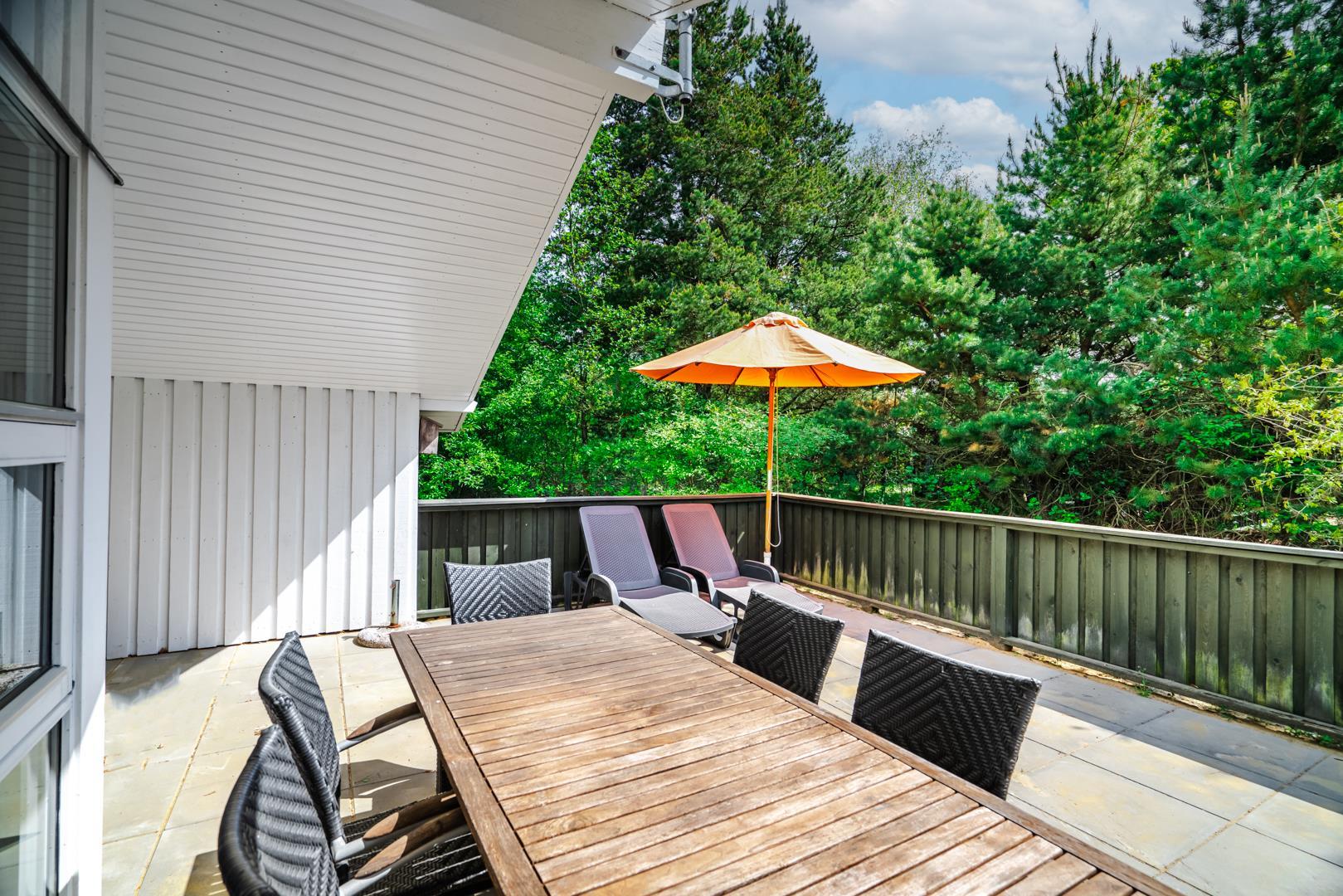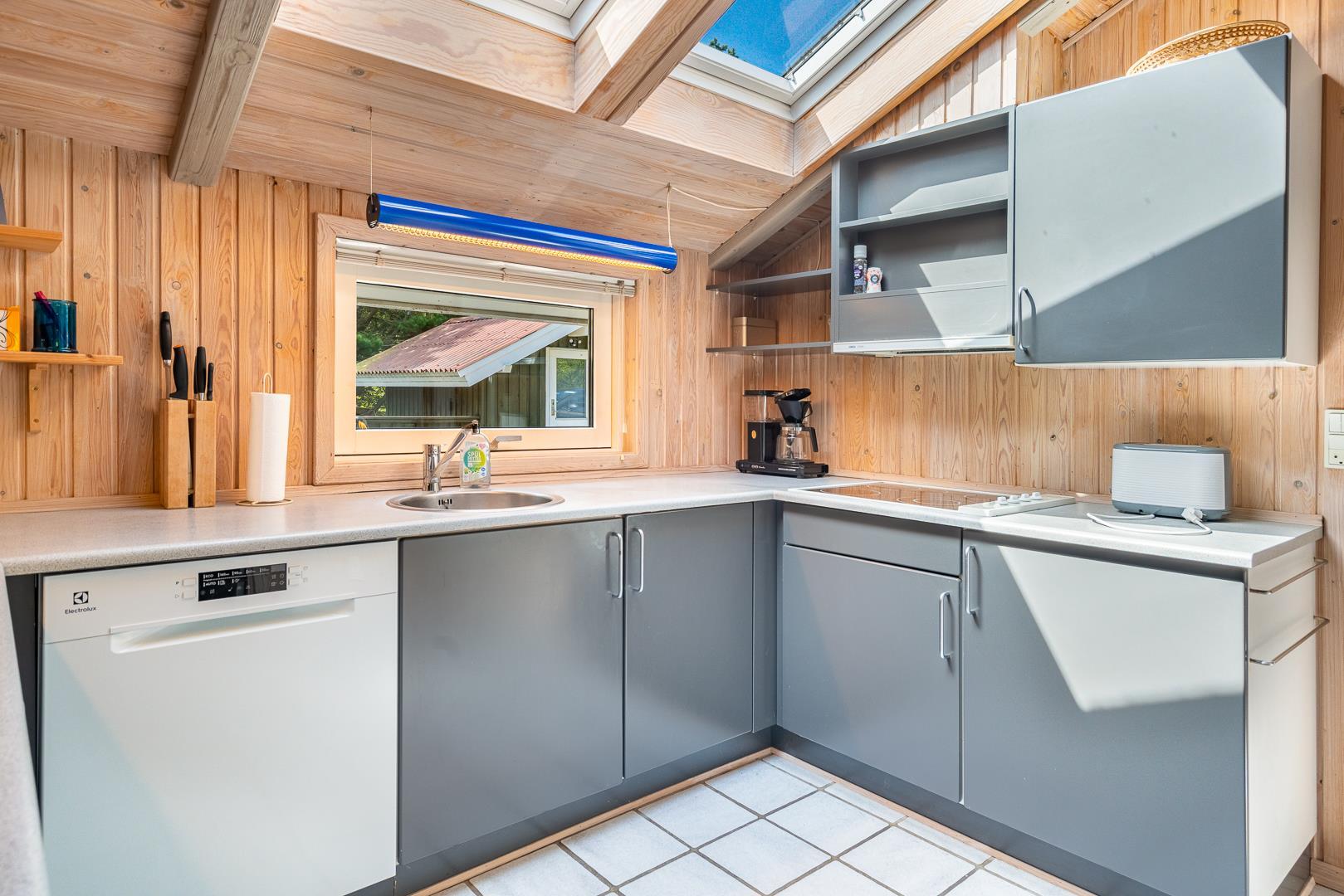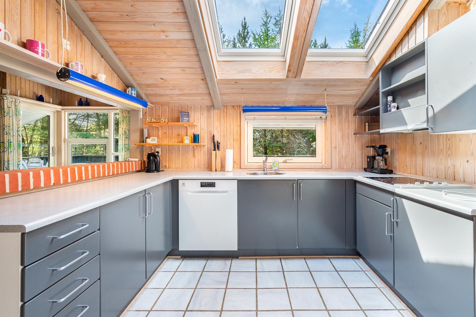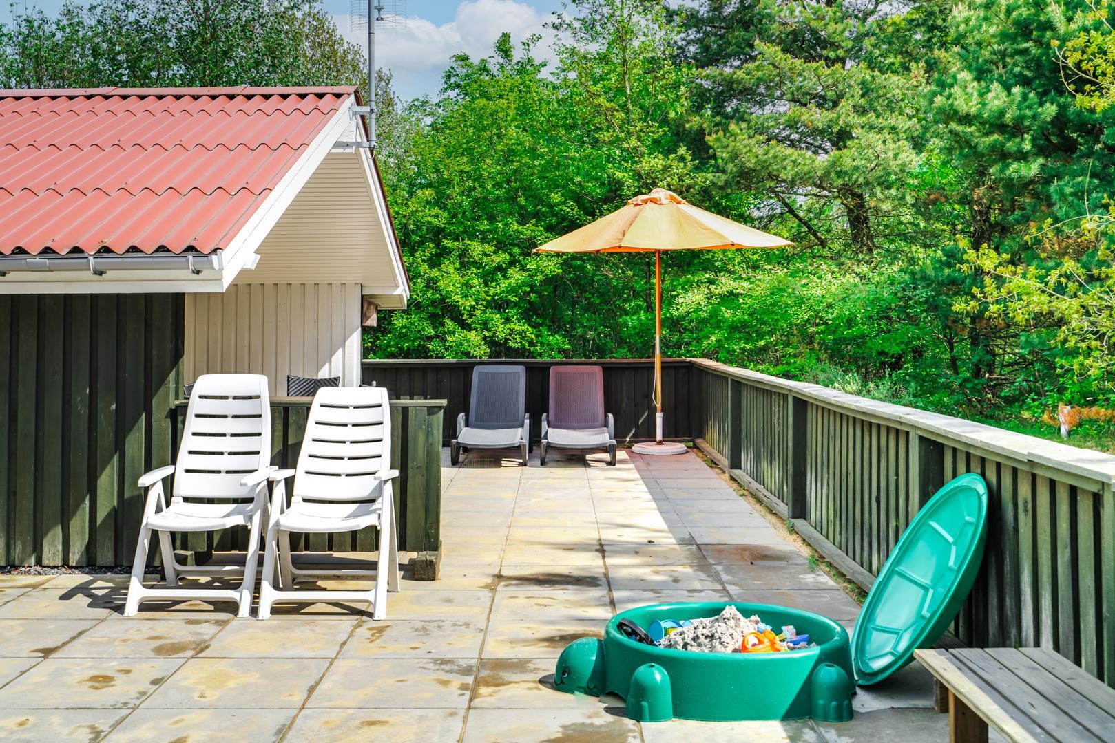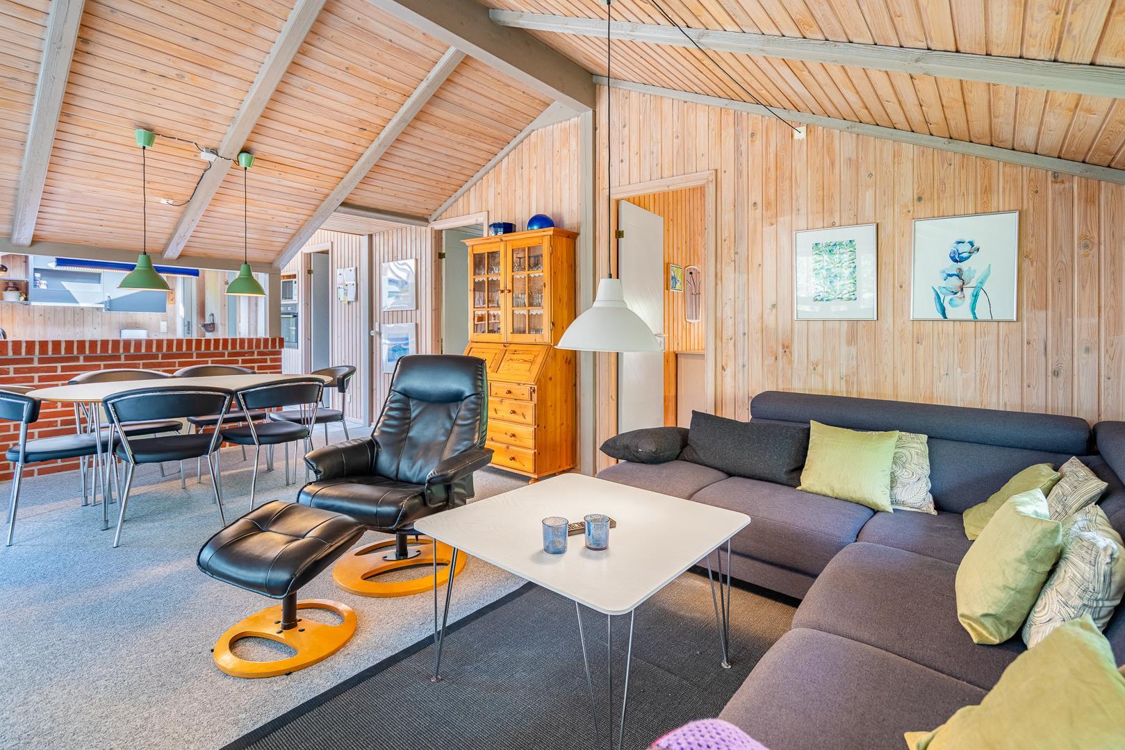 Auf einem schönem Grundstück auf 3000 m2 - mit eingezäunter und überdachter Terrasse, liegt dieses gut gepflegte Ferienhaus mit Platz für 6 Personen. Die Einrichtung ist hell und freundlich. Praktischer Hauswirtschaftsraum mit Waschmaschine und Trockner. Funktionelle Küche mit Dachfenster, Spülmaschine, Mikrowelle und extra Gefrierschrank mit 50 L.