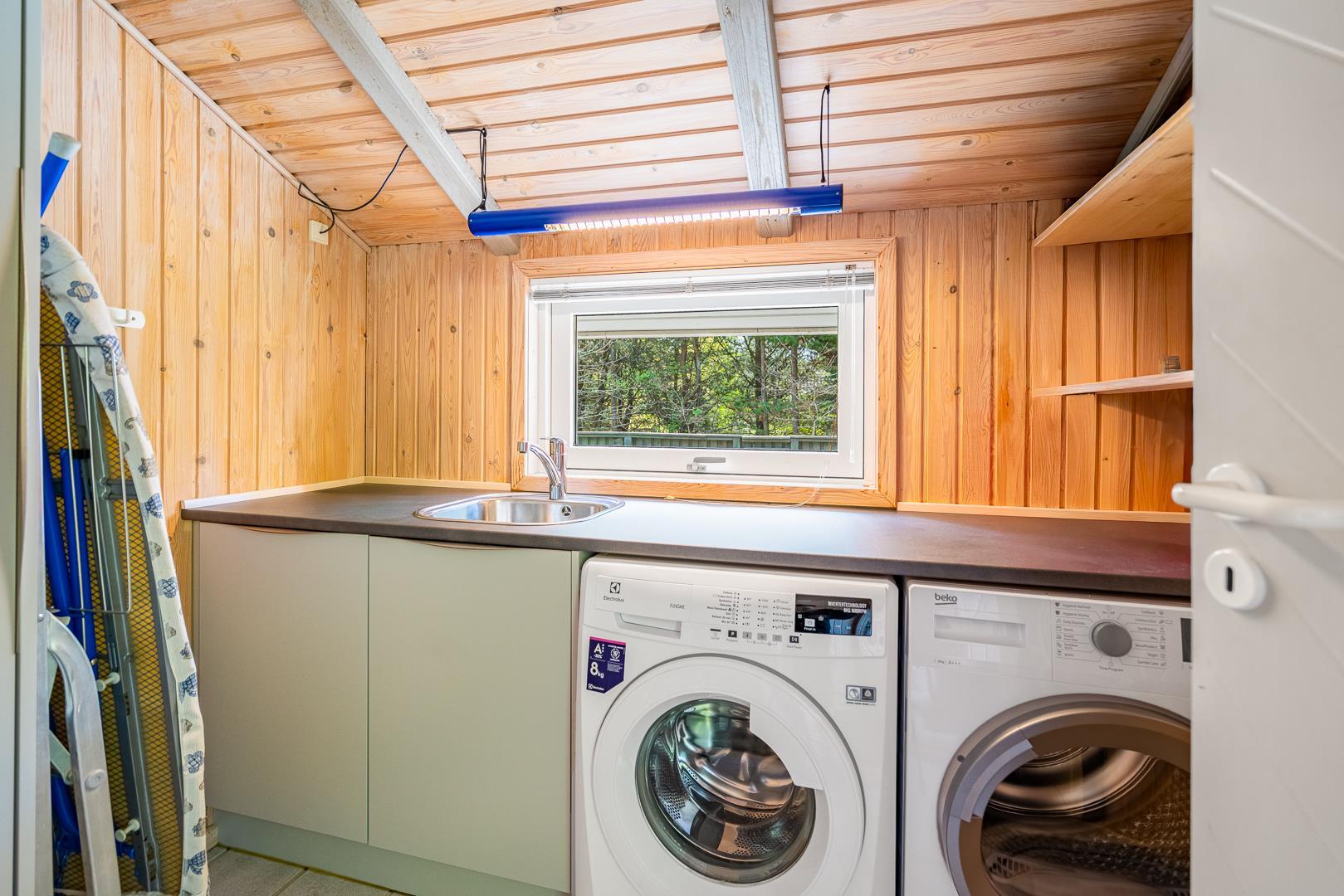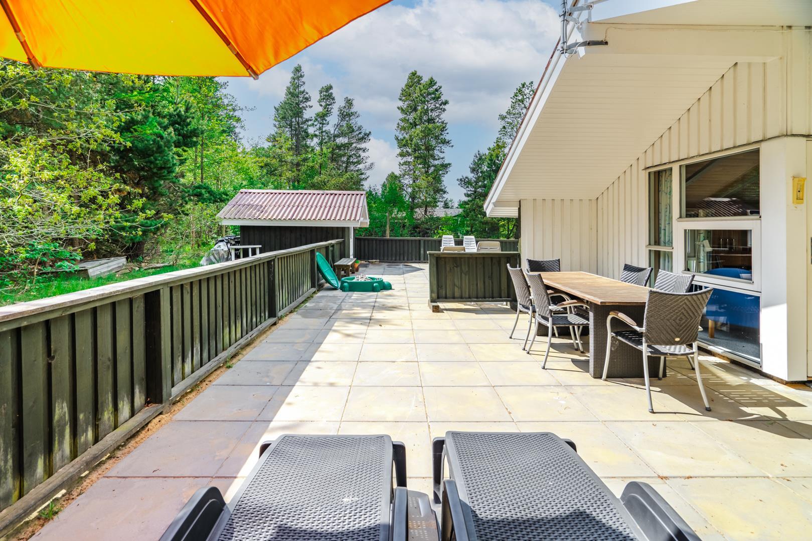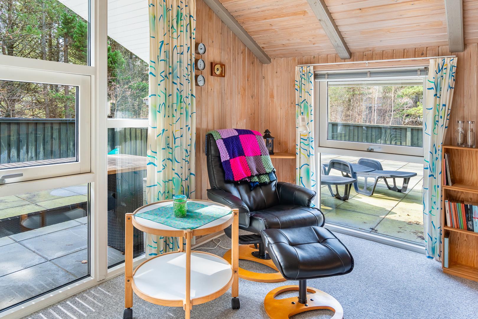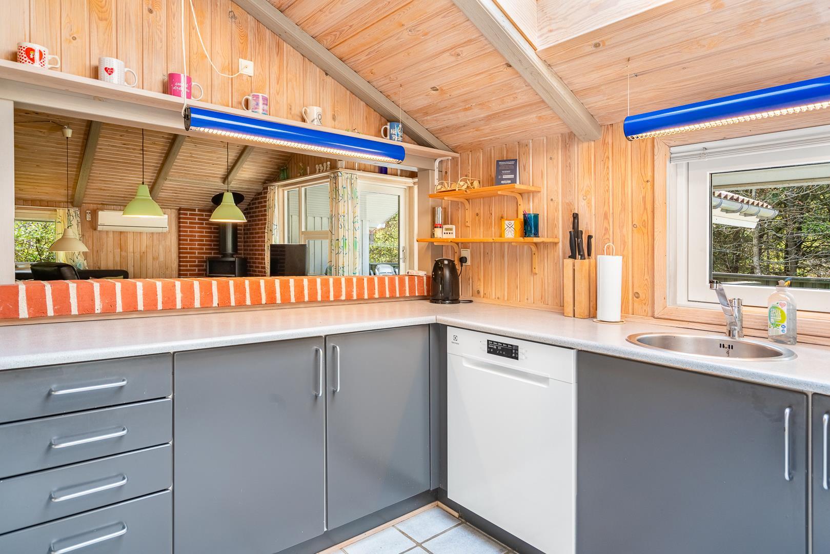Auf einem schönem Grundstück auf 3000 m2 - mit eingezäunter und überdachter Terrasse, liegt dieses gut gepflegte Ferienhaus mit Platz für 6 Personen. Die Einrichtung ist hell und freundlich. Praktischer Hauswirtschaftsraum mit Waschmaschine und Trockner. Funktionelle Küche mit Dachfenster, Spülmaschine, Mikrowelle und extra Gefrierschrank mit 50 L.