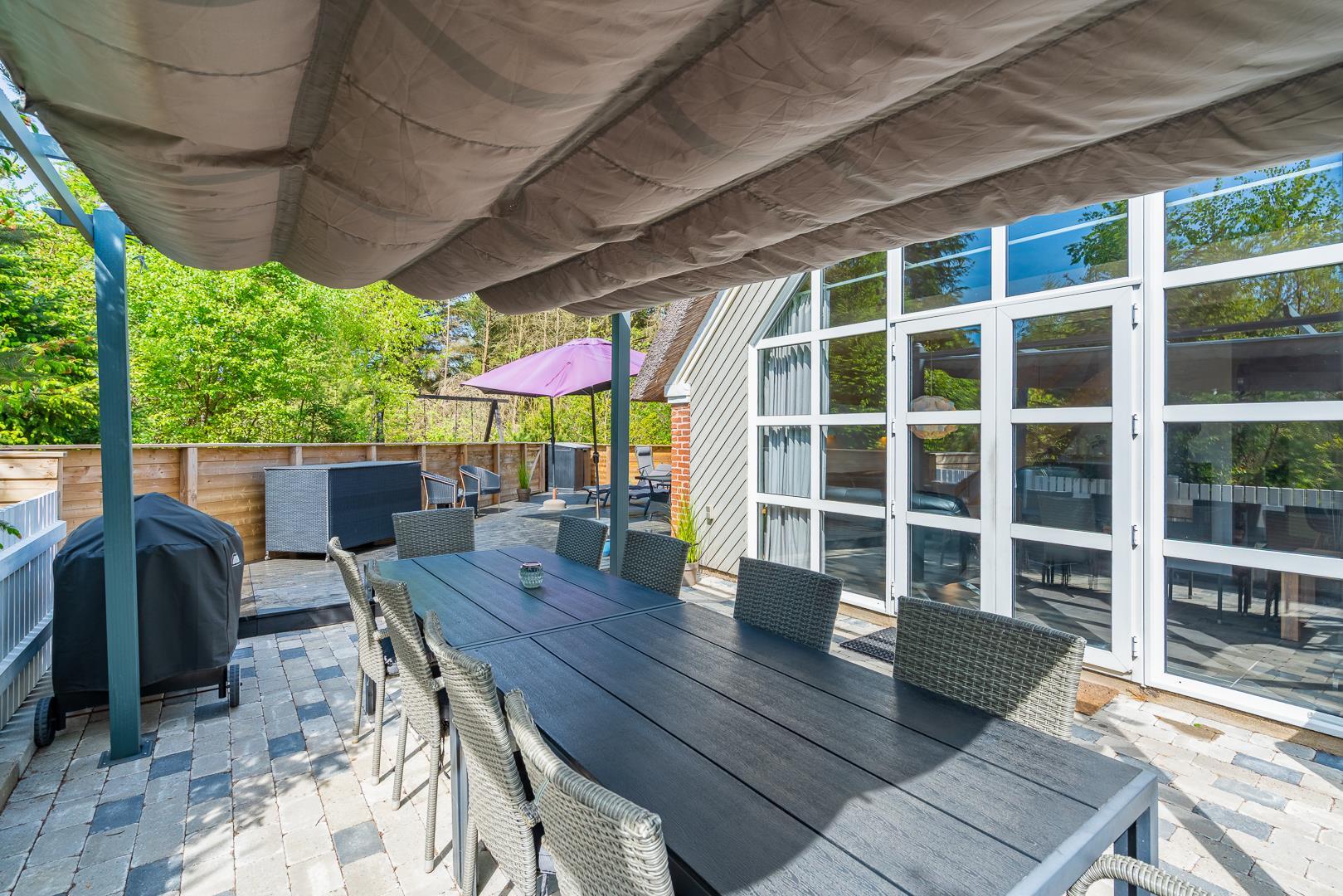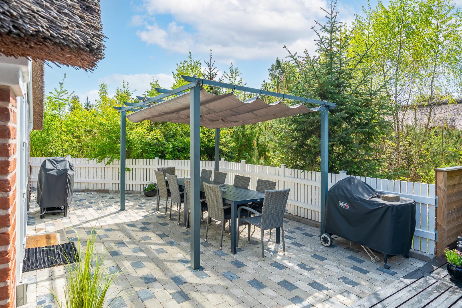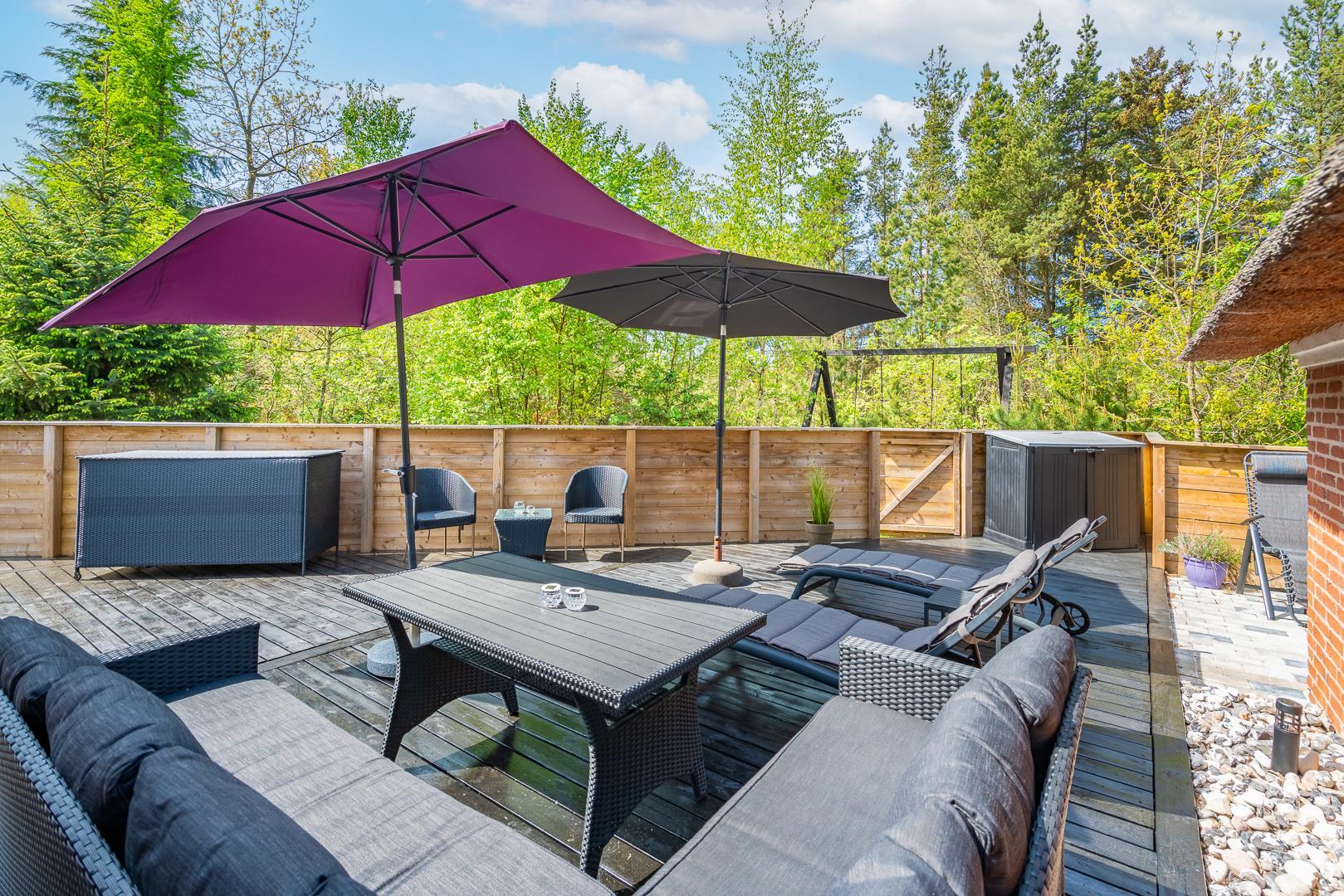 Ob ihr die Ruhe liebt, gerne draußen esst oder einfach gern mitten in der Natur seid – der Außenbereich dieses Ferienhauses bietet euch die perfekte Grundlage für euren Urlaub in Dänemark.