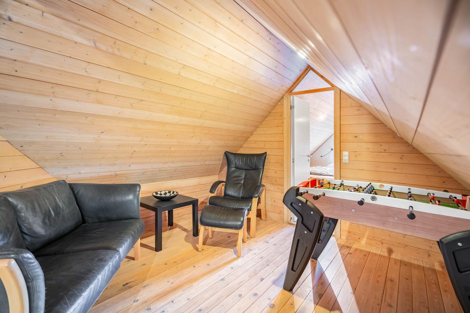 Im Mittelpunkt steht der großzügige Wohn- und Essbereich, der durch große Fenster viel Tageslicht bekommt und ein offenes, einladendes Wohngefühl schafft. Hier könnt ihr es euch am Kamin gemütlich machen, gemeinsame Mahlzeiten genießen oder einfach entspannen. Die moderne Küche ist vollständig ausgestattet – inklusive Spülmaschine – und bietet alles, was ihr für die Zubereitung leckerer Urlaubsgerichte braucht. Eine effiziente Wärmepumpe sorgt das ganze Jahr über für ein angenehmes Raumklima.