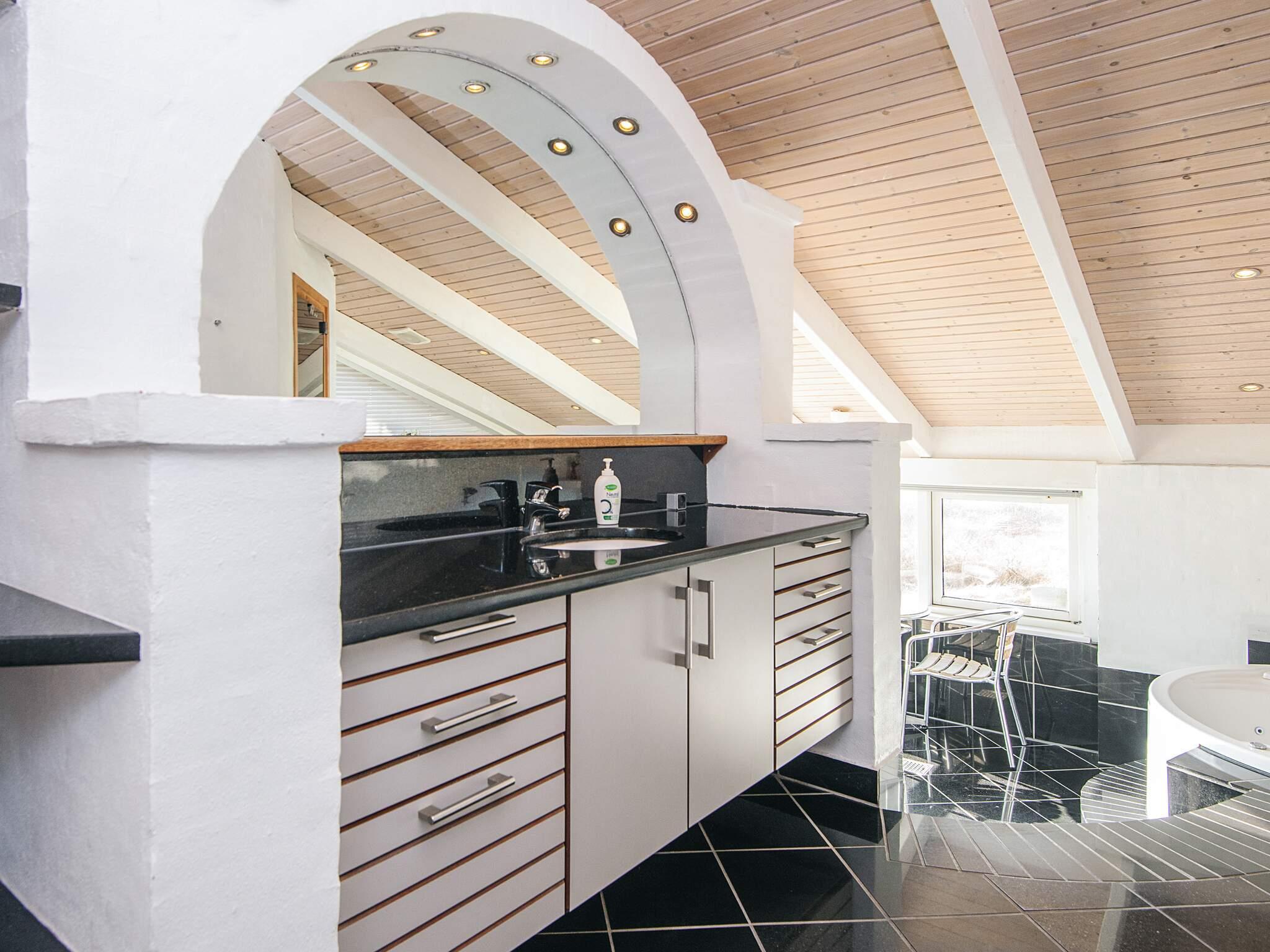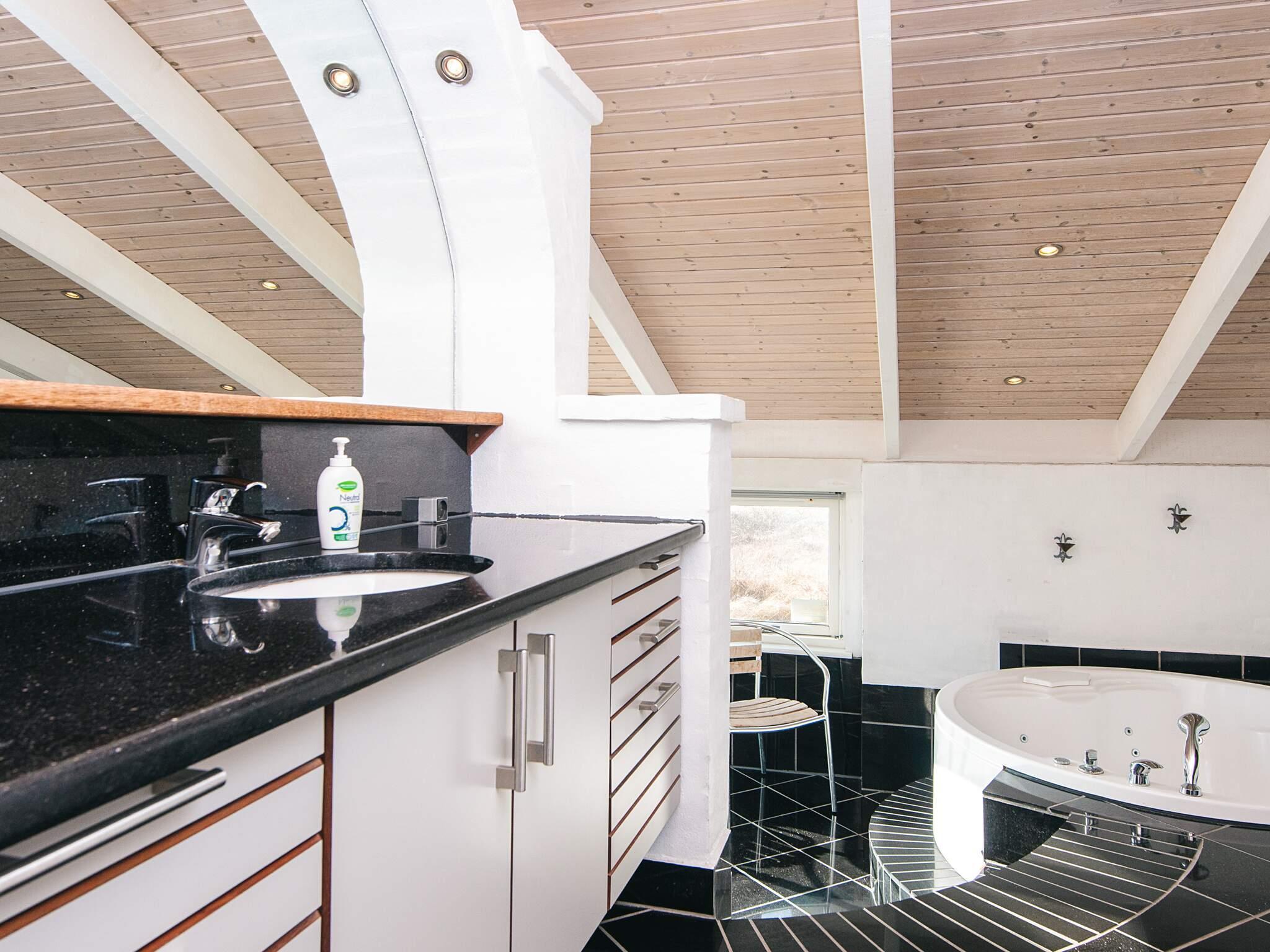 Dies ist ein hervorragendes Feriendomizil für eine oder zwei Familien, die gerne Urlaub in der Nähe der Nordsee verbringen möchten. Individuelles Design und qualitativ hochwertige Materialen kennzeichnen das Haus, das zum Wohlfühlen einlädt. Entspannen Sie z. B. im exklusiven Bad in leicht versetzter Ebene mit Marmorböden und beleuchtetem Whirlpool für bis zu vier Personen. Hier können Sie herrlich vergnügliche und entspannende Stunden verbringen. Das Haus ist gut und modern ausgestattet und hat u.a. einen DVD-Spieler und eine Dolby Surround-Anlage. Kinder freuen sich über einen extra Fernseher, Spielhäuschen, und Schaukel Freier Eintritt in den Søndervig Wasserpark