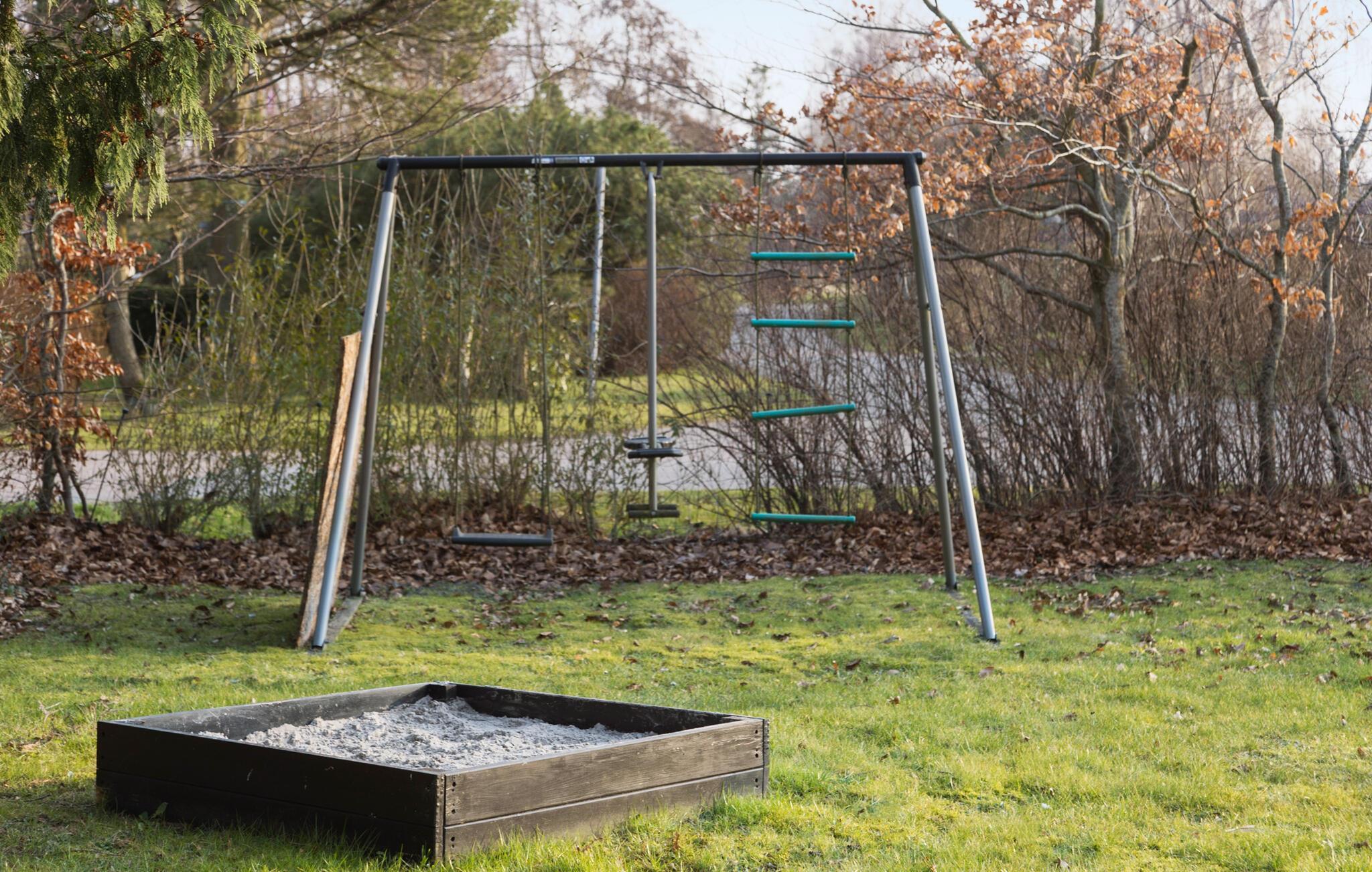 Verbringen Sie sonnige Stunden im Garten auf der großzügigen Holzterrasse, ausgestattet mit gemütlichen Sitzmöbeln, einem Grill und einem charmanten gläsernen Pavillon, in dem Sie windgeschützt zusammensitzen können. Lehnen Sie sich auf den Sonnenliegen zurück, während die Kinder im Sandkasten spielen, schaukeln oder sich auf der großzügigen Rasenfläche austoben.