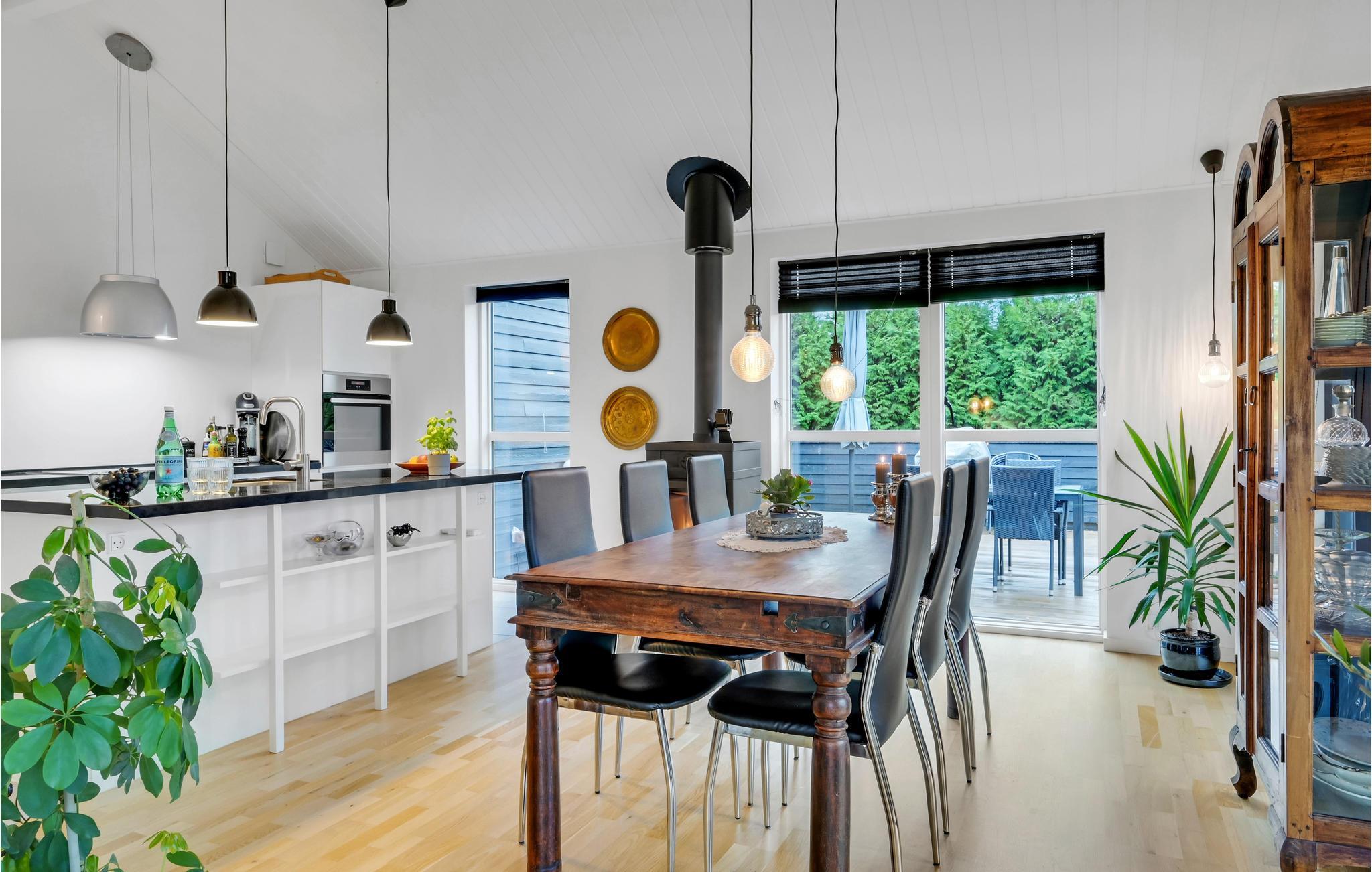 Im Sommer können Sie sich auf die große Terrasse zurückziehen und die Mahlzeiten im Freien genießen. Die Terrasse bietet auch einen wunderbaren Ort für den Morgenkaffee. Zum Haus gehört auch ein eingezäunter Garten, wo Ihre Kinder reichlich Platz zum Spielen vorfinden. Vom Haus aus erreichen Sie in wenigen Minuten den Fjord, wo Sie schwimmen gehen können.