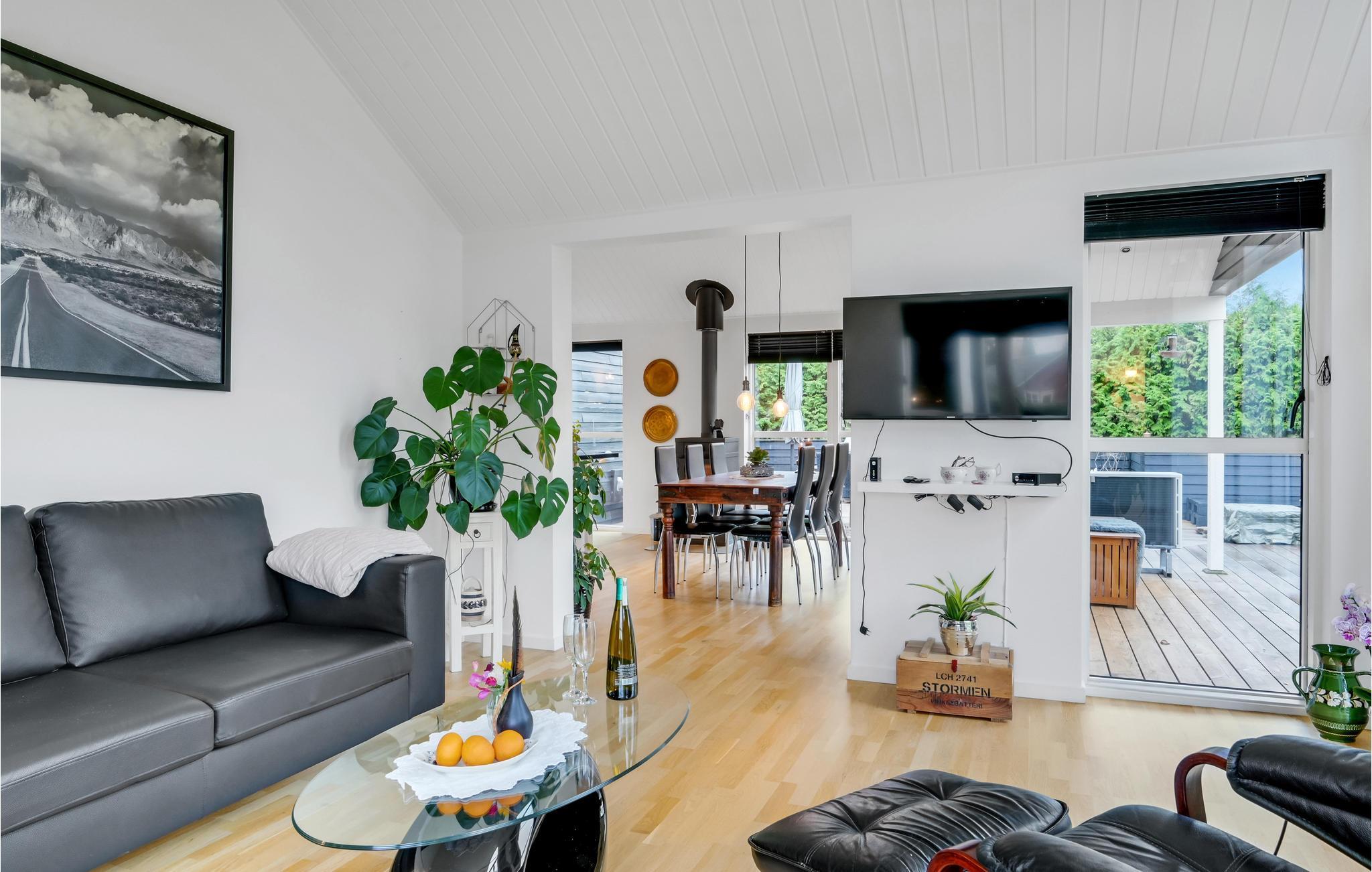 Dieses großartige, moderne Holzhaus lädt Sie zu einem entspannenden und komfortablen Urlaub nah an Natur und Fjord ein. Im großen, hell eingerichteten Wohnzimmer können Sie sich es in den Polstermöbeln bequem machen und sich in der gut ausgestatteten Küche kulinarisch entfalten, ohne die Gesellschaft der übrigen Gäste entbehren zu müssen.