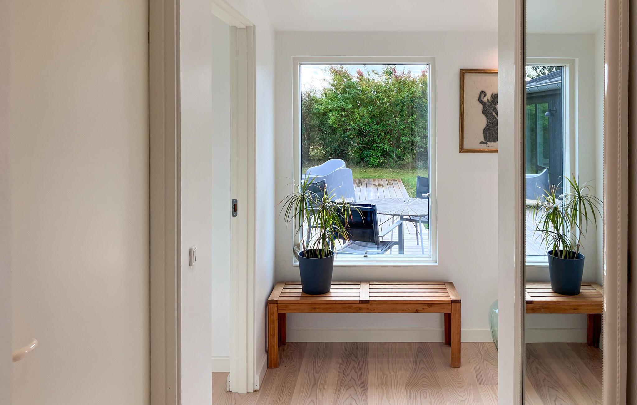 Modernes Ferienhaus mit Fjordblick, großer Terrasse und Garten in ruhiger Lage am Isefjord.