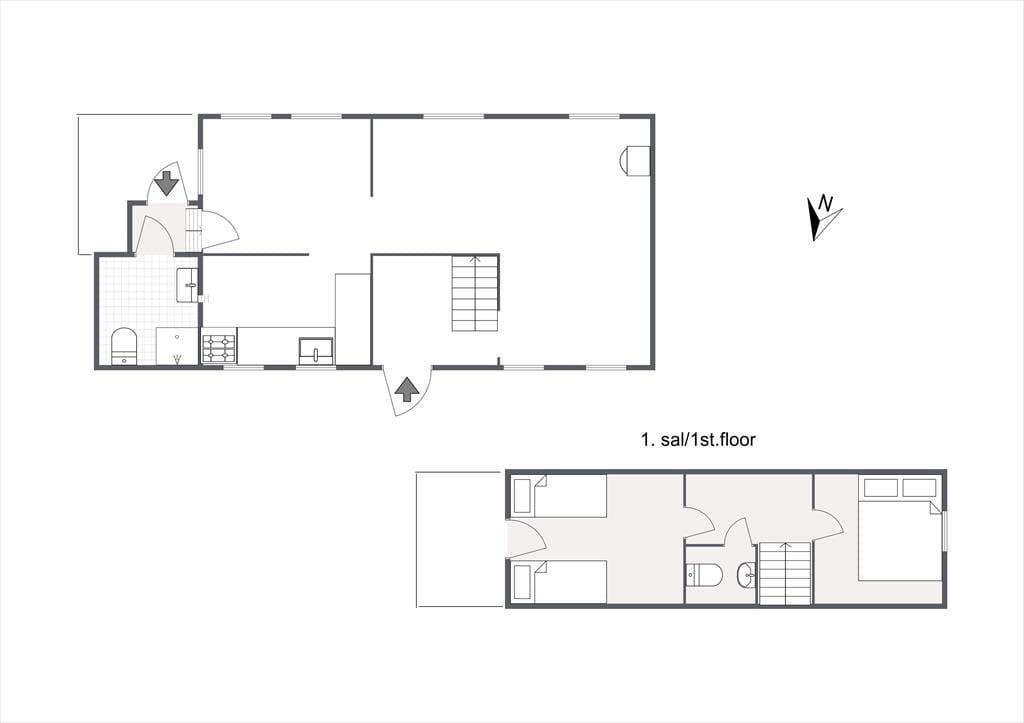 Das Ferienhaus bietet im Obergeschoss zwei Schlafzimmer sowie ein Gäste-WC. Im Erdgeschoss hingegen befinden sich ein Wohnzimmer, eine separate Küche und ein Badezimmer. Das Ferienhaus liegt an einem speziellen Ort mit Blick über den Fjord. Die Aussicht kann aus dem Haus, sowie aus dem Garten, vom Balkon im Obergeschoss oder von einem der Sitzecken im und am Haus aus genossen werden.
