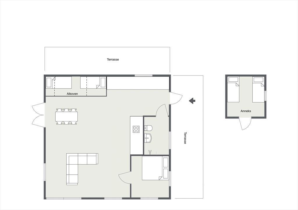Auf deinem Grundstück befindet sich darüber hinaus ein gemütliches Nebengebäude, das zwei zusätzliche Schlafplätze bietet.