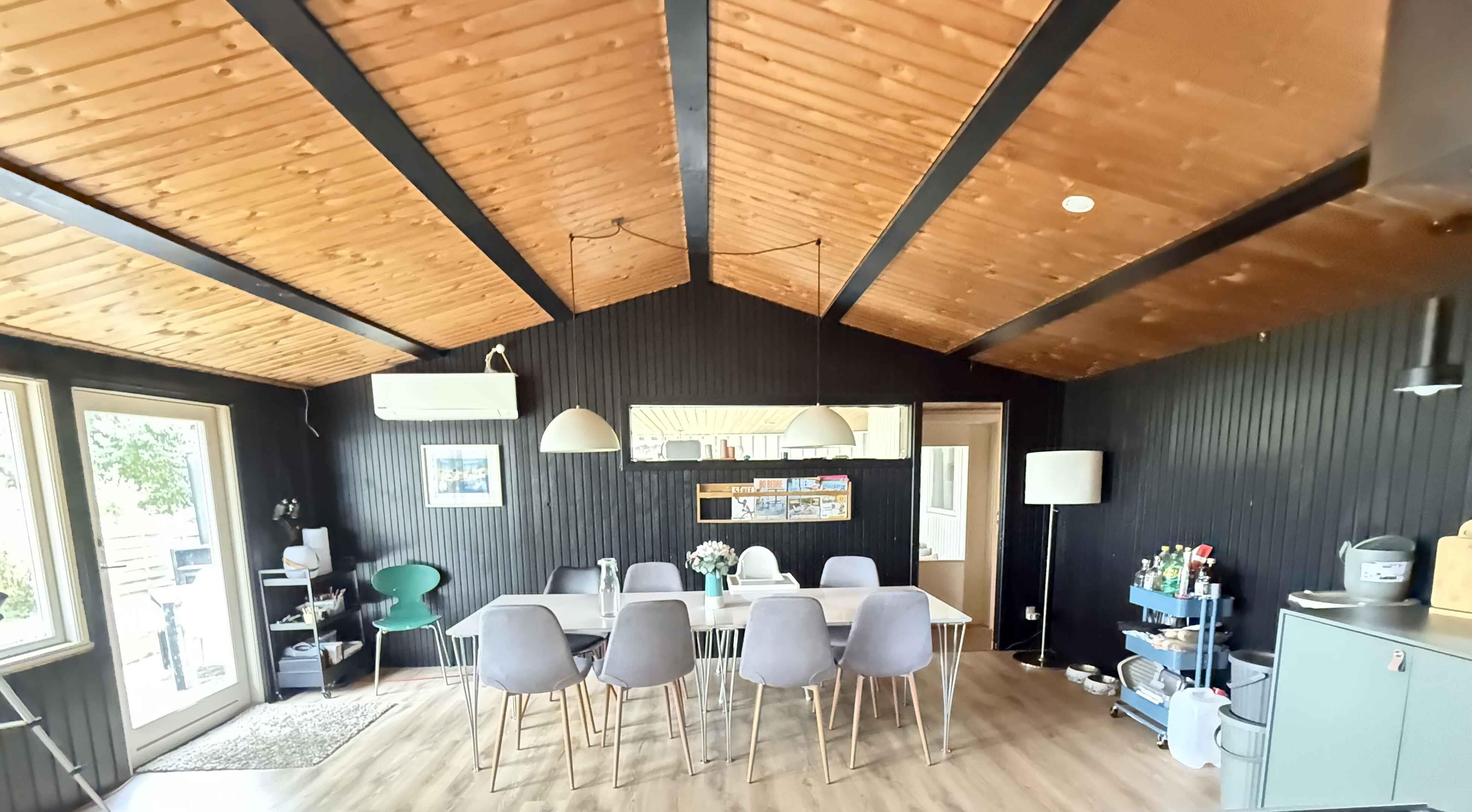 Dieses neu renovierte Ferienhaus mit 90 m² liegt in erster Reihe am Wasser und bietet direkten Blick auf den Fjord. Die Lage ist zentral, und Ruhe, Licht und Aussicht sind von morgens bis abends ein selbstverständlicher Teil des Aufenthalts. Das Haus verfügt über drei Schlafzimmer mit insgesamt sieben Schlafplätzen. Zwei Schlafzimmer befinden sich im Haupthaus, das dritte in einem separaten Nebengebäude, das zusätzliche Privatsphäre und Flexibilität für Familie oder Freunde bietet. Die Wohnbereiche sind hell und funktional gestaltet und laden zum Zusammensein ein – mit der Aussicht als ständigem Begleiter. Das renovierte Haus ist gepflegt und praktisch eingerichtet, egal ob der Urlaub der Erholung, gemeinsamen Mahlzeiten oder ruhigen Momenten mit Blick auf das Wasser dient. Die Umgebung ist geprägt von Fjord, Küste und offenen Landschaften. Das Wasser liegt direkt vor dem Haus und lädt zum Baden, Kajakfahren, Stand-Up-Paddling oder zu ruhigen Spaziergängen entlang der Küste ein. Ein Boot und ein Badesteg befinden sich 100 Meter entfernt. Die Region Jægerspris bietet das ganze Jahr über gute Rad- und Wanderwege, Waldgebiete und Naturerlebnisse. Nordskoven, der Schlosspark und die Küstenabschnitte bieten zahlreiche Ausflugsmöglichkeiten – ob aktiv oder entspannt. Einkaufsmöglichkeiten, Cafés und lokale Sehenswürdigkeiten sind leicht erreichbar. Kopenhagen liegt in überschaubarer Entfernung, was die Gegend sowohl für kurze Aufenthalte als auch für längere Urlaube attraktiv macht. Hier verbindet sich eine Lage am Wasser mit Komfort und Erlebnissen.