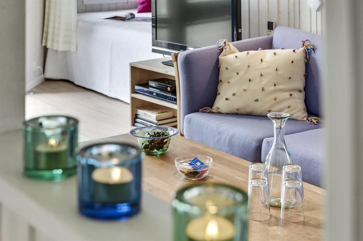 In der Ferienunterkunft gibt es einen Fernseher. Blu-ray-Player. DVD-Player. Mindestens 4 dänische Fernsehsender. 1-3 schwedische Fernsehsender. 1-3 norwegische Fernsehsender. 1-3 deutsche Fernsehsender. 1-3 englische Fernsehsender. Es steht kabellose Internetverbindung zur Verfügung.
