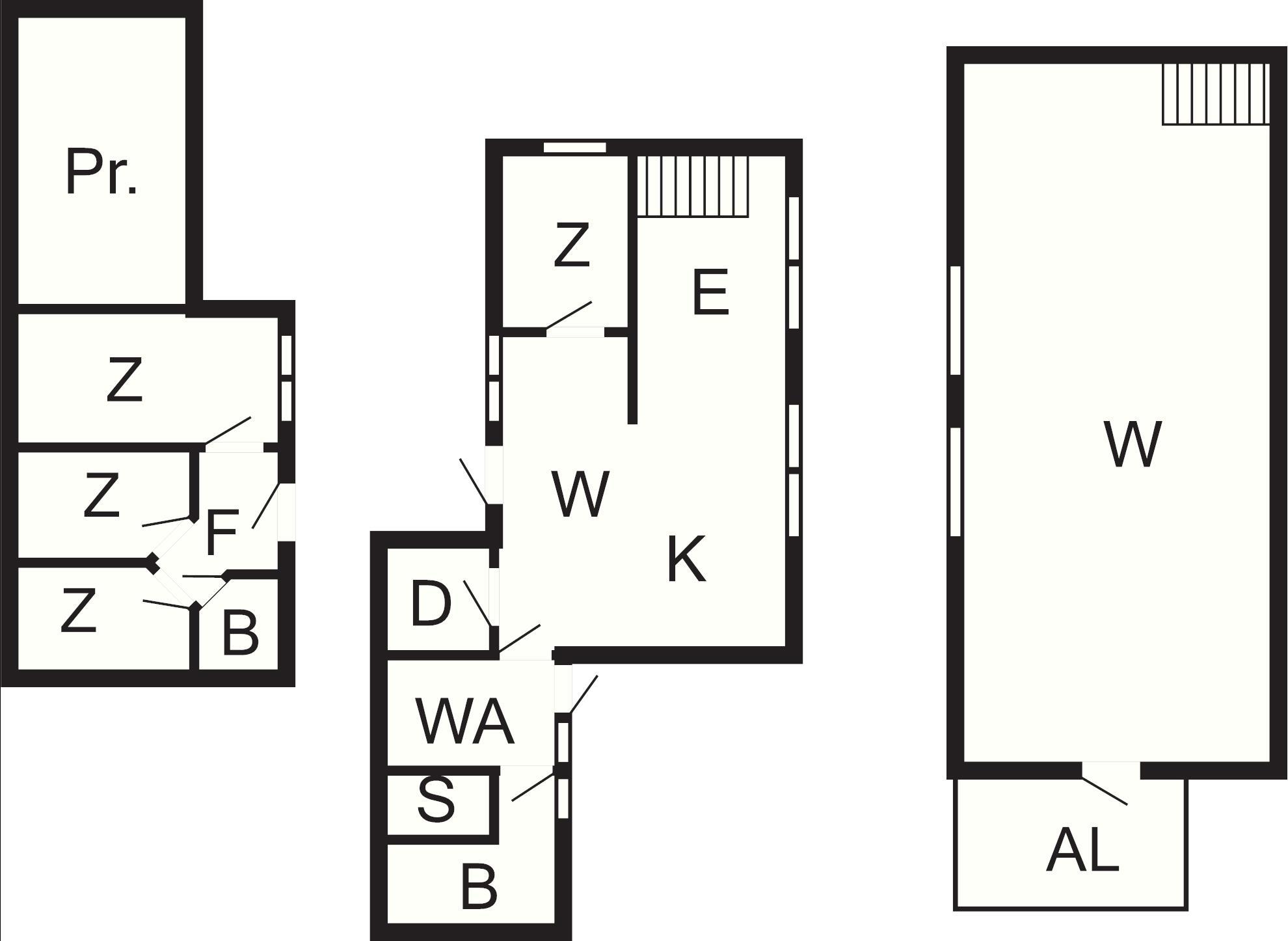 das aus zwei Abteilungen besteht: Das Haupthaus ist im Erdgeschoss mit