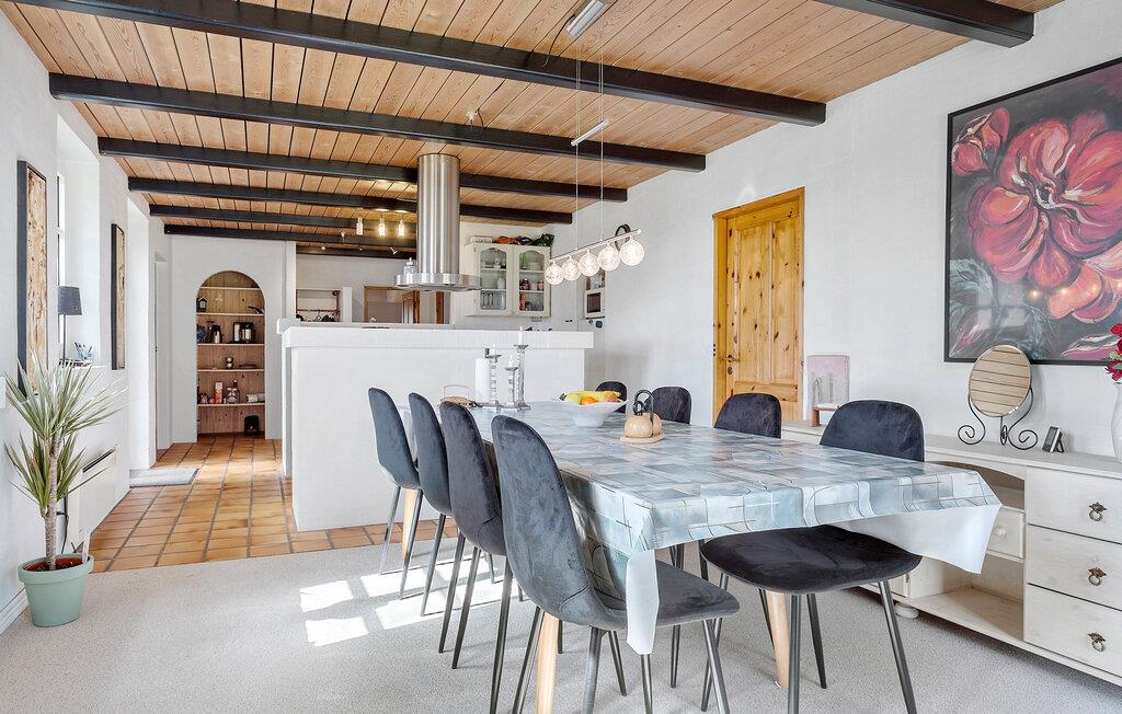 Verbringen Sie mit Ihrer Großfamilie einen ruhigen und erholsamen Urlaub in diesem geräumigen Ferienhaus. Die Einrichtung und Ausstattung ist familiär und lässt Sie nichts vermissen. Fühlen Sie sich in dem ebenerdigen Haus wie zuhause und erleben einen unbeschwerten Ferienalltag. Spielen Sie Spiele am Esstisch der lesen die Zeitung im Tageslicht, neben dem Holzofen.