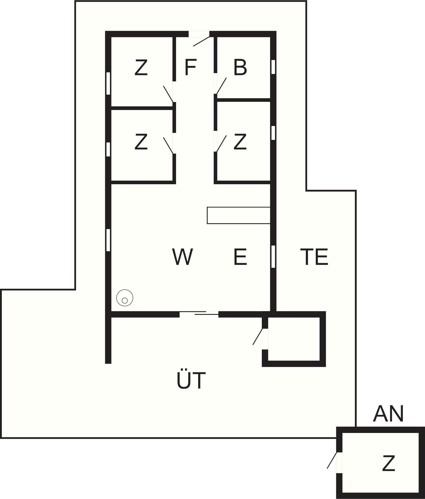 Bad: WC, Waschb., Dusche, Fußbodenheiz.
