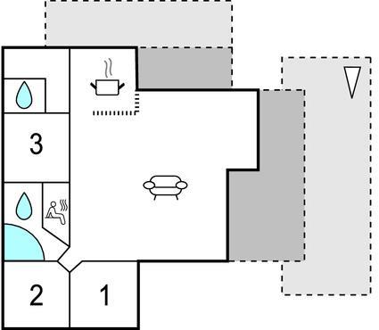 Badezimmer (nr. 1) - WC. Warmes und kaltes Wasser. Dusche