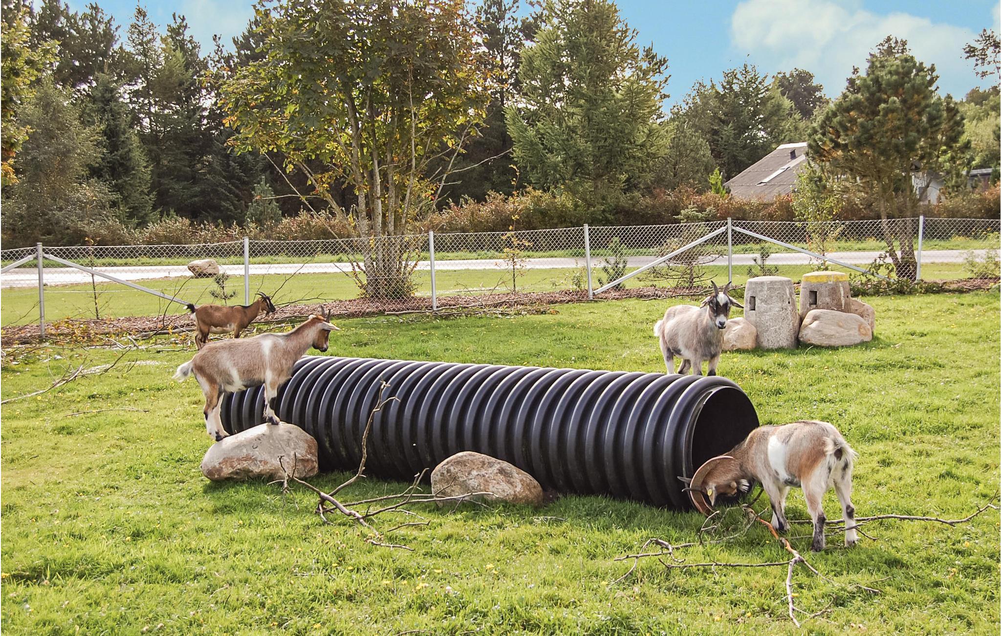 Das gemütlich eingerichtete Ferienhaus liegt fünf Minuten zu Fuß vom Aktivitätscenter der Anlage. Im Center sind Hüpfburg, Rutschen, Lebensmittelgeschäft, Restaurant und ein Minizoo zu finden. Das Haus ist gemütlich und gut eingerichtet und besitzt eine schöne Küche. Sie ist offen zum Wohnzimmer mit Kaminofen. Draußen gibt es mehrere Holzterrassen. In der Umgebung können Sie sich gut zu Fuß und auf Radwegen fortbewegen. Es gibt auch Golplfätze und Angelseen sowie einen Naturpfad von ca. 11 km Länge mit Bänken, auf denen Sie sich niederlassen und die schöne Umgebung genießen können.