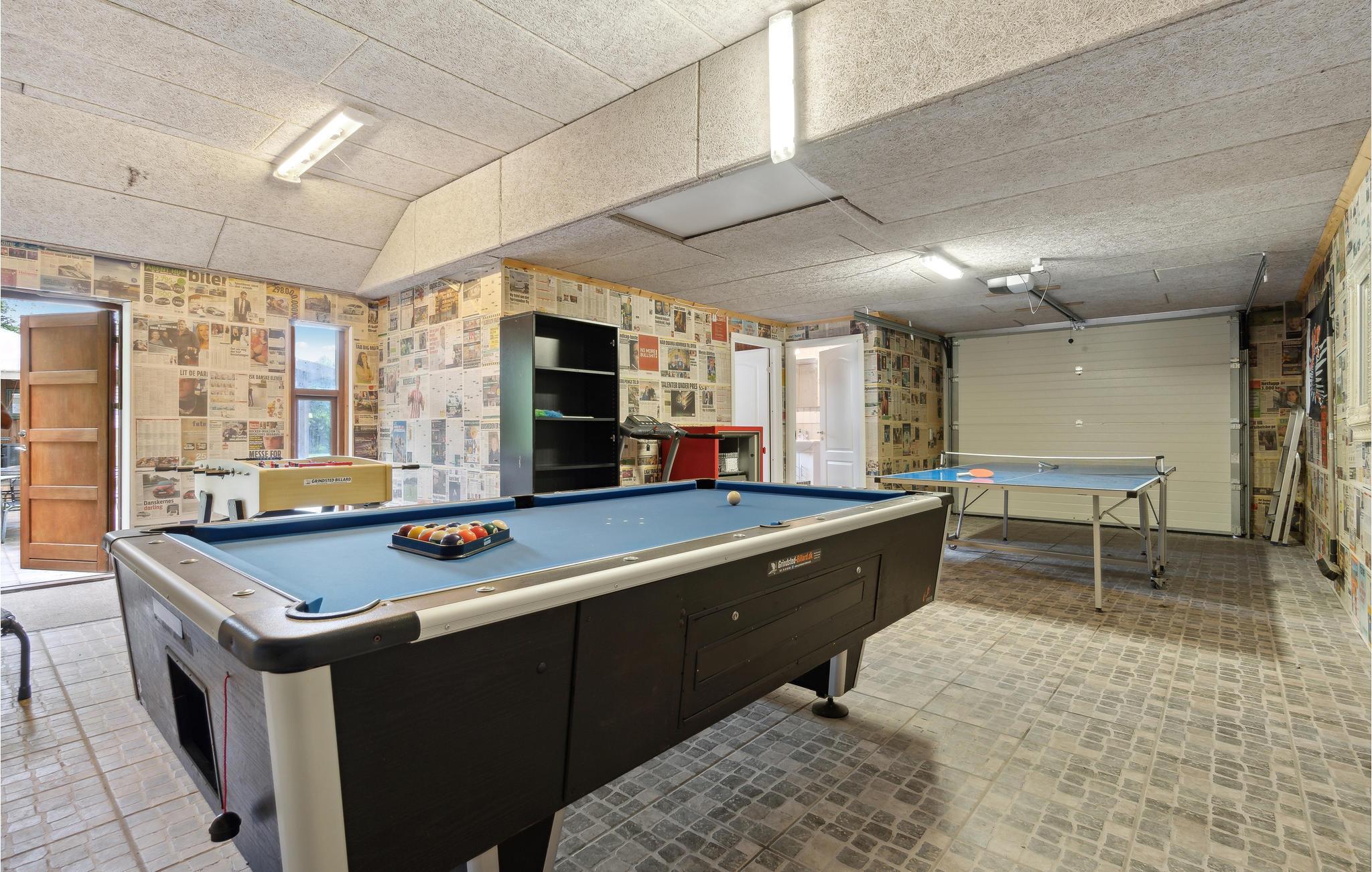 Bestehend auf mehreren Gebäuden können Sie mit Ihrer Großfamilie oder befreundeten Familien in dieser energiefreundlichen Unterkunft einen entspannten Urlaub genießen. Entdecken Sie das Haus mit unterschiedlicher Dekoration und Einrichtungsstilen, in denen Sie sich wohlfühlen können. Egal ob Sie zusammen kochen, im hellen Wohnraum TV schauen oder am Esstisch im Wintergarten spielen, Sie finden immer etwas zu tun. Ein Aktivitätsraum bietet Ihnen zusätzlich viel Unterhaltung. Fordern Sie sich zum Tischtennis, Billard oder Tischfußball heraus und freuen sich auf viele gesellige Stunden.