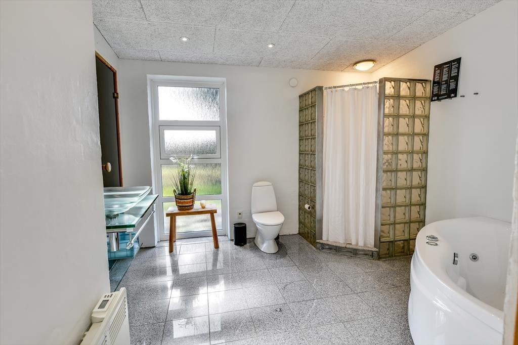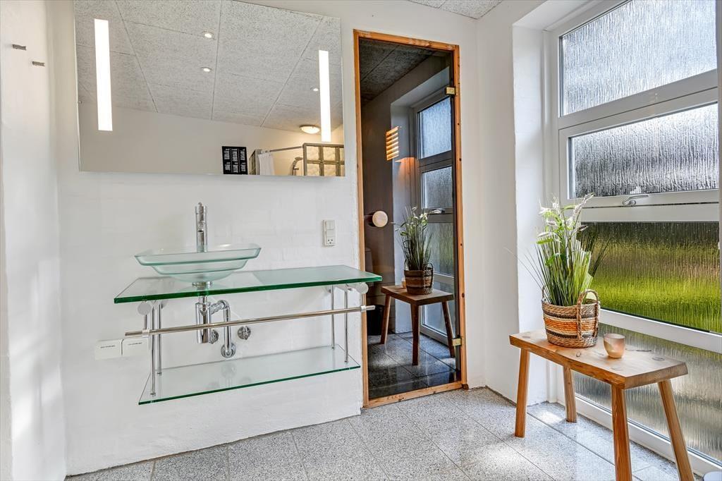 Das Ferienhaus verfügt über zwei Badezimmer, von denen eines etwas ganz Besonderes ist. Eine zweistufige Treppe führt euch in ein großes Badezimmer, wo ihr entspannte Momente im einladenden Whirlpool oder in der warmen Sauna genießen könnt. Hier könnt ihr den Alltagsstress hinter euch lassen und euch rundum wohlfühlen. Eine weitere zweistufige Treppe führt in eines der Schlafzimmer des Hauses, das etwas abgeschieden liegt und eine besonders gemütliche Atmosphäre schafft.
