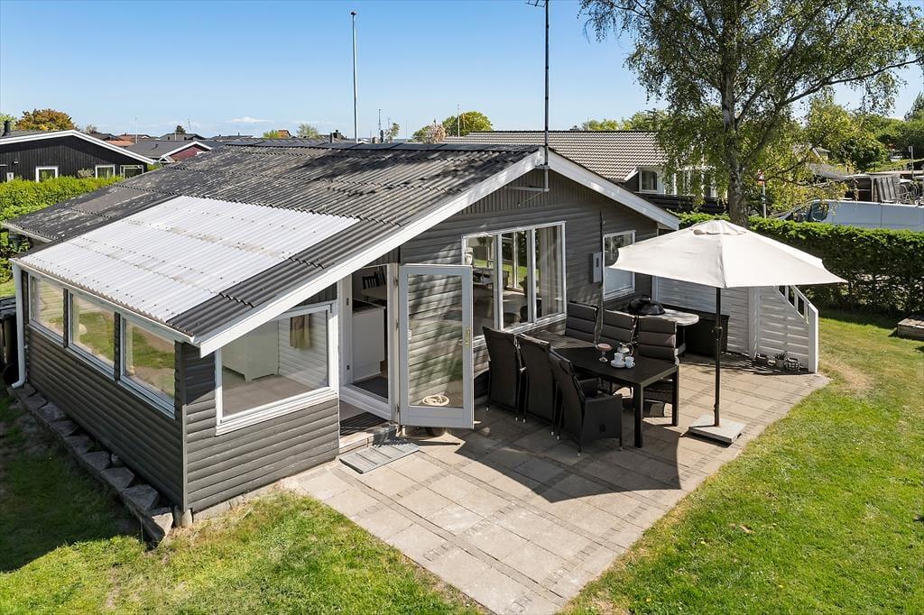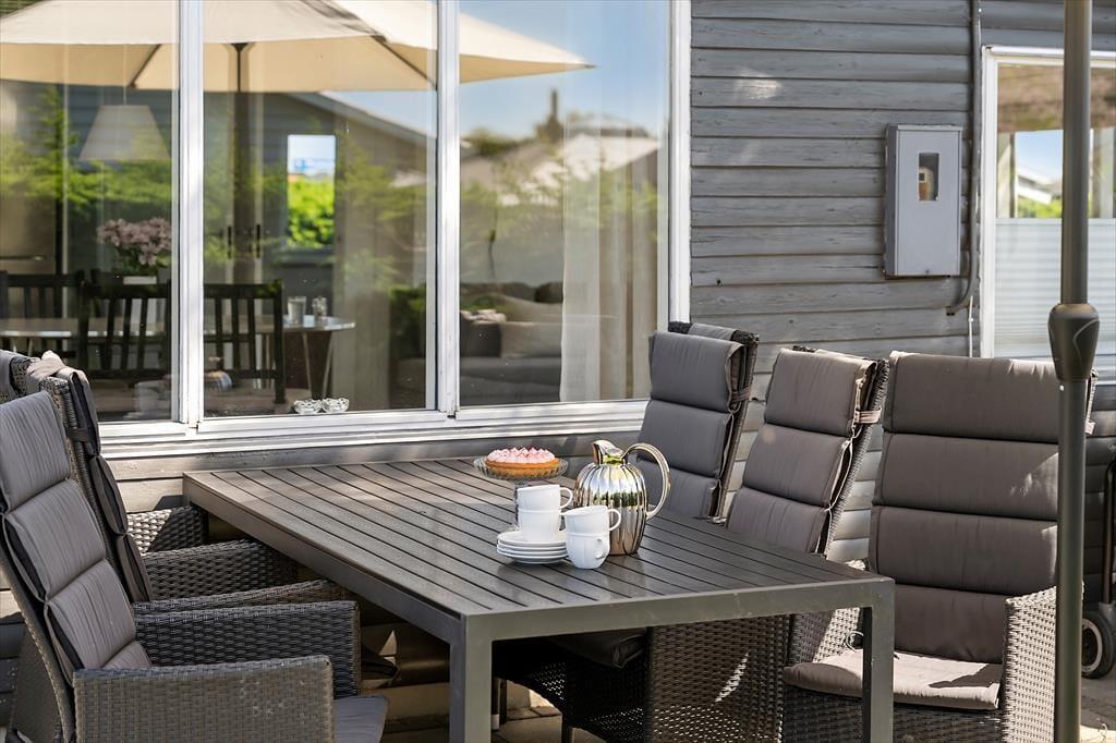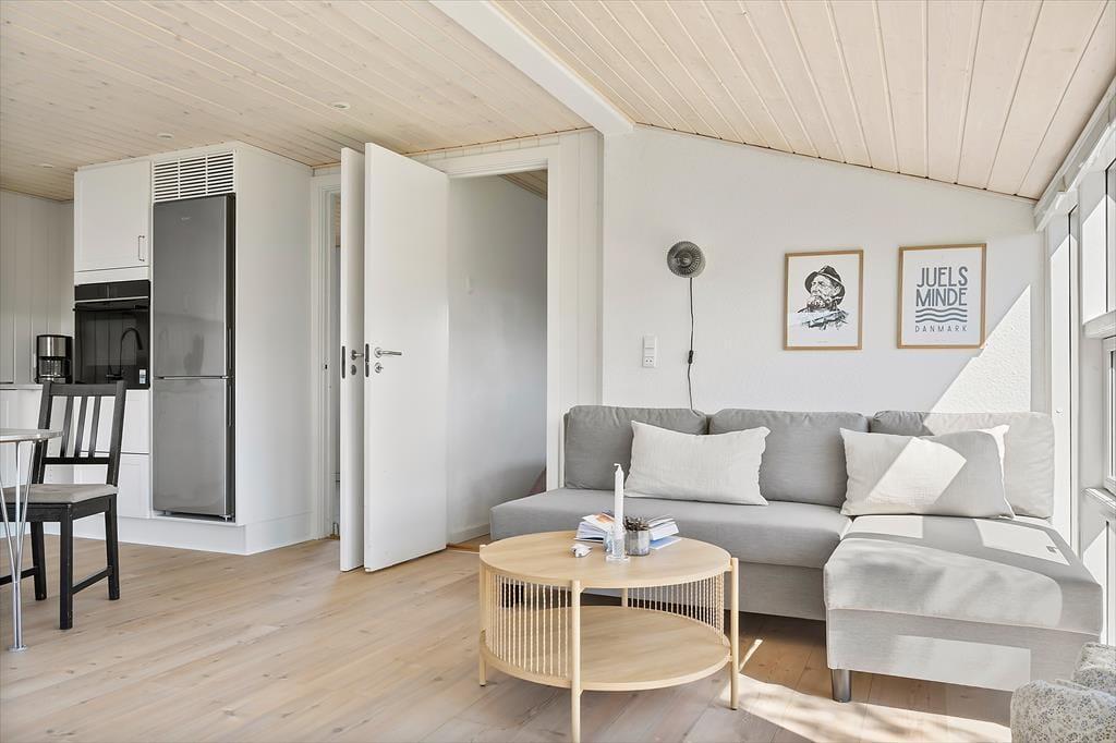 Draußen erwartet Sie eine herrliche Terrasse, auf der Sie die warmen Sonnenstrahlen und die ruhige Atmosphäre mit Vogelgezwitscher im Hintergrund genießen können. Das Ferienhaus liegt in einer schönen Gegend bei Juelsminde – nur 200 Meter Fußweg trennen Sie vom herrlichen Sandstrand. Ein guter Spielplatz in der Nähe sorgt für Spiel und Spaß bei Kindern und Junggebliebenen.